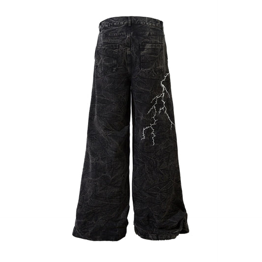 Washed Flare Lightning Embroidery Wide-Leg Denim Jeans WN12663