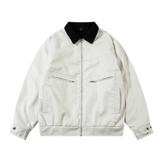 Fleece Lining PU Leather Zipper Jacket WN11495