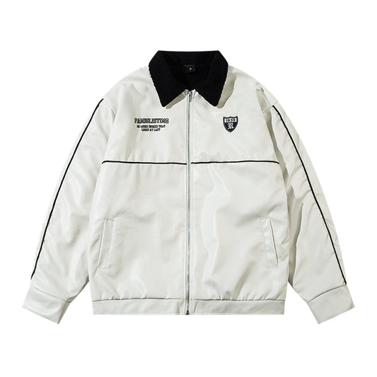 Letter Embroidery Fleece Lining PU Leather Jacket WN11496