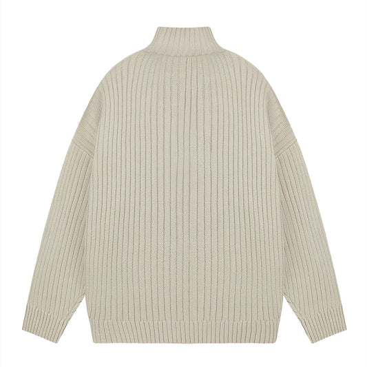 Letter Print Stand Neck Zipper Knit Cardigan WN11508