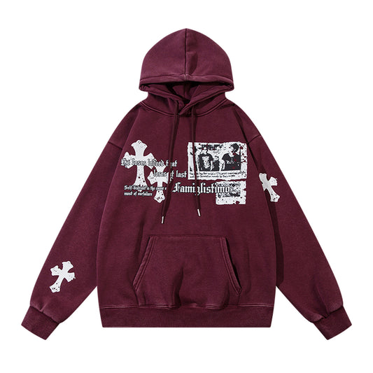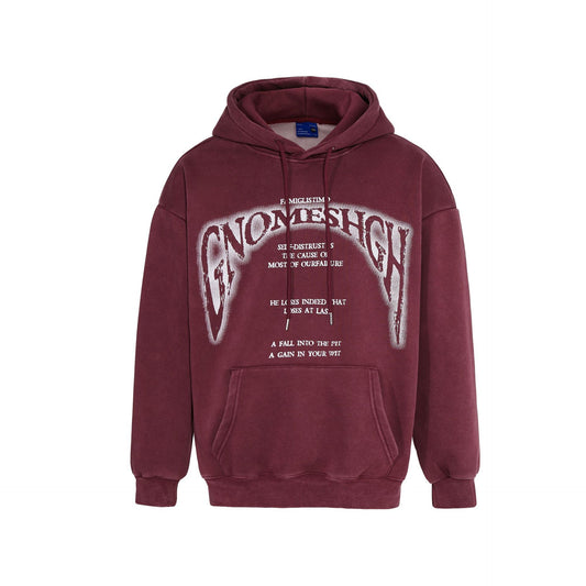 Washed Letter Print Fleece Lining Pullover Hoodie WN11498