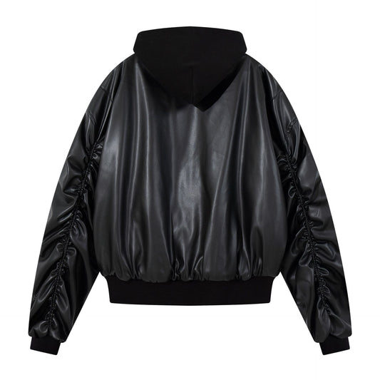 PU Leather Hooded Zipper Jacket WN11492