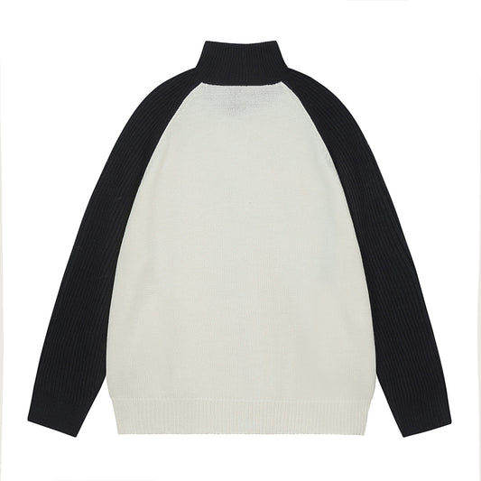 Letter Jacquard Colorblock Stand Neck Knit Cardigan WN11505