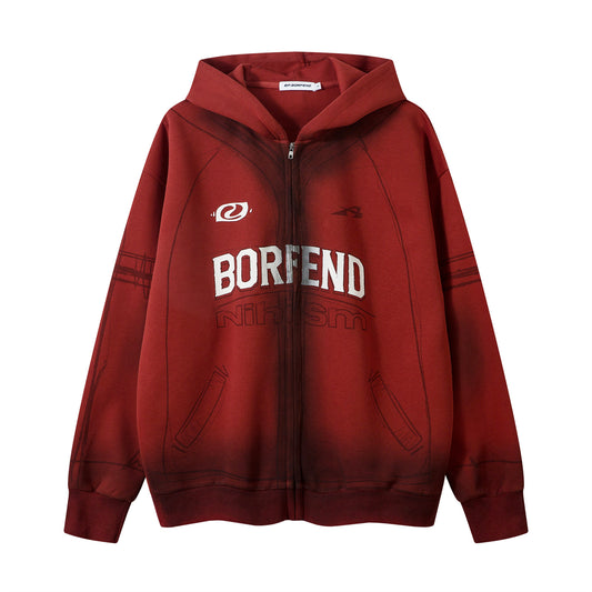 Cross Letter Print Double Zipper Stand Neck Knit Cardigan WN11504