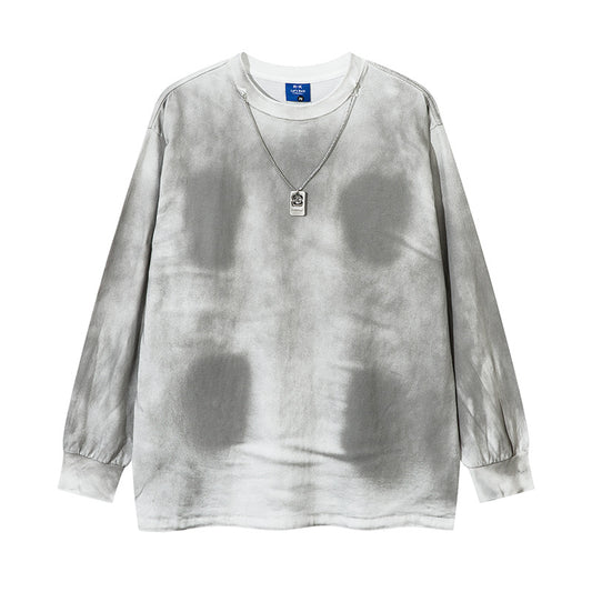 Tie-Dye Washed Necklace Detail Long Sleeve T-Shirt WN11514