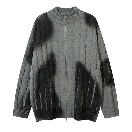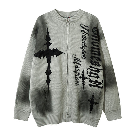 Graffiti Spray Paint Zipper Knit Cardigan WN11432