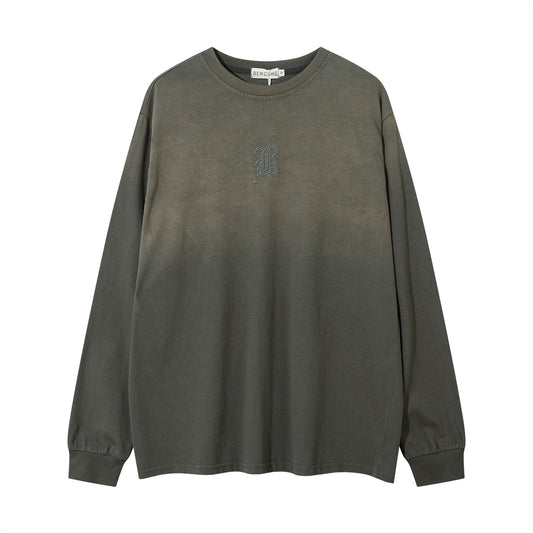 Washed Letter Embroidery Long Sleeve T-shirt WN11425