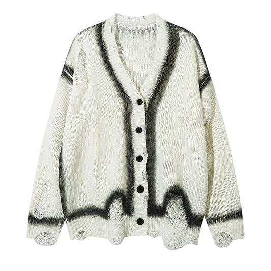 Colorblock Spray Paint Patchwork Oversize Knit Cardigan WN11442