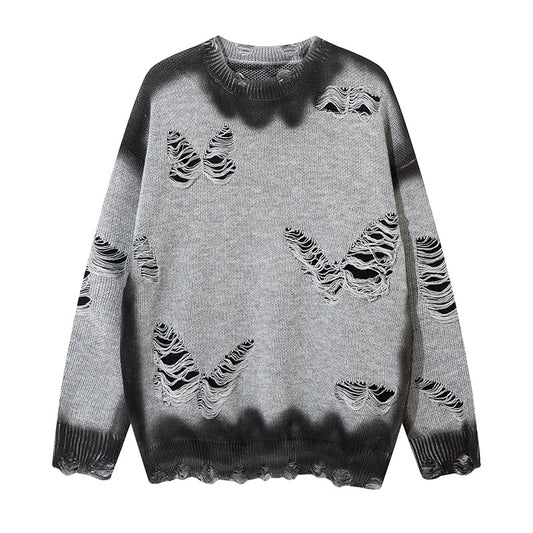Tie-Dye Graffiti Butterfly Cutout Knit Sweater WN11412