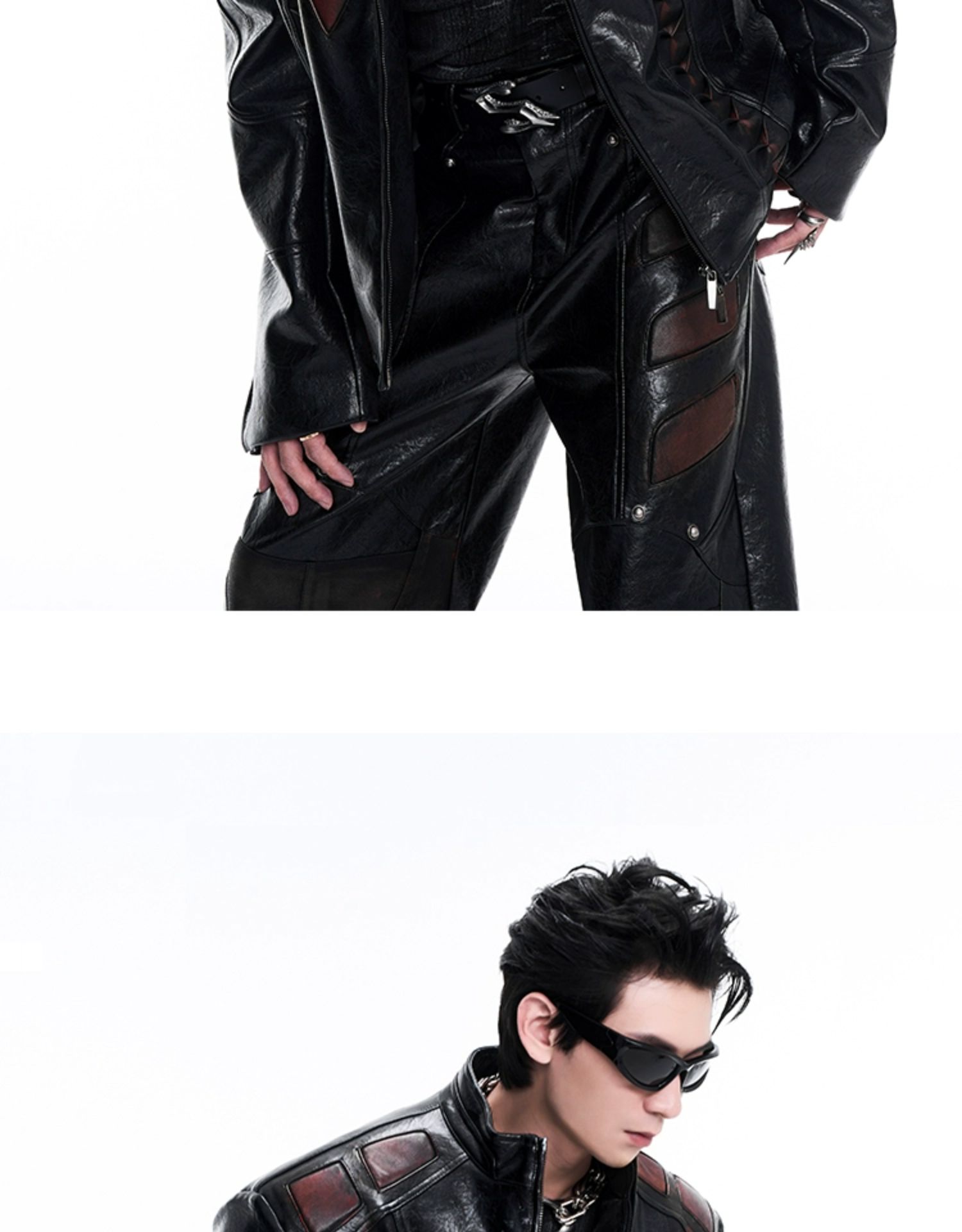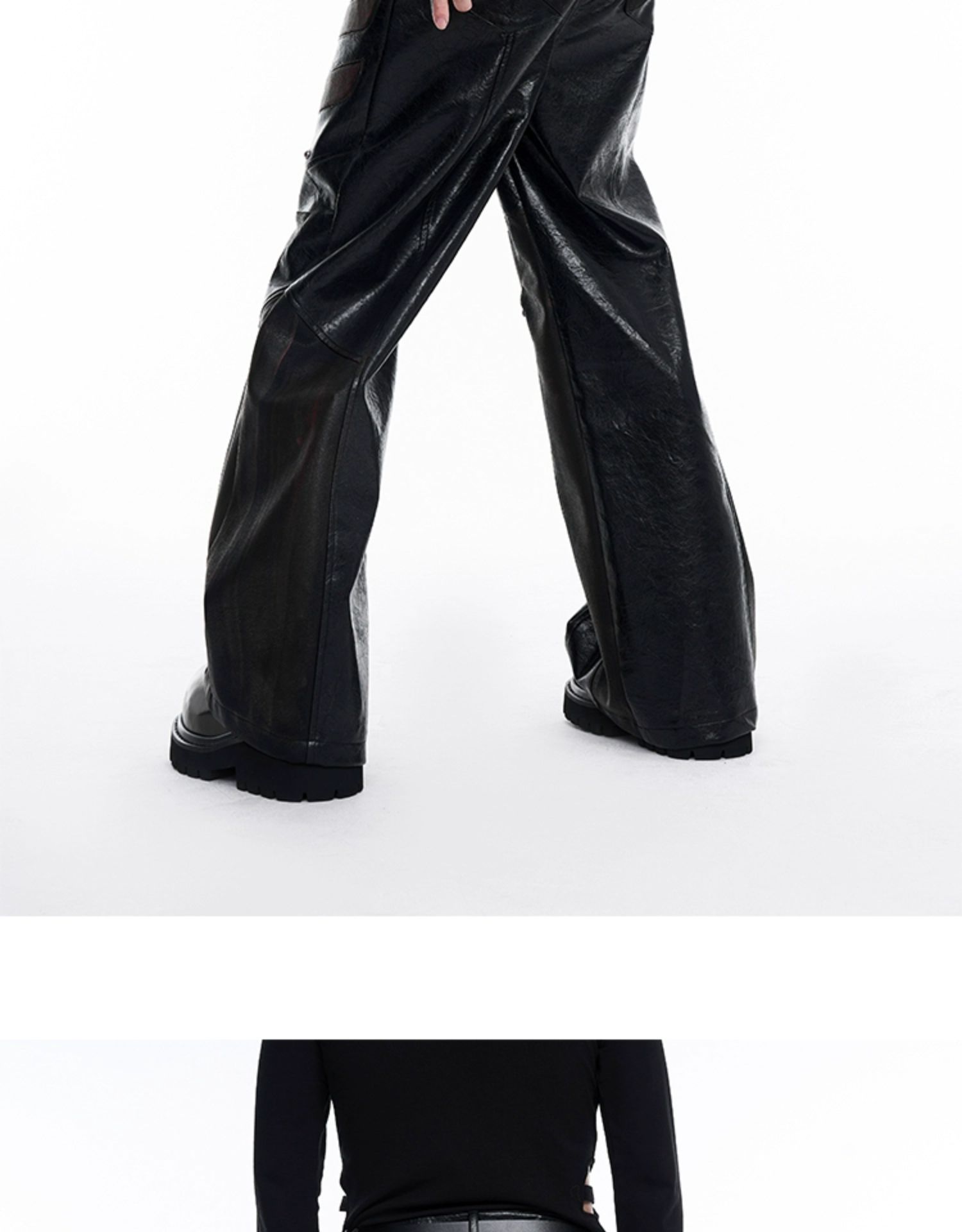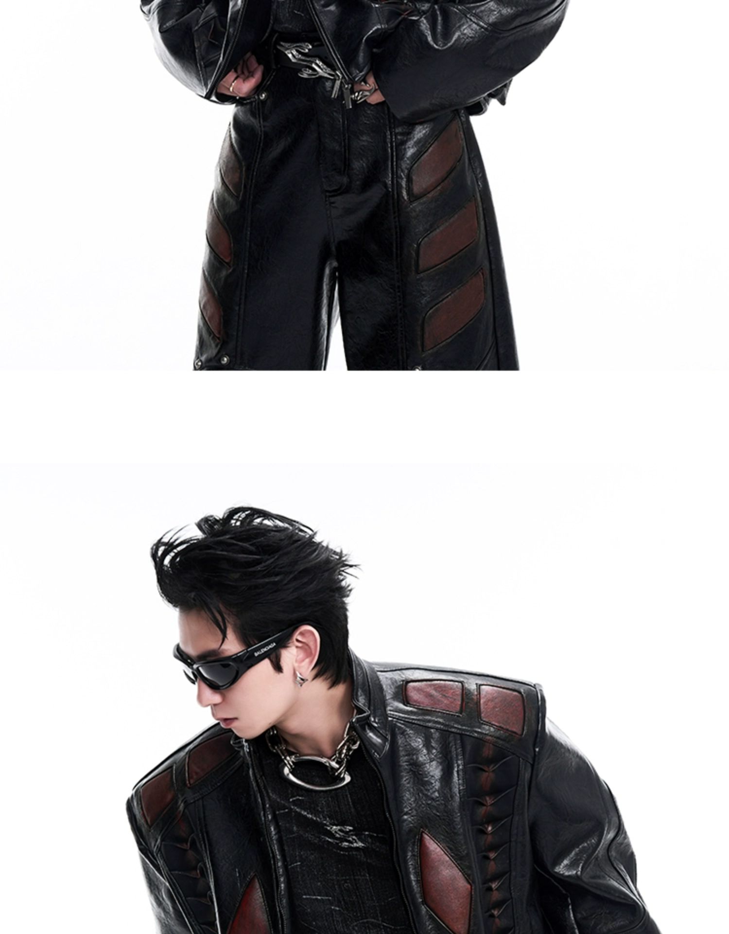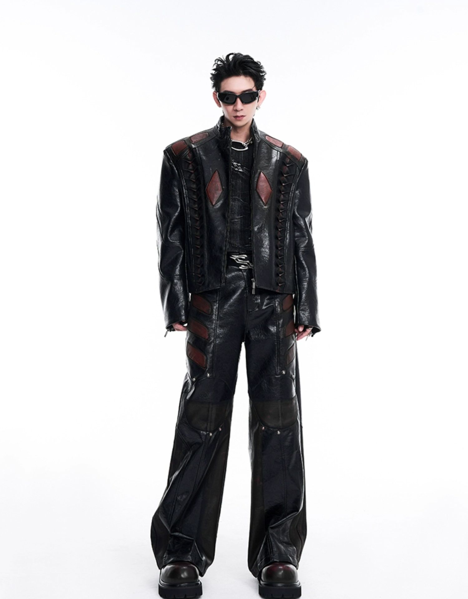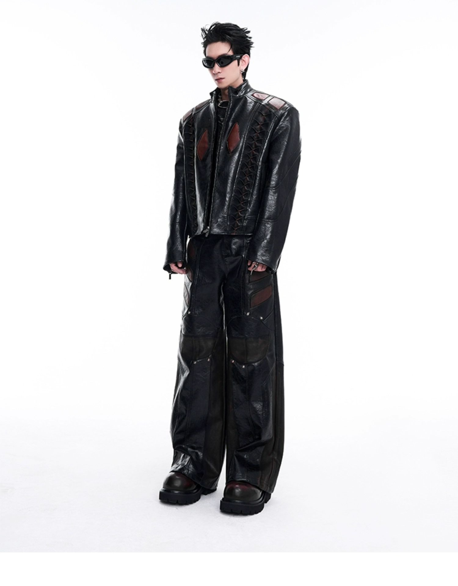 Quilted Thickened Splicing Leather Jacket & Wide-Leg PU Leather Pants Setup WN10229