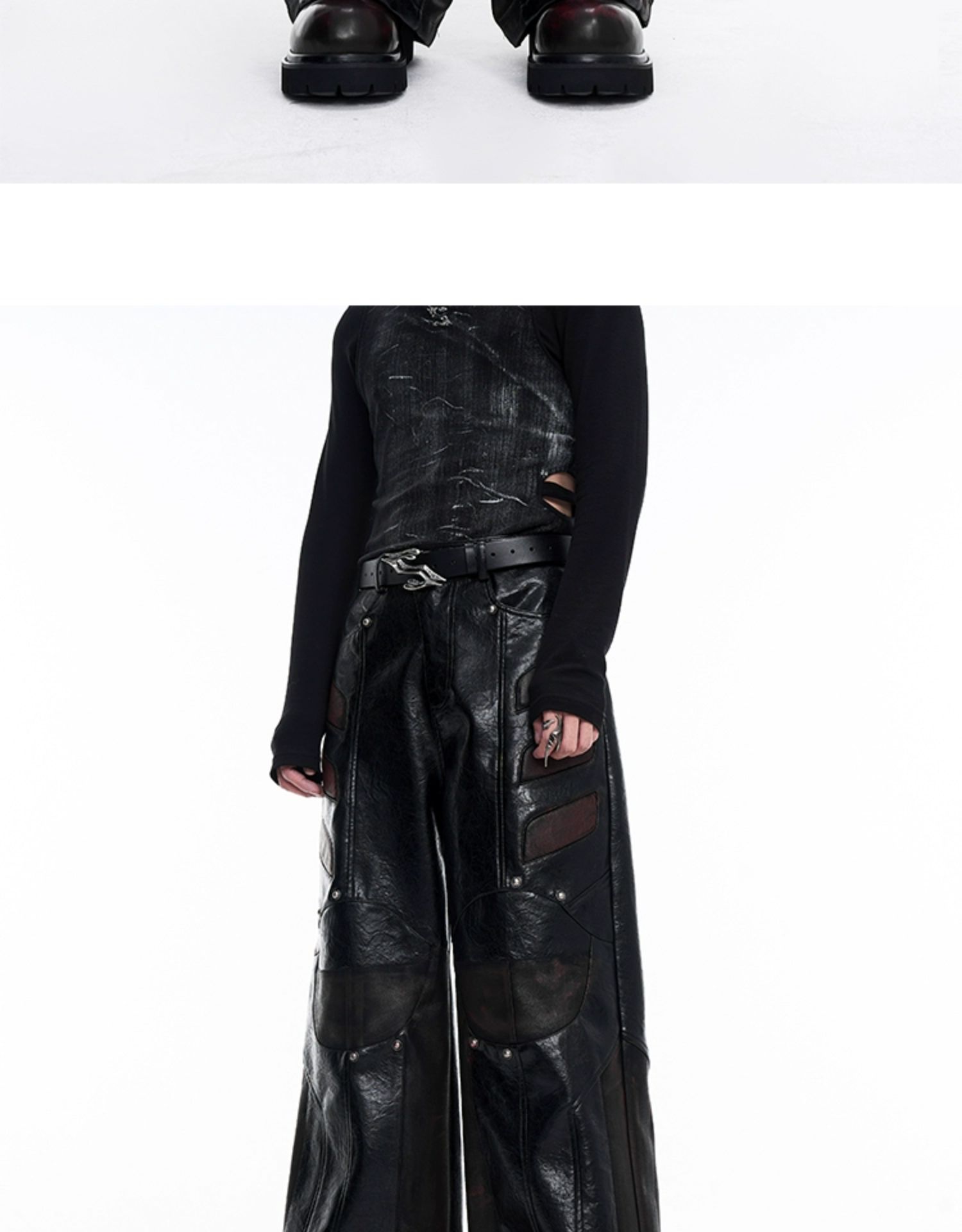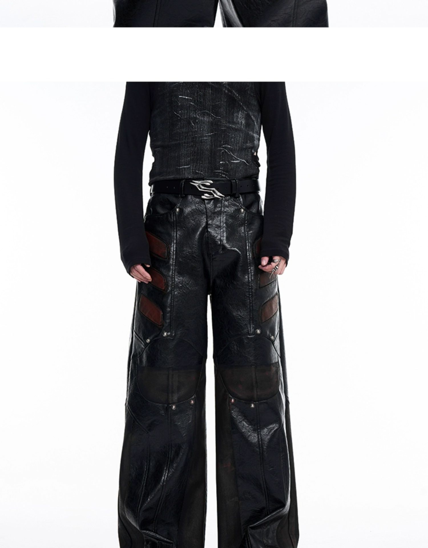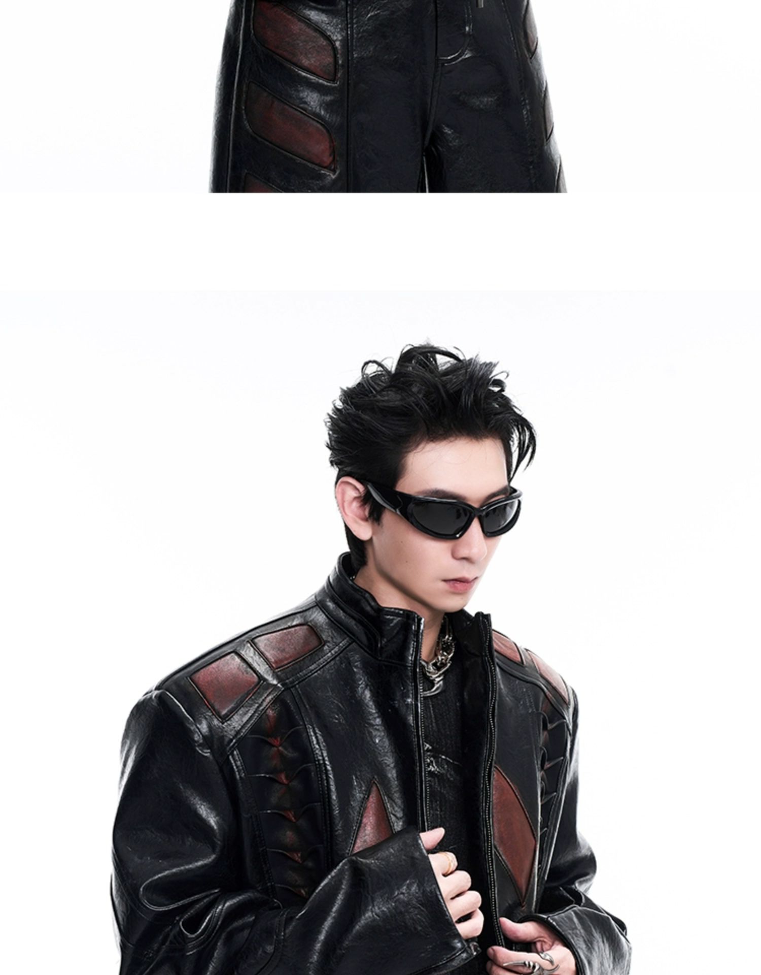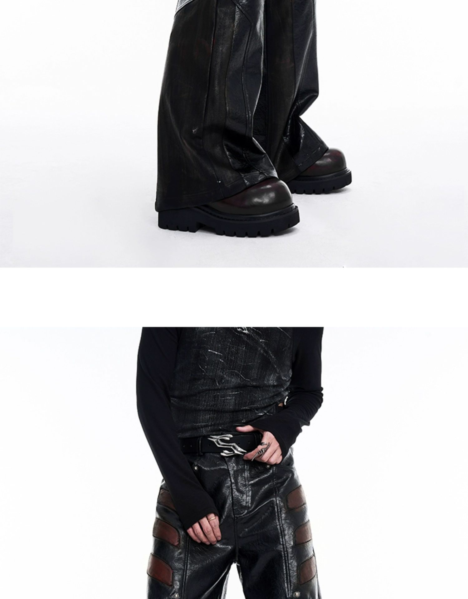 Quilted Thickened Splicing Leather Jacket & Wide-Leg PU Leather Pants Setup WN10229