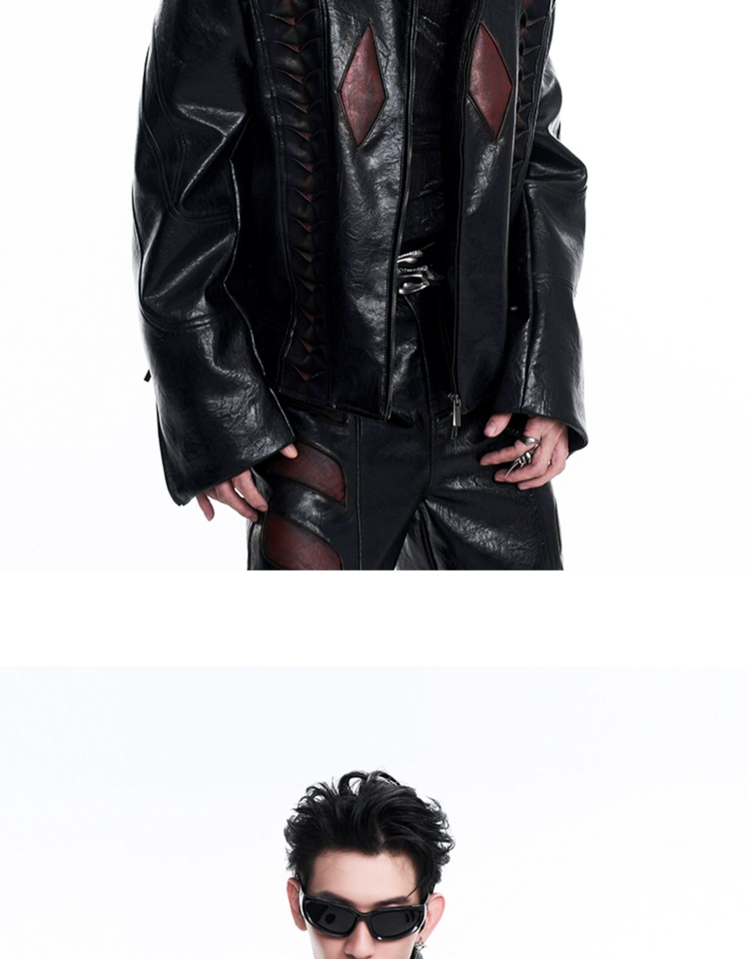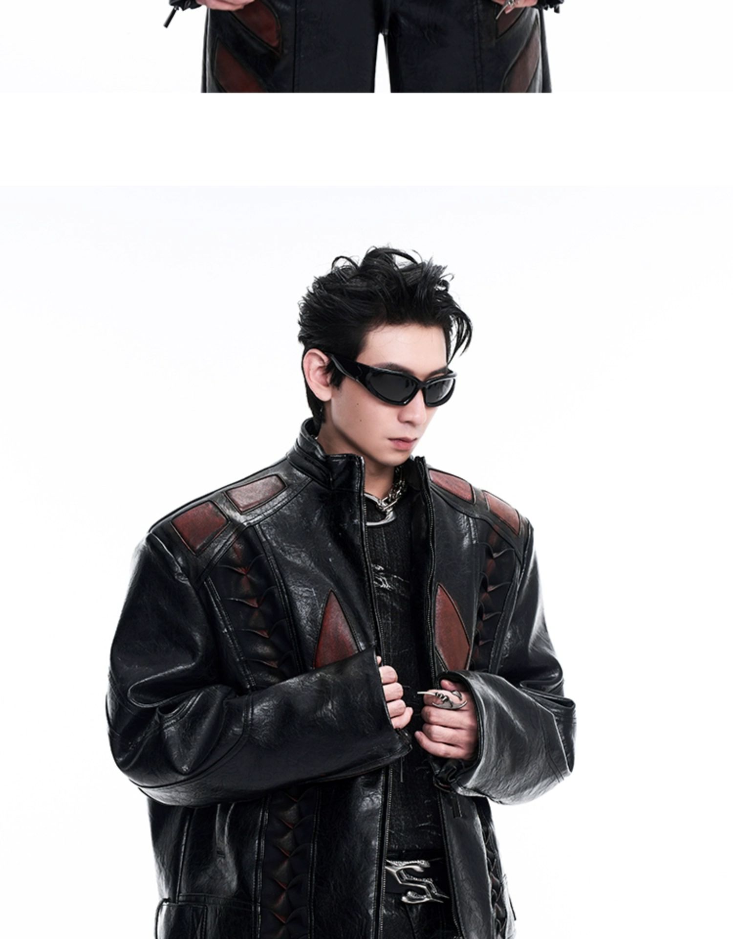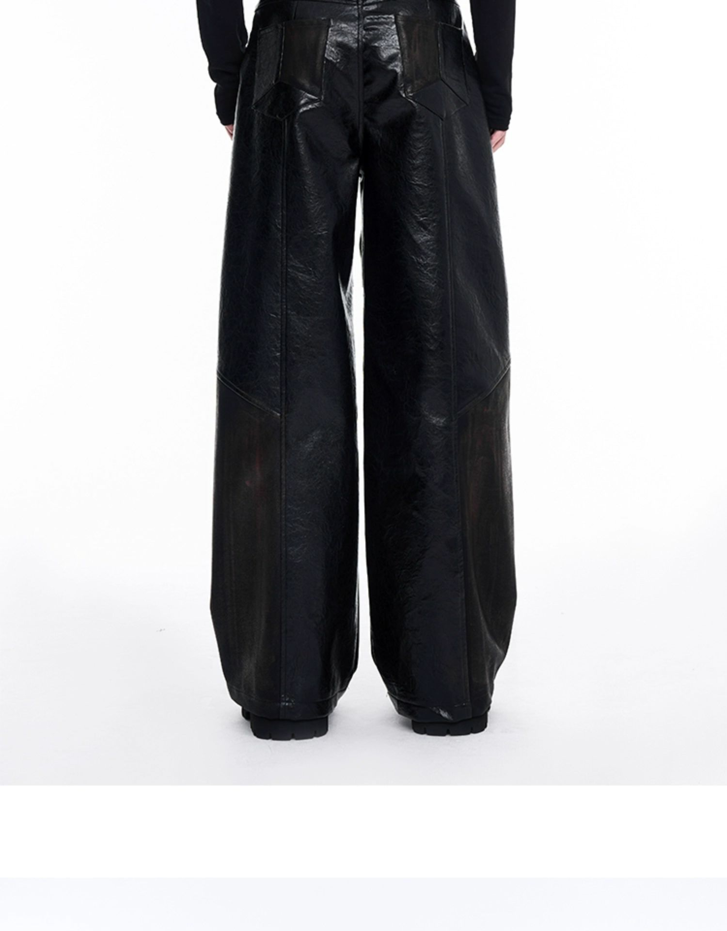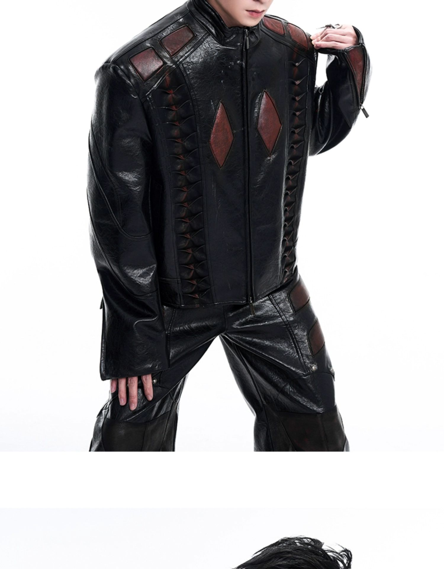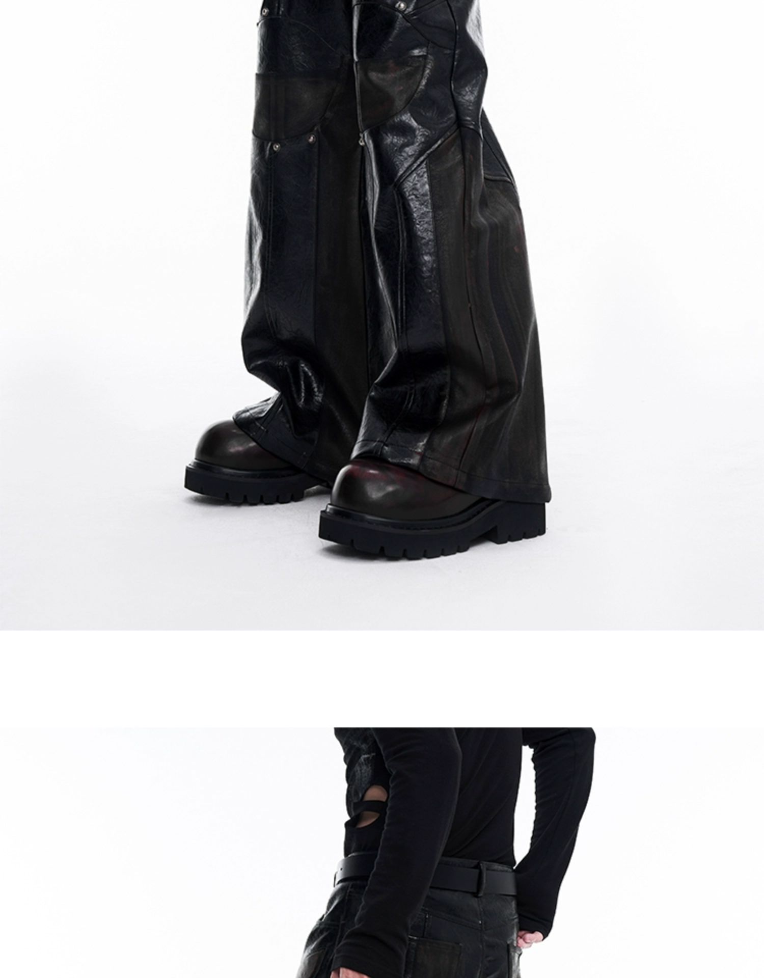 Quilted Thickened Splicing Leather Jacket & Wide-Leg PU Leather Pants Setup WN10229