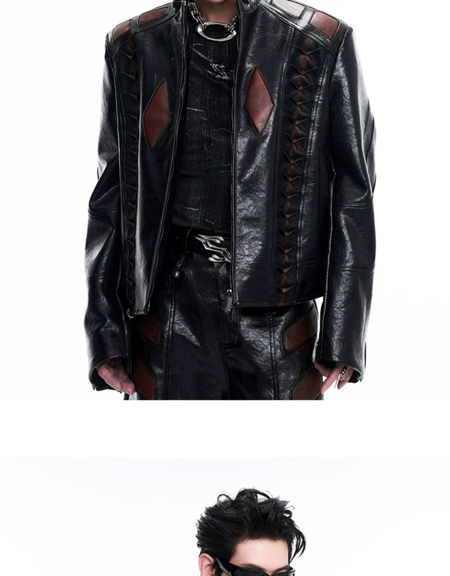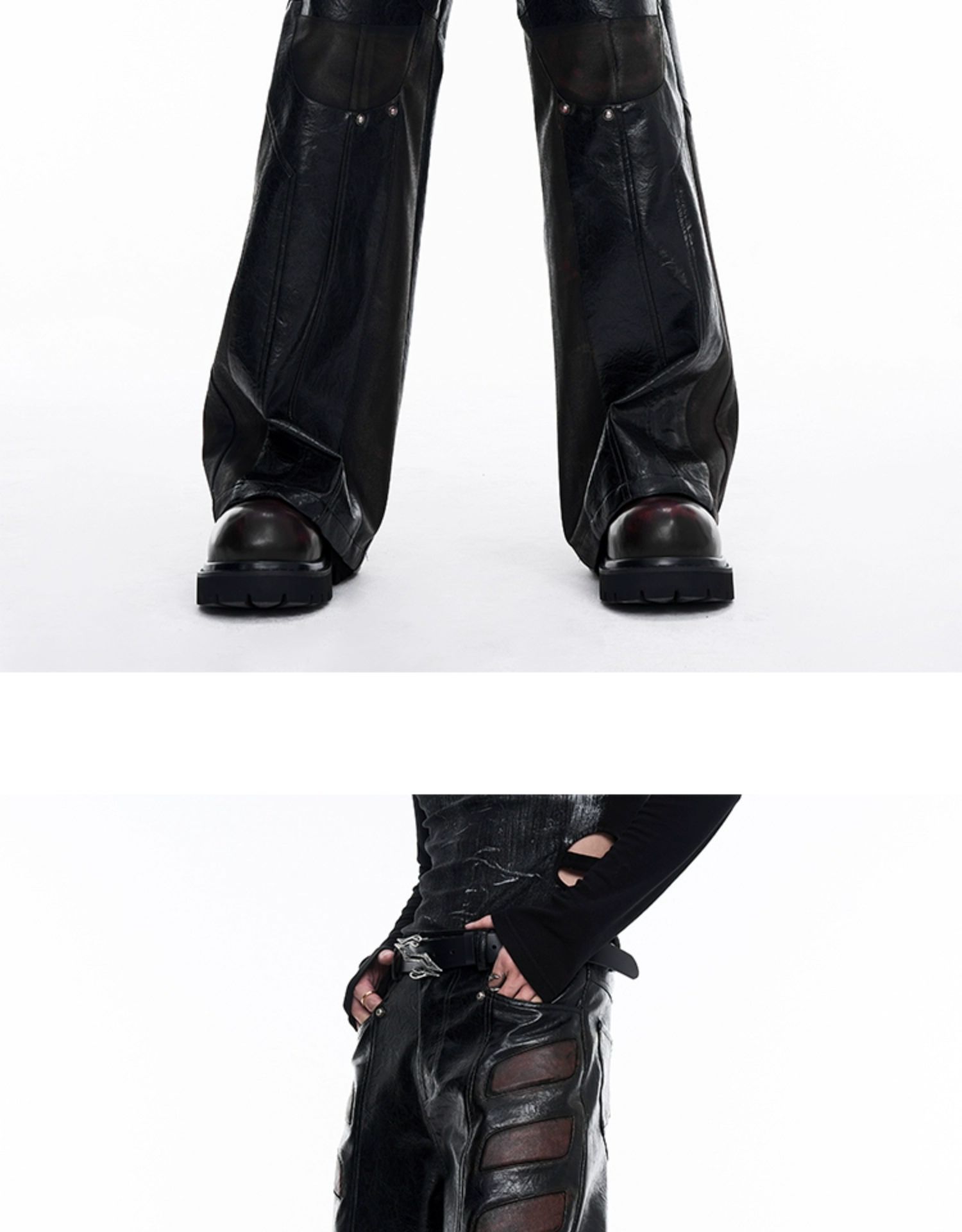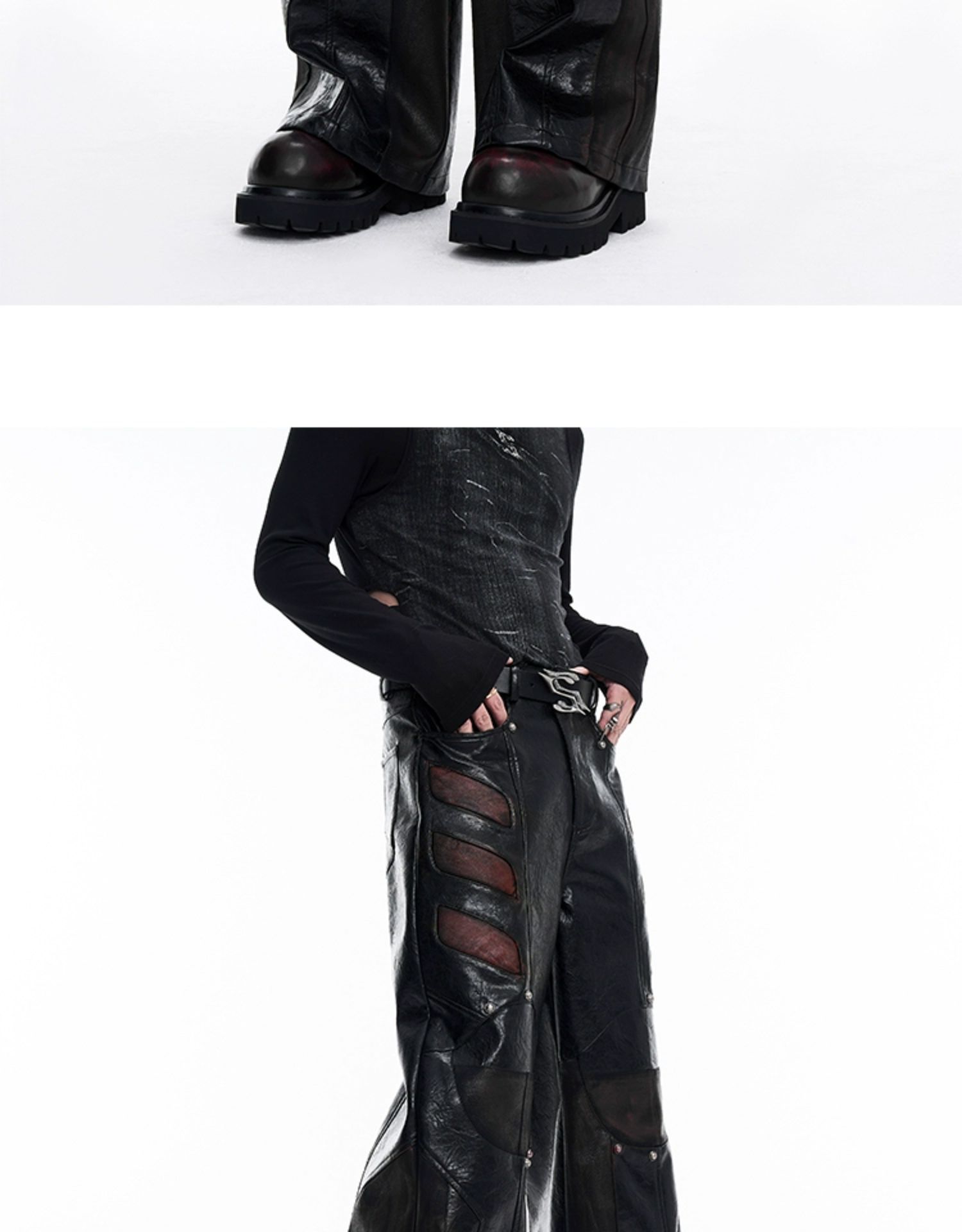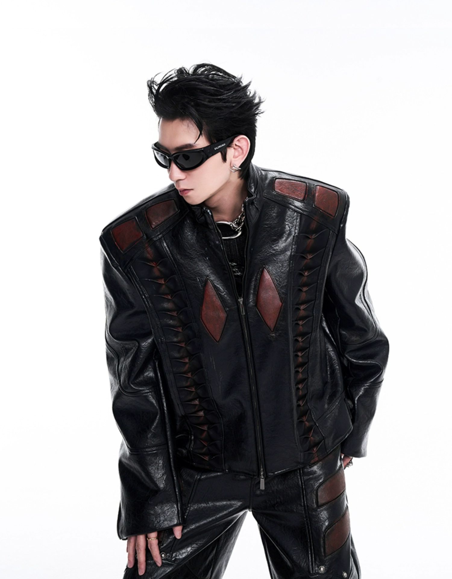 Quilted Thickened Splicing Leather Jacket & Wide-Leg PU Leather Pants Setup WN10229