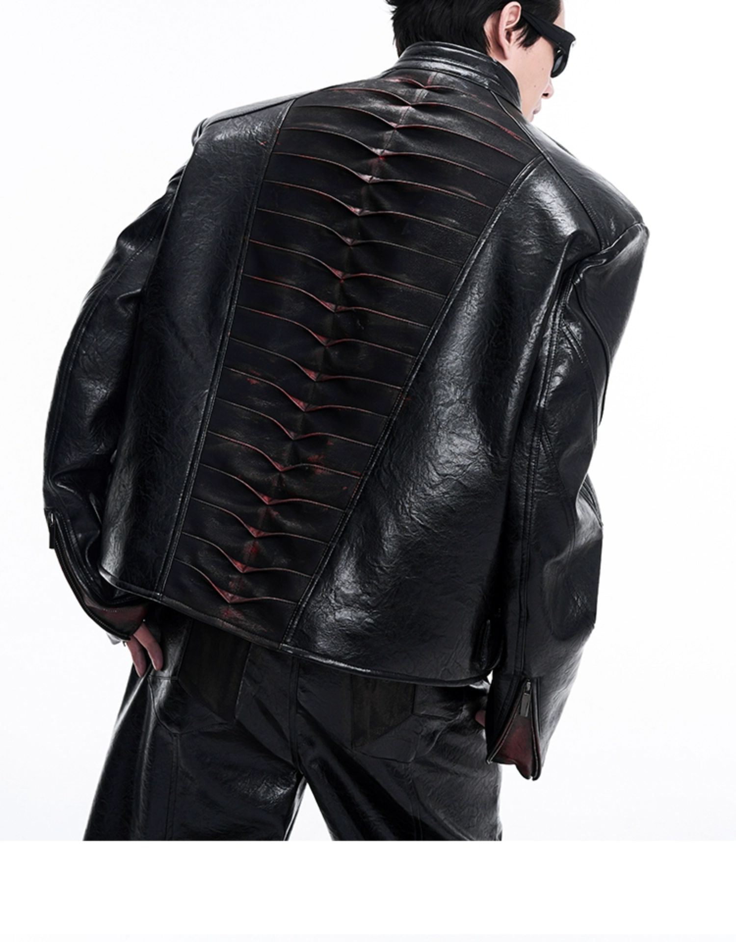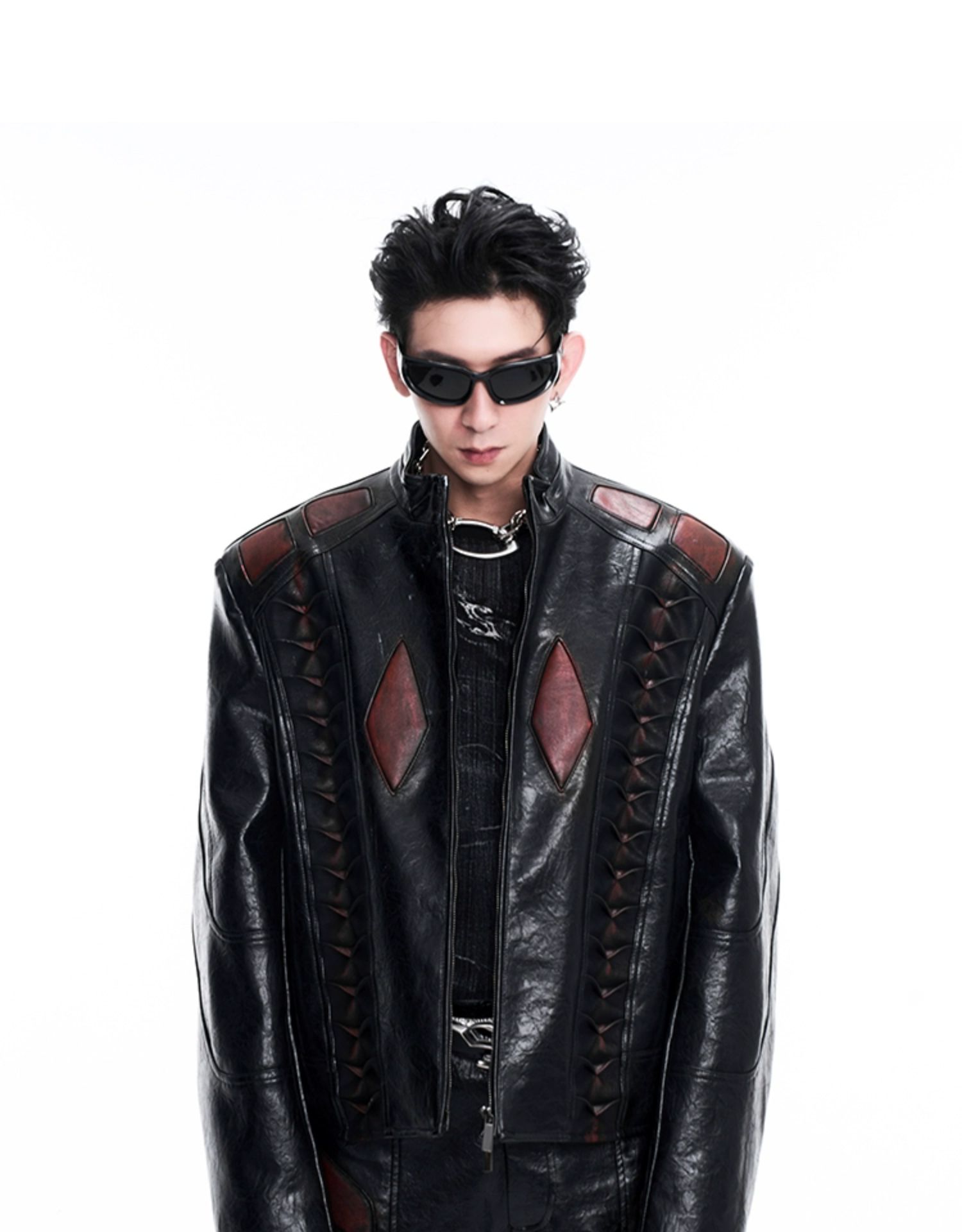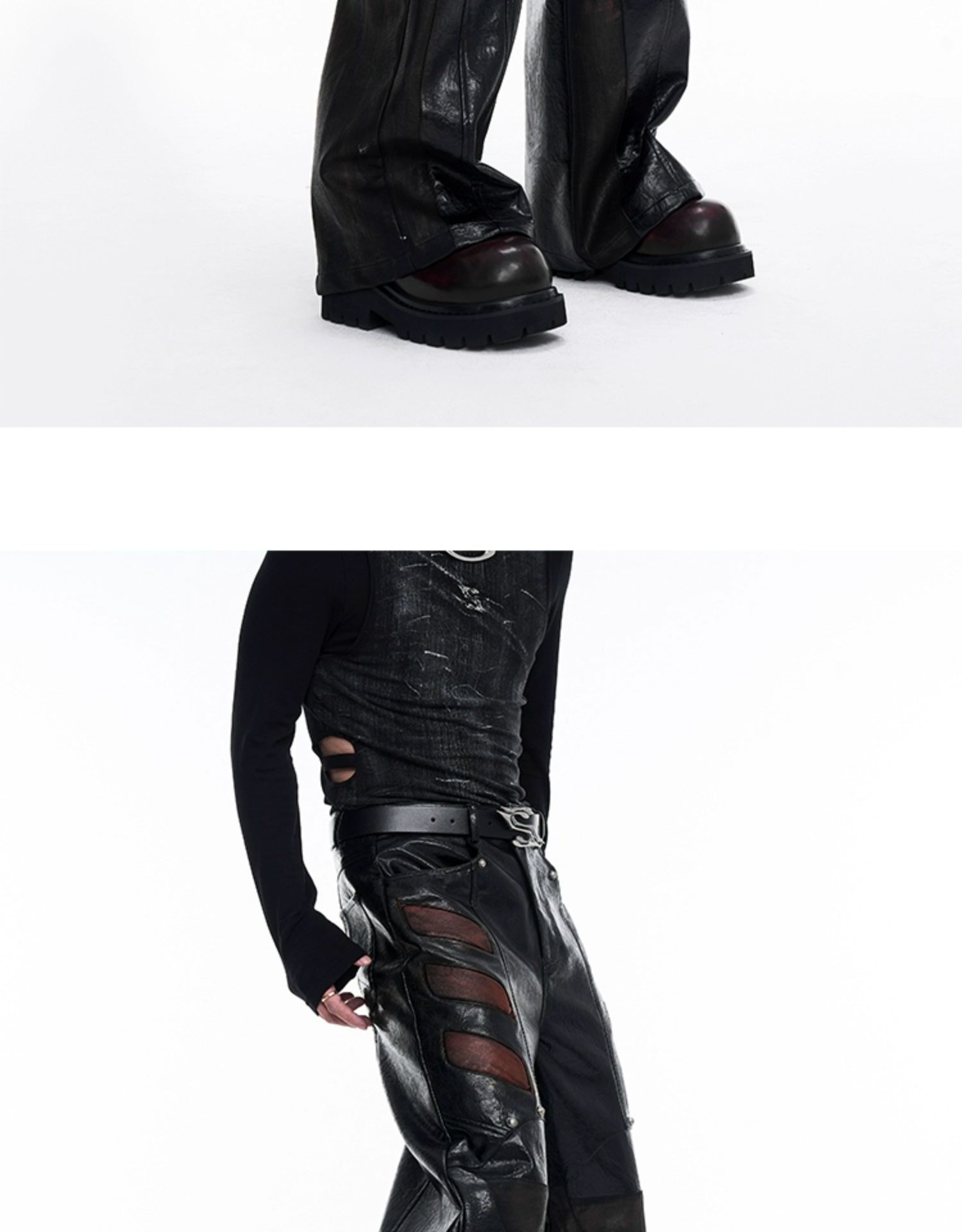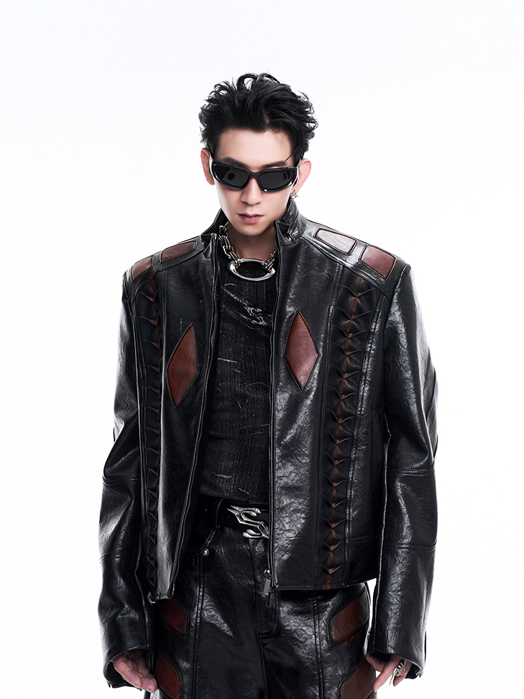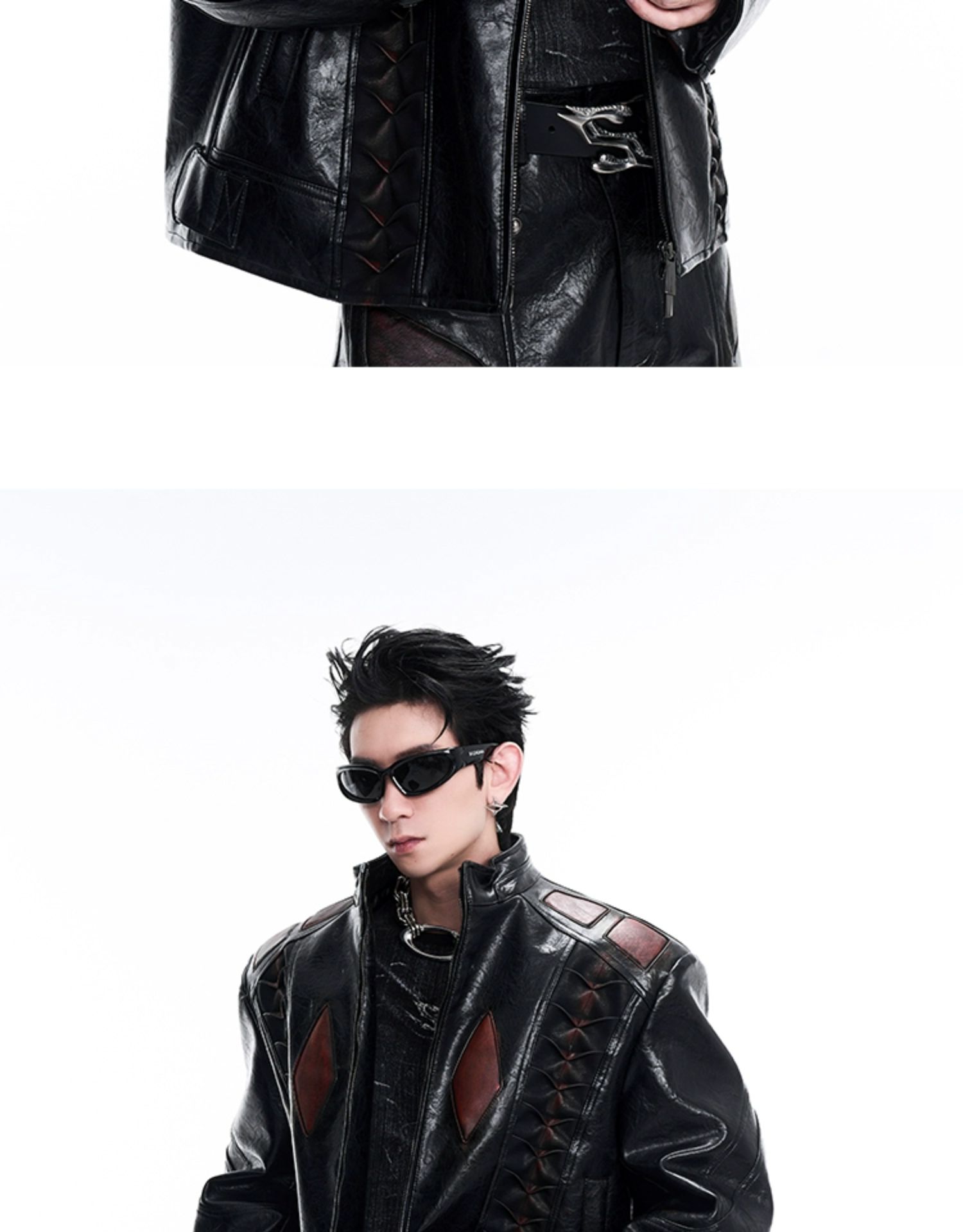 Quilted Thickened Splicing Leather Jacket & Wide-Leg PU Leather Pants Setup WN10229