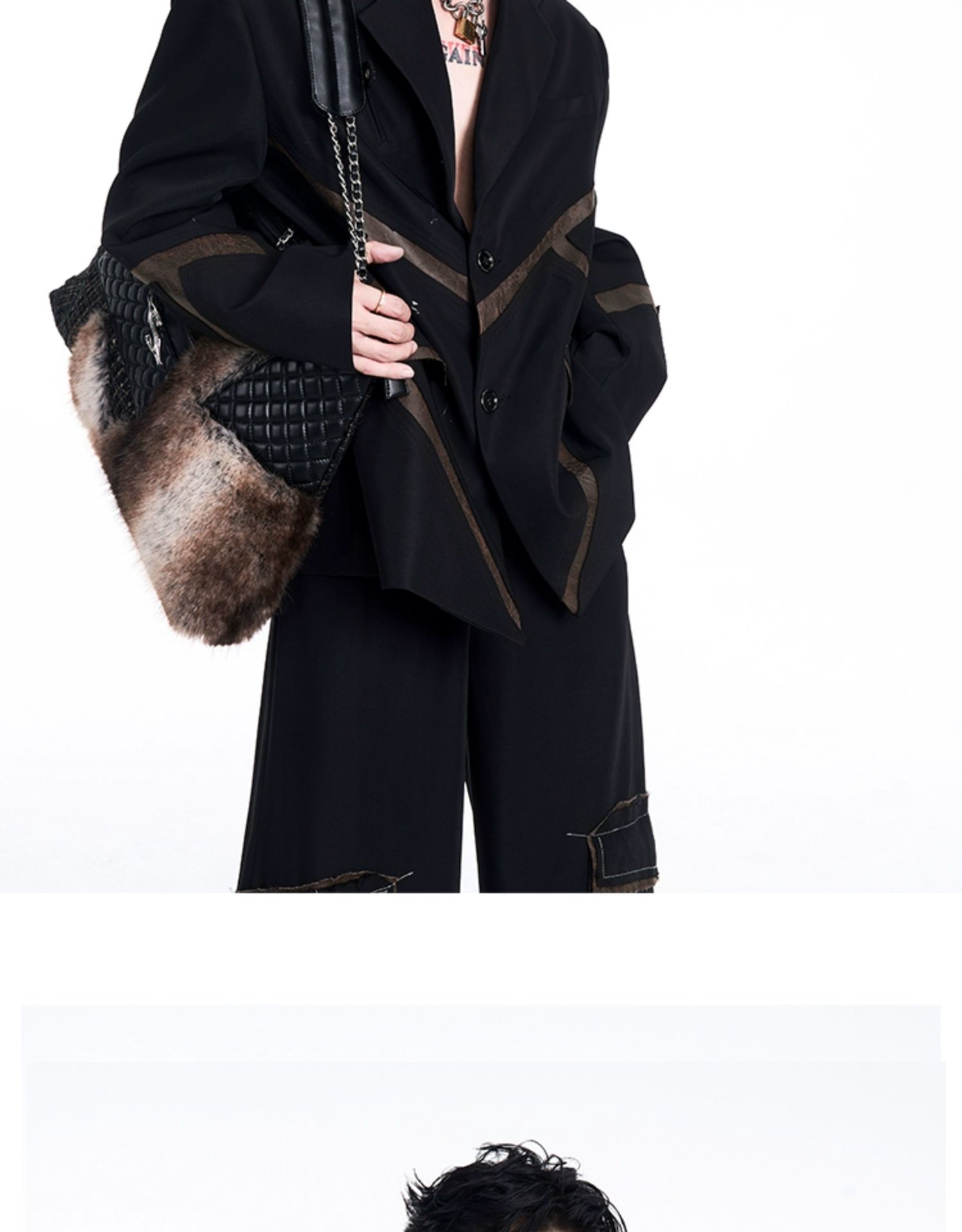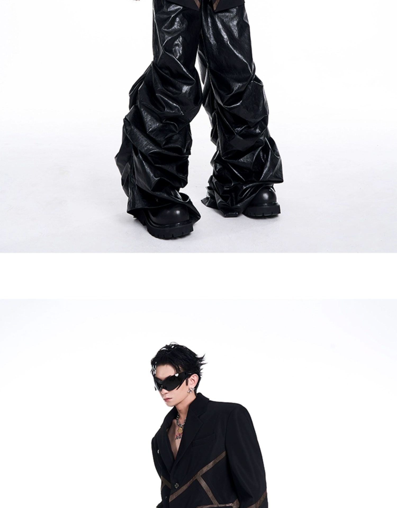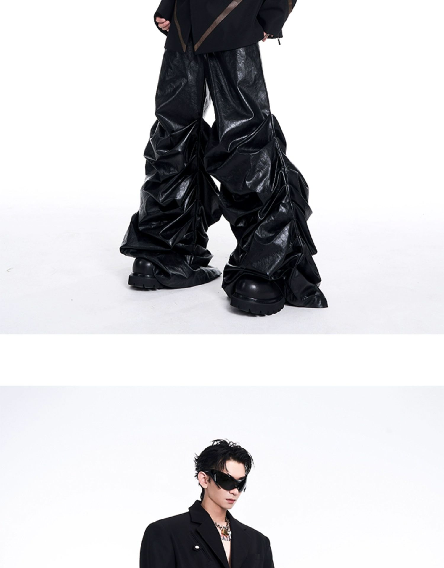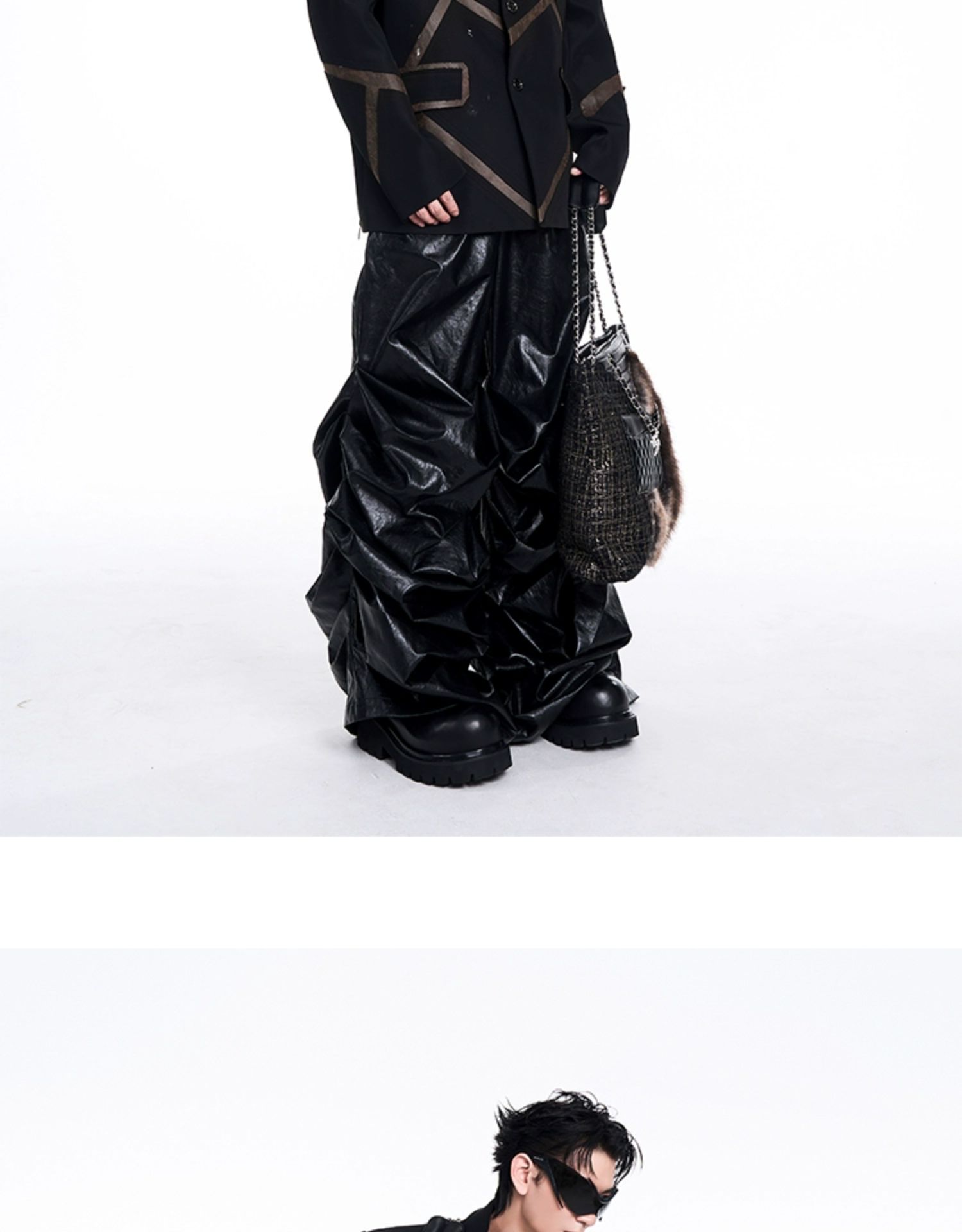 Leather Mix Oversize Double Jacket & Wide Leg Cargo Trousers Setup WN10230