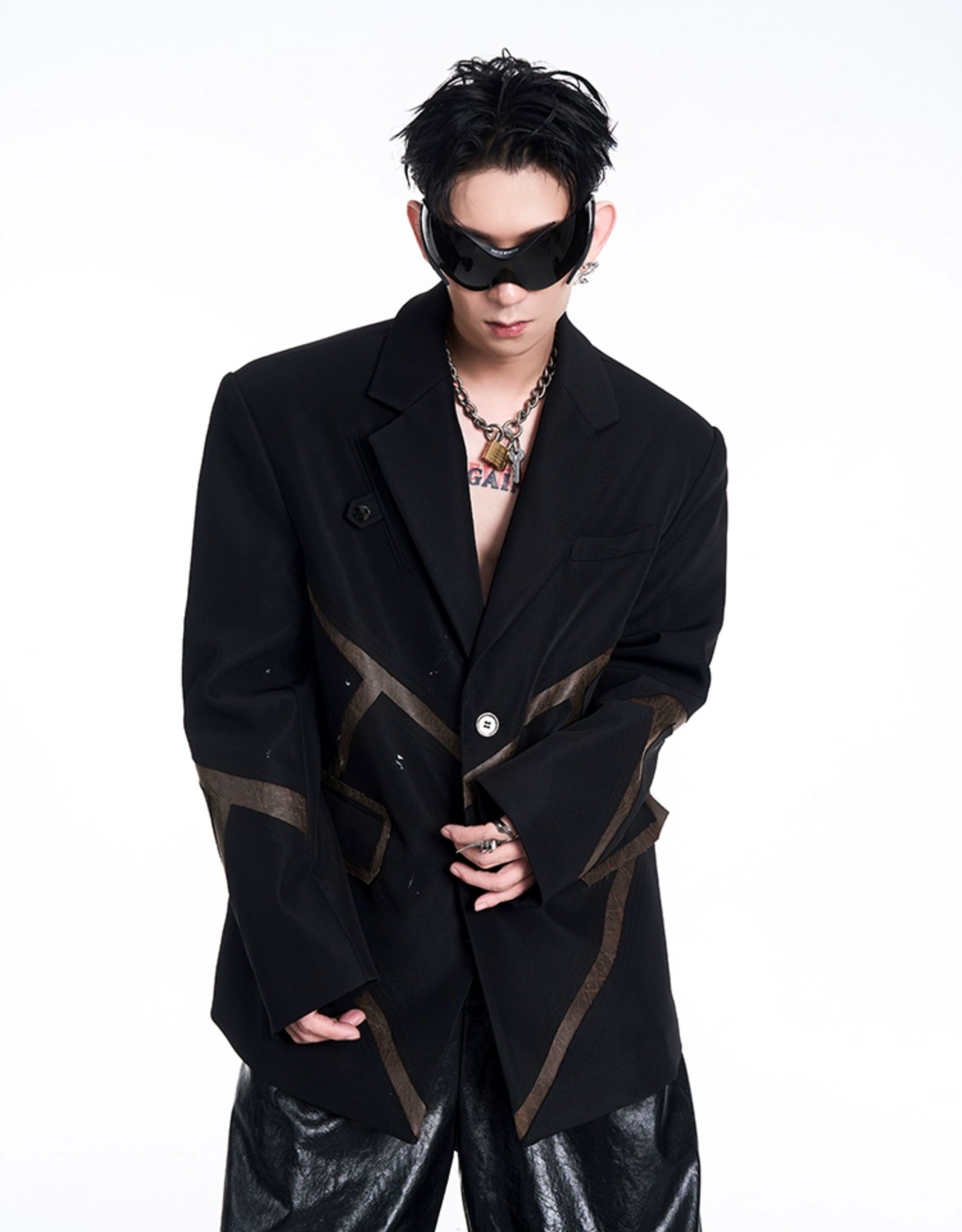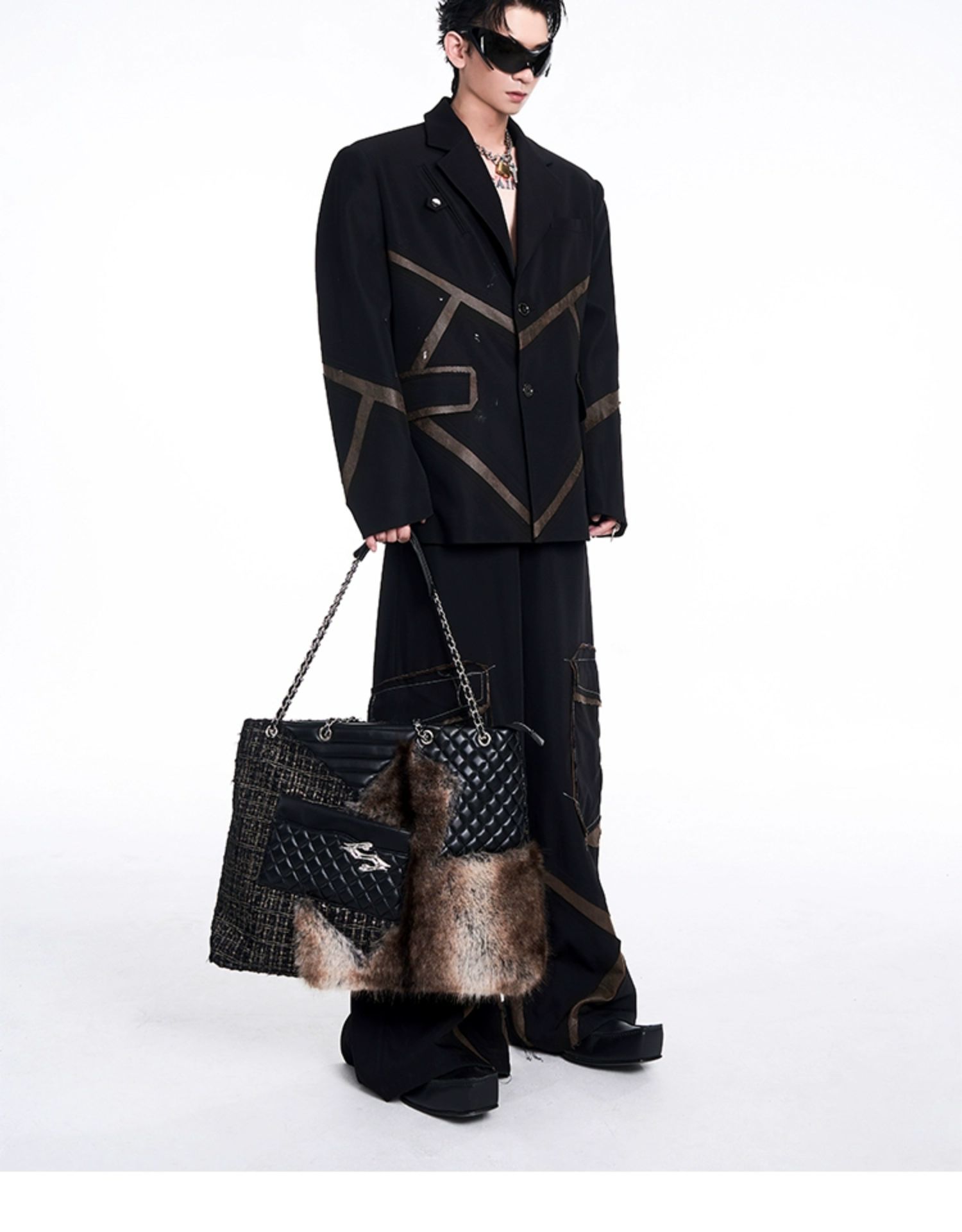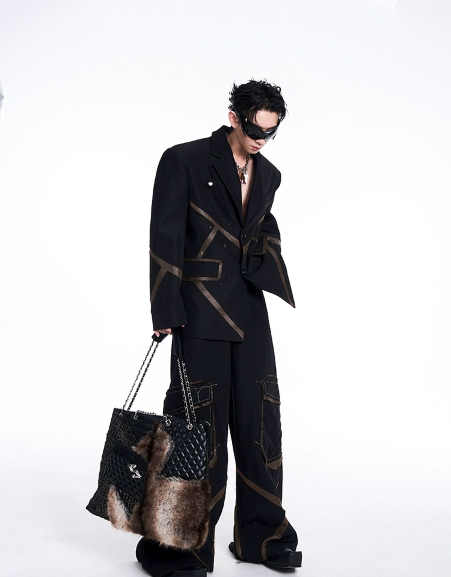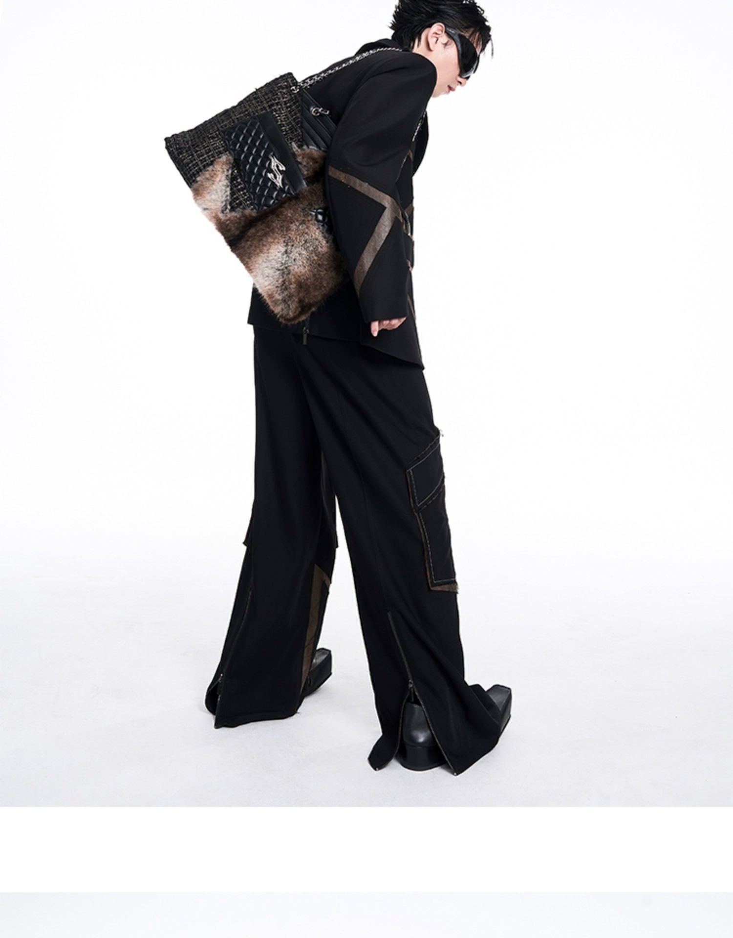 Leather Mix Oversize Double Jacket & Wide Leg Cargo Trousers Setup WN10230