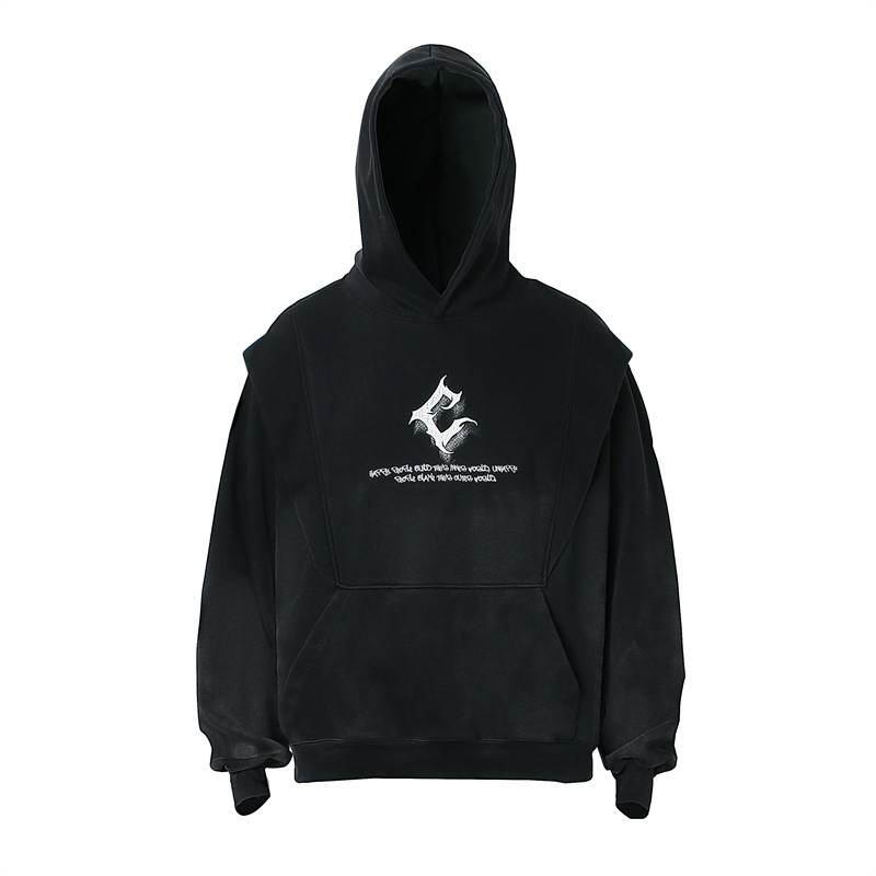 Cracked Letter Gradient Patchwork Hoodie WN11376