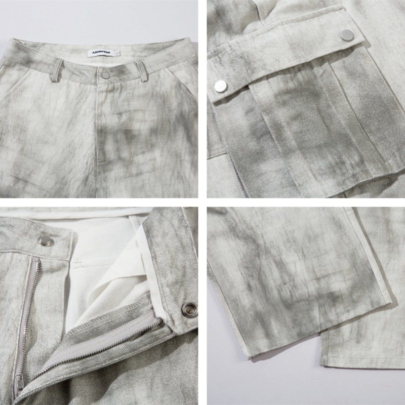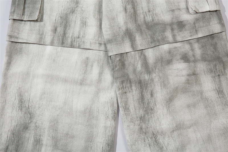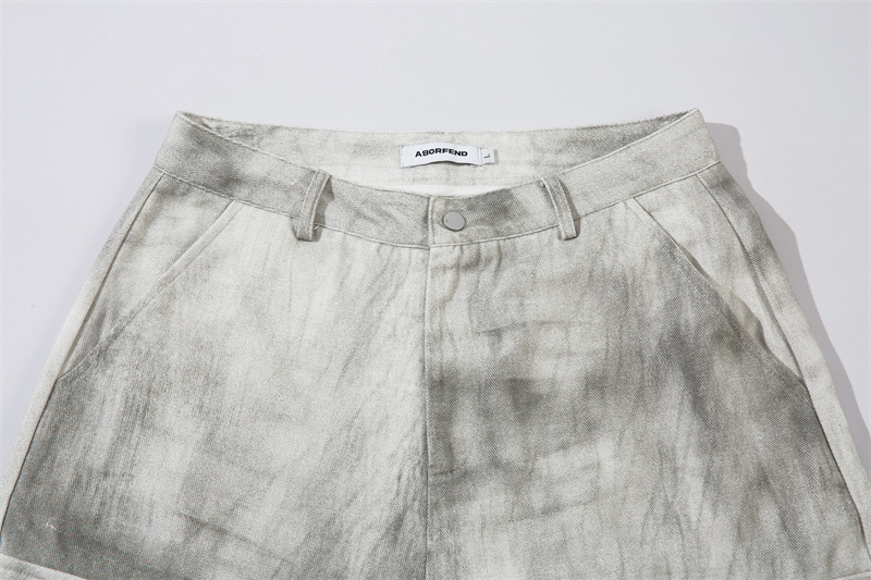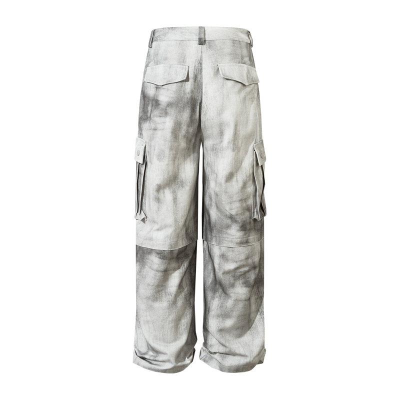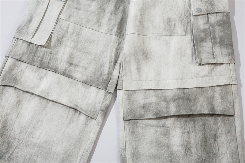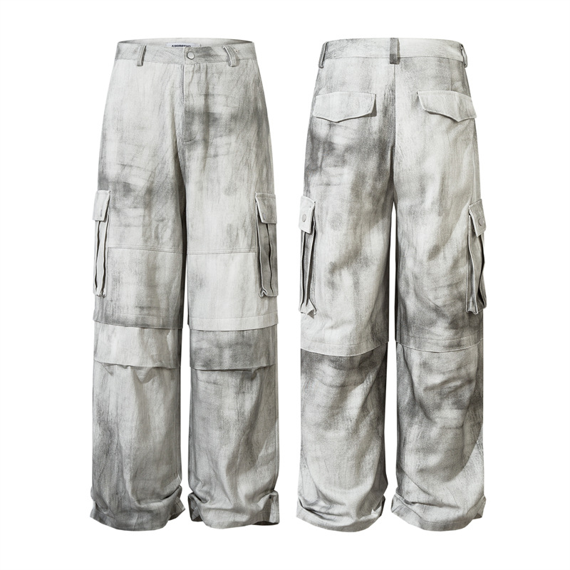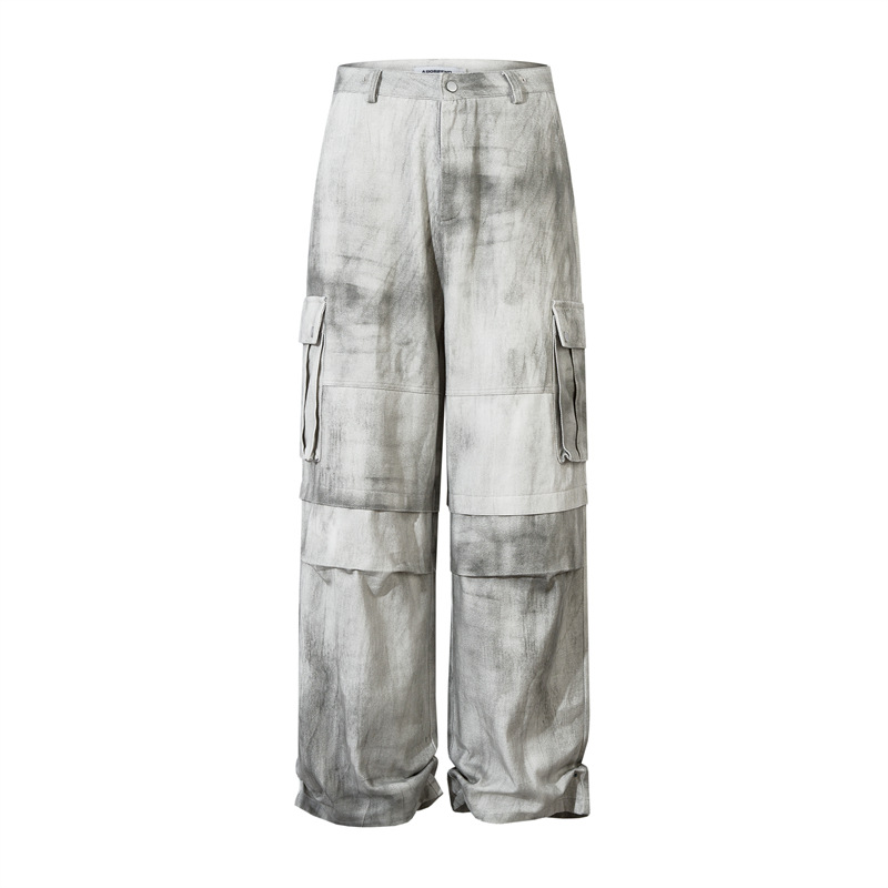 Spray Paint Patchwork Multi-Pocket Wide-Leg Cargo Denim Jeans WN11383