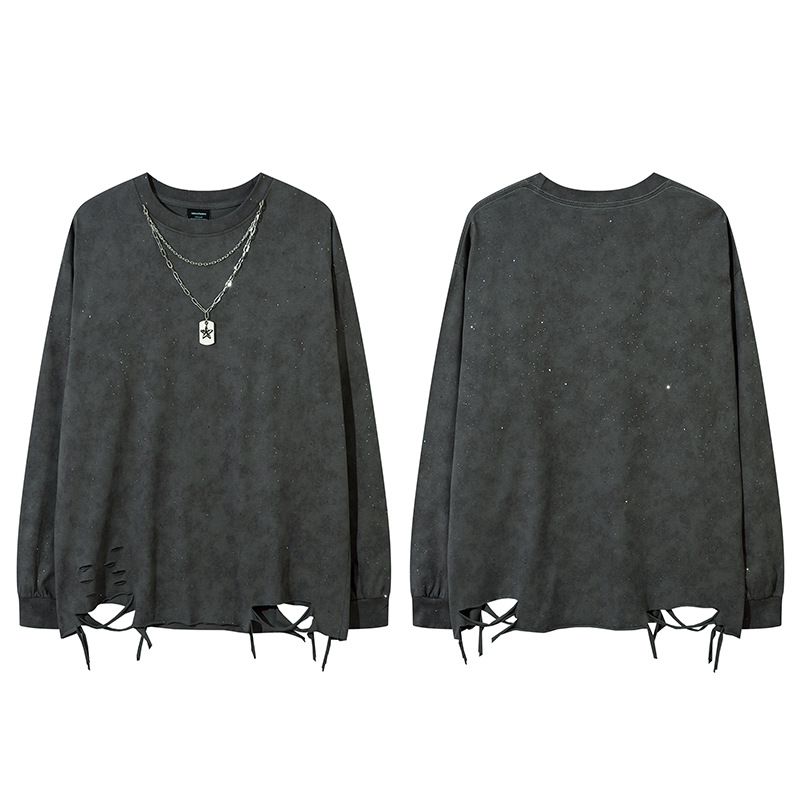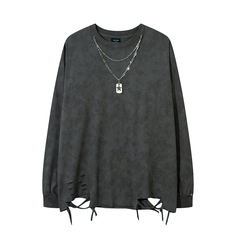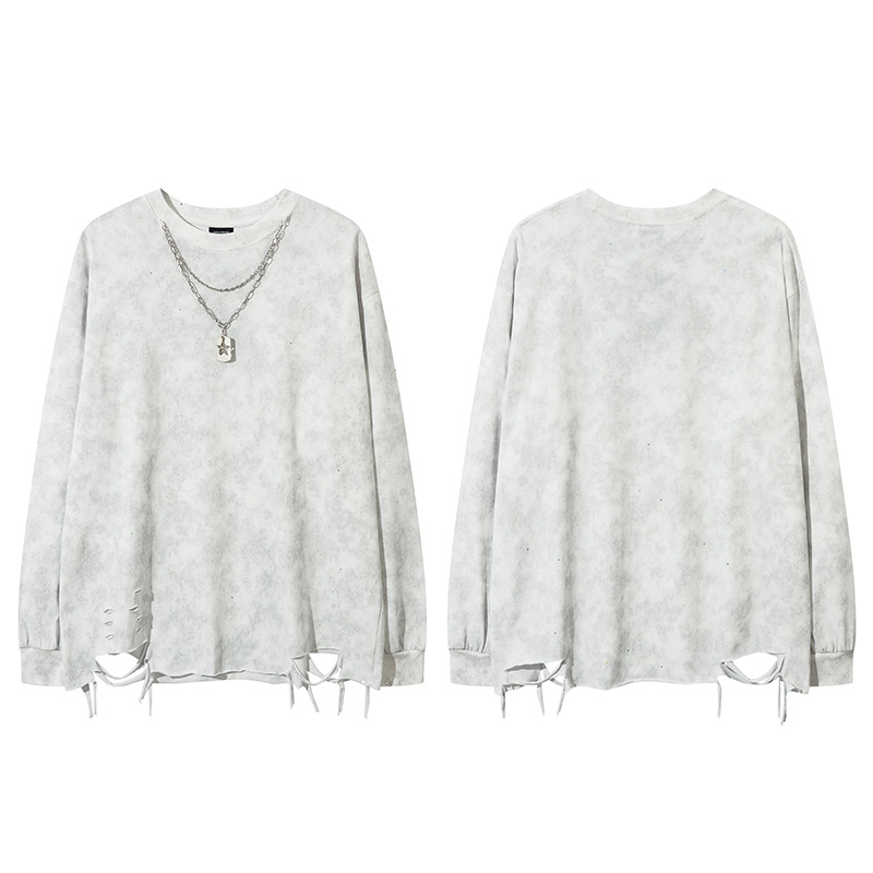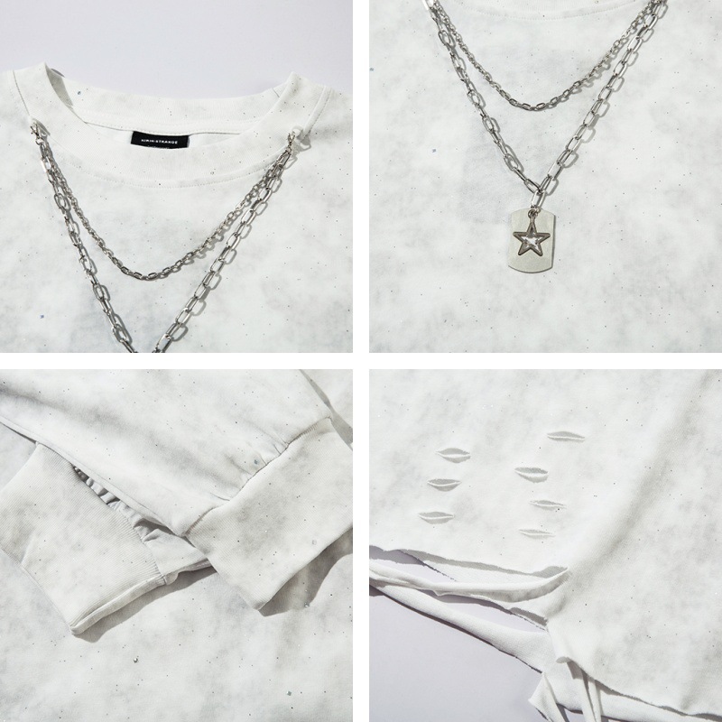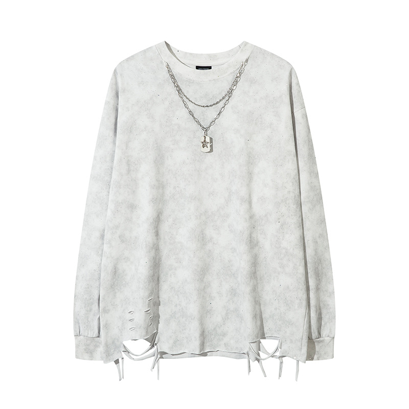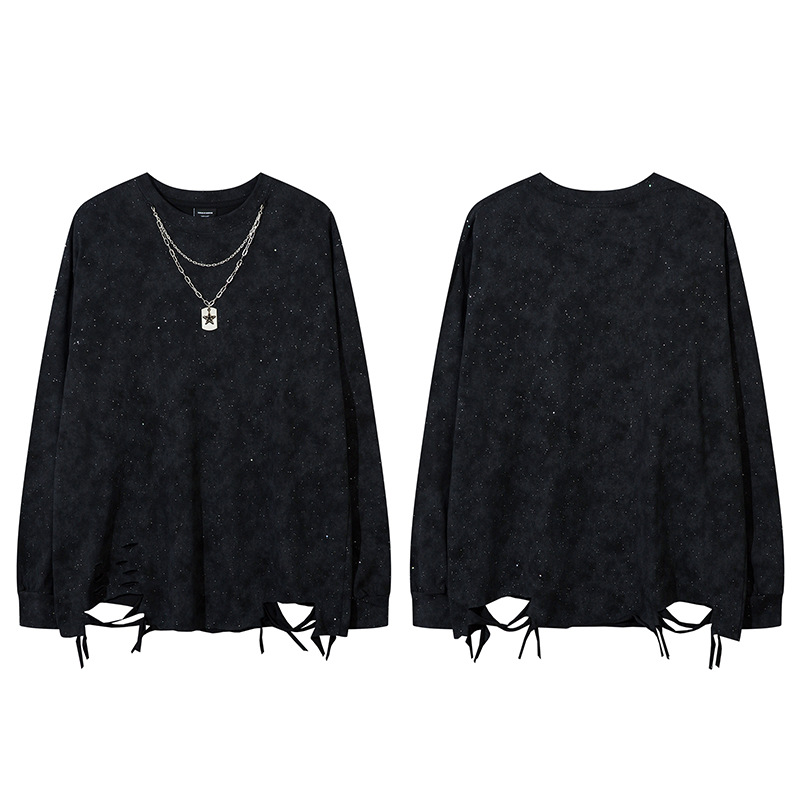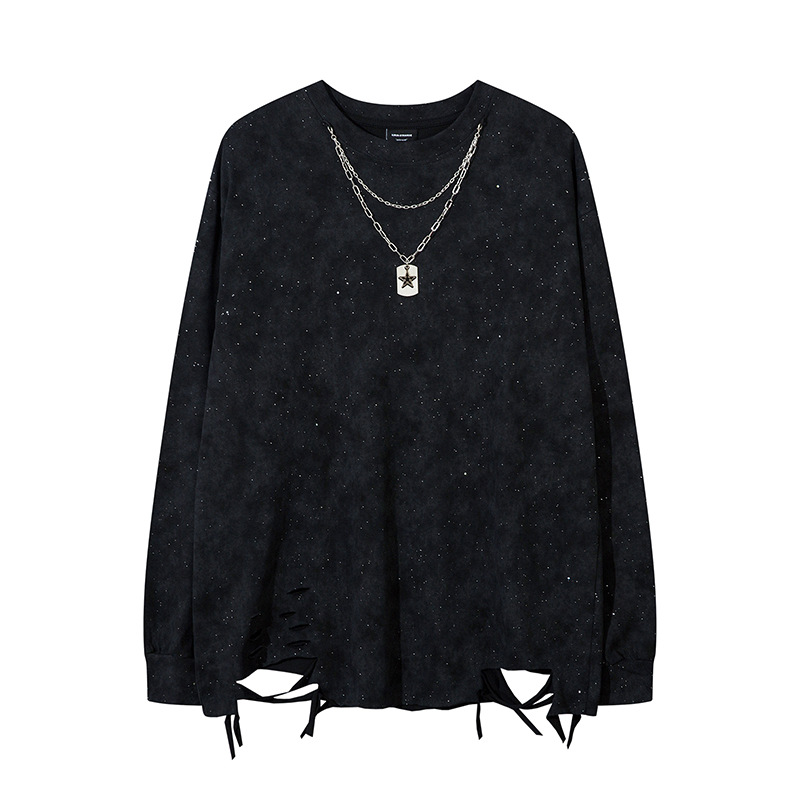 Damage Starry Design Long Sleeve T-Shirt WN11391