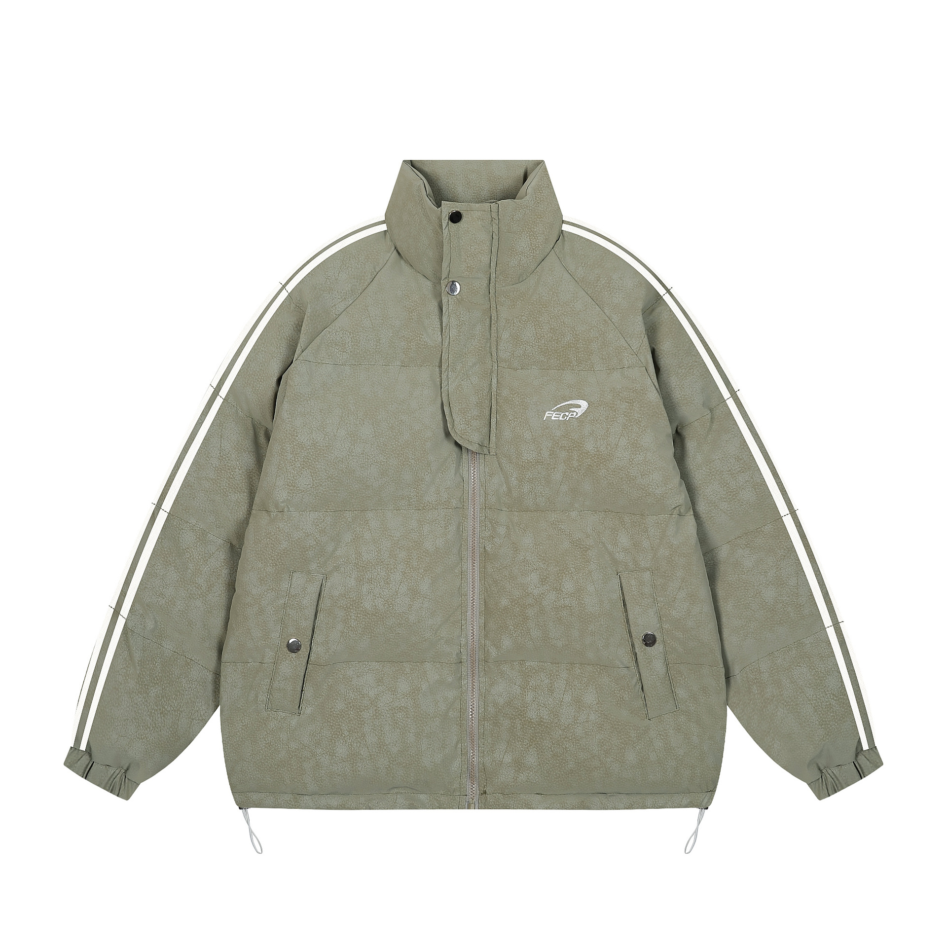 Letter Embroidery Stripe Puffer Jacket WN11494