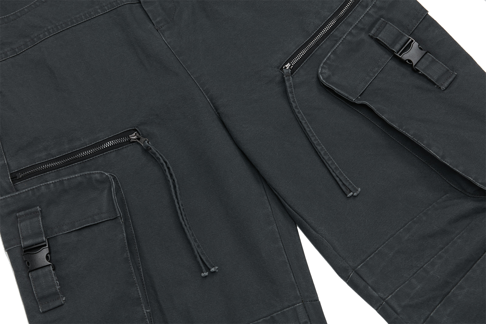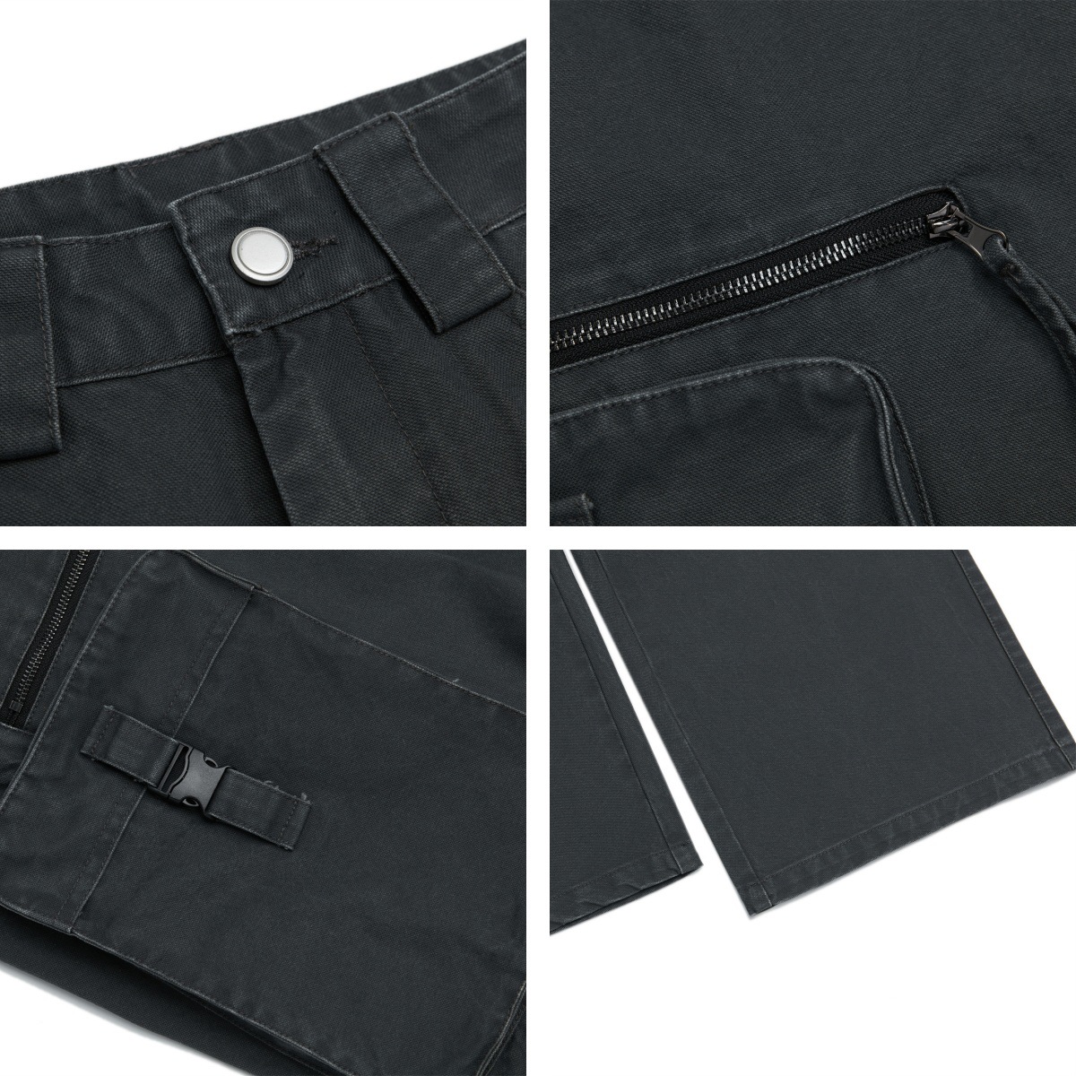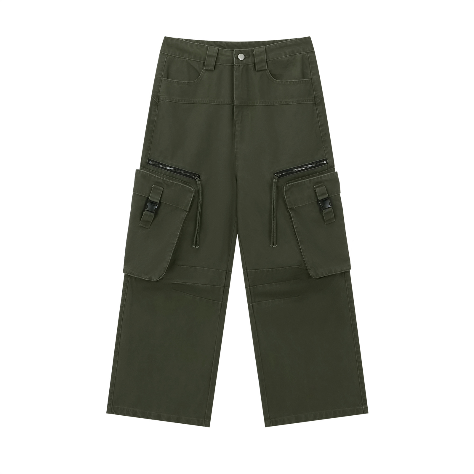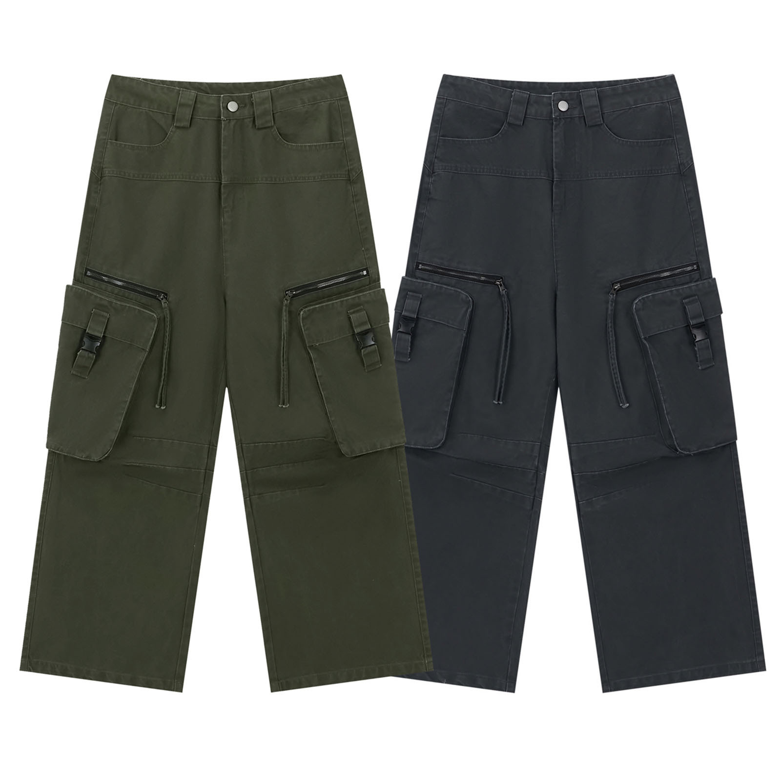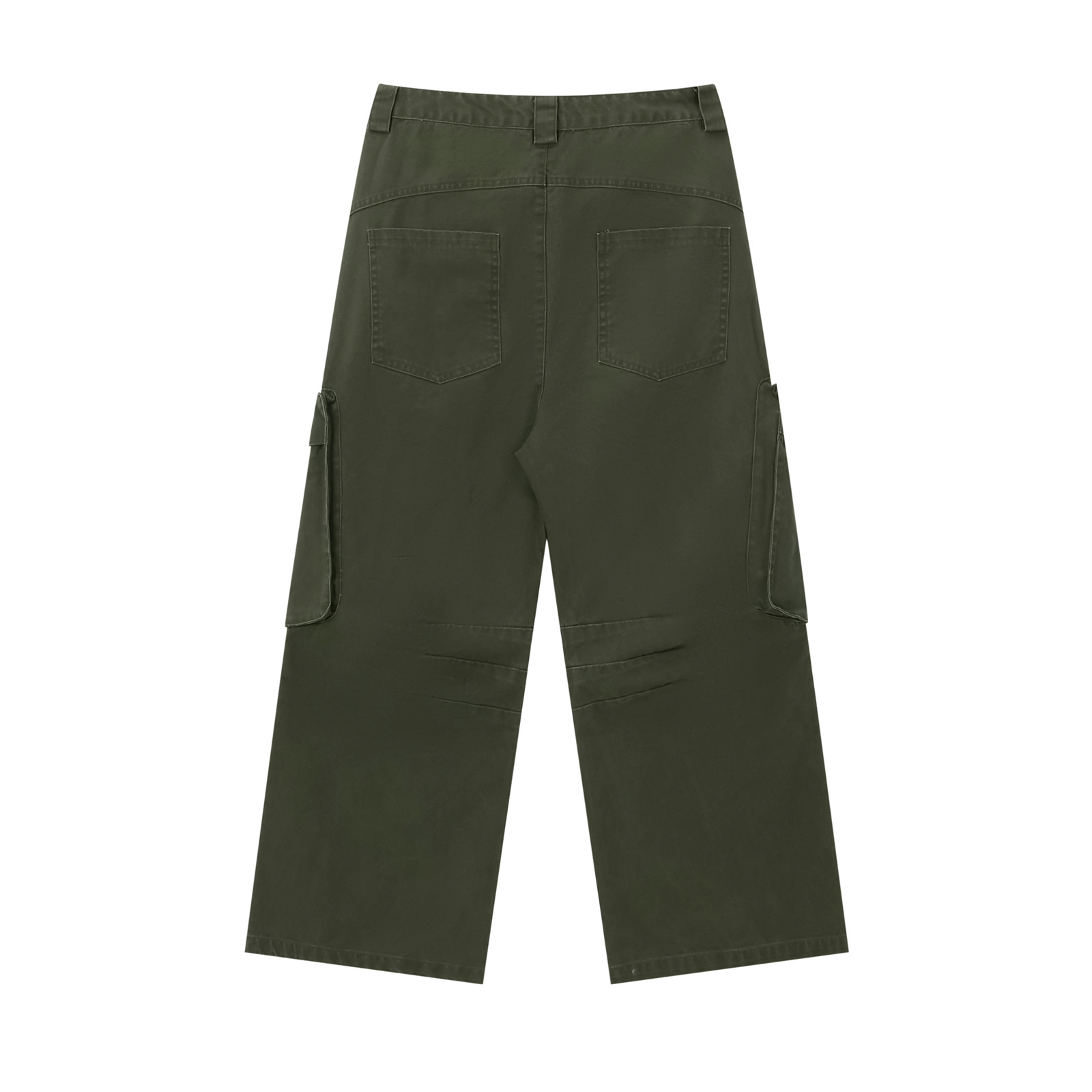 Washed Large Pocket Wide-Leg Cargo Pants WN11529