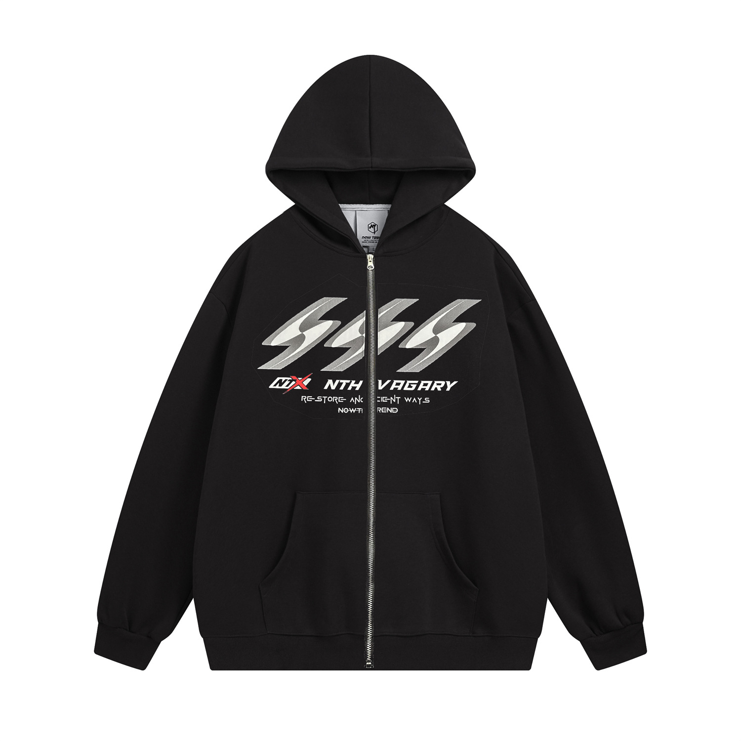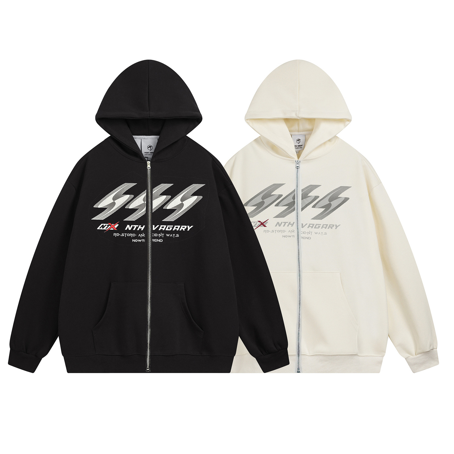Letter Print Fleece Oversize Zipper Hoodie WN11543