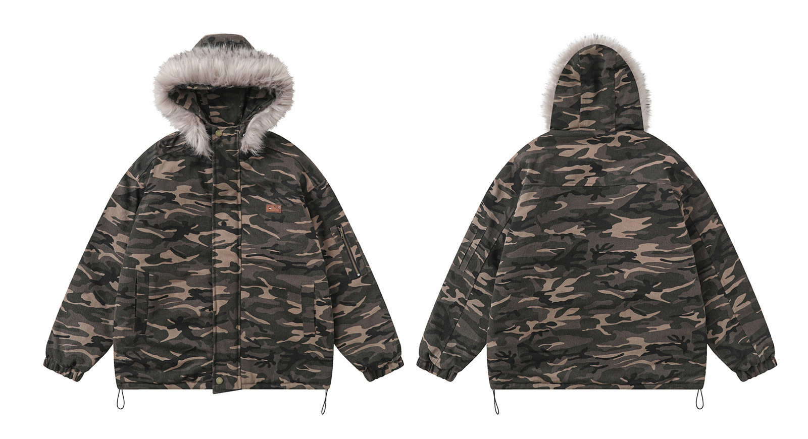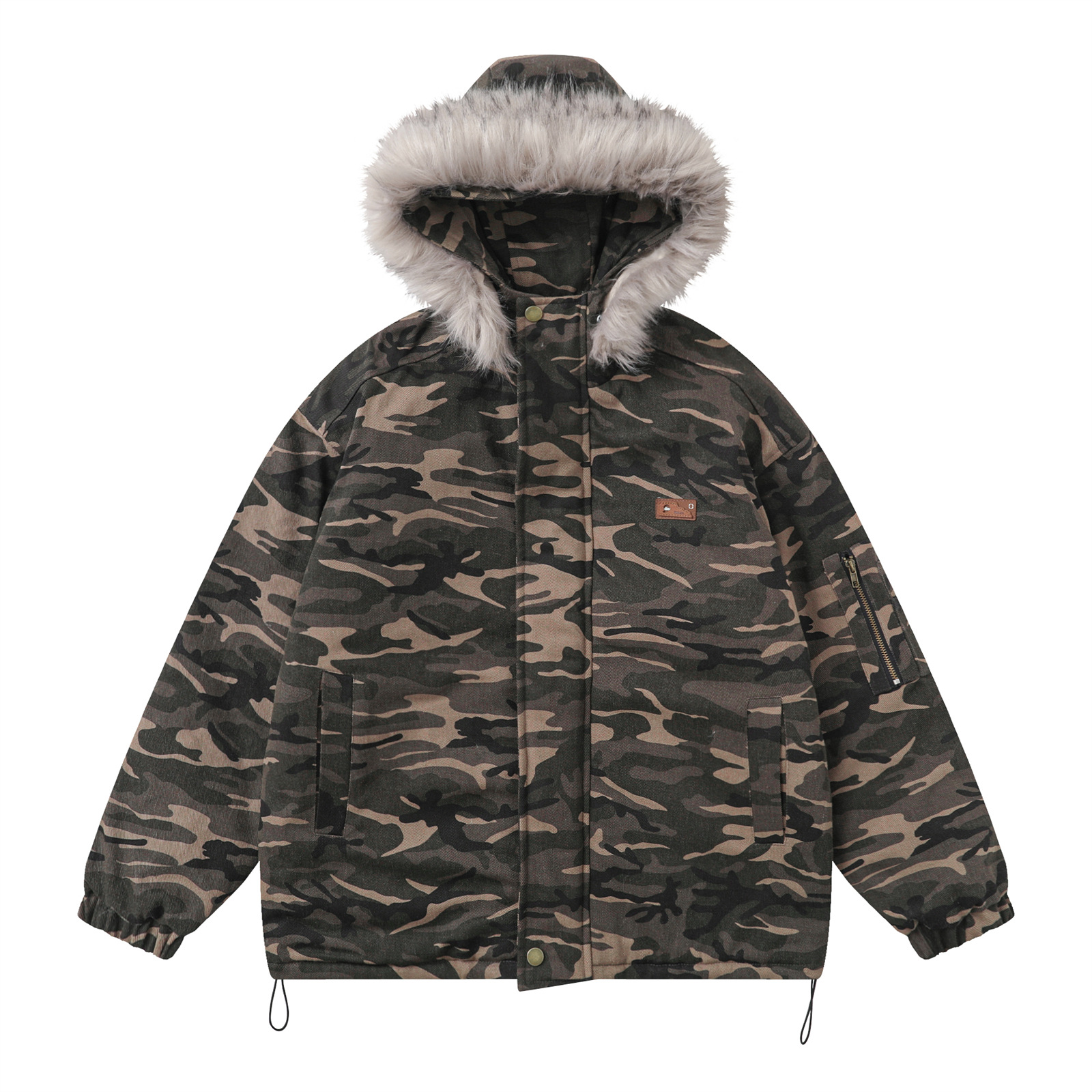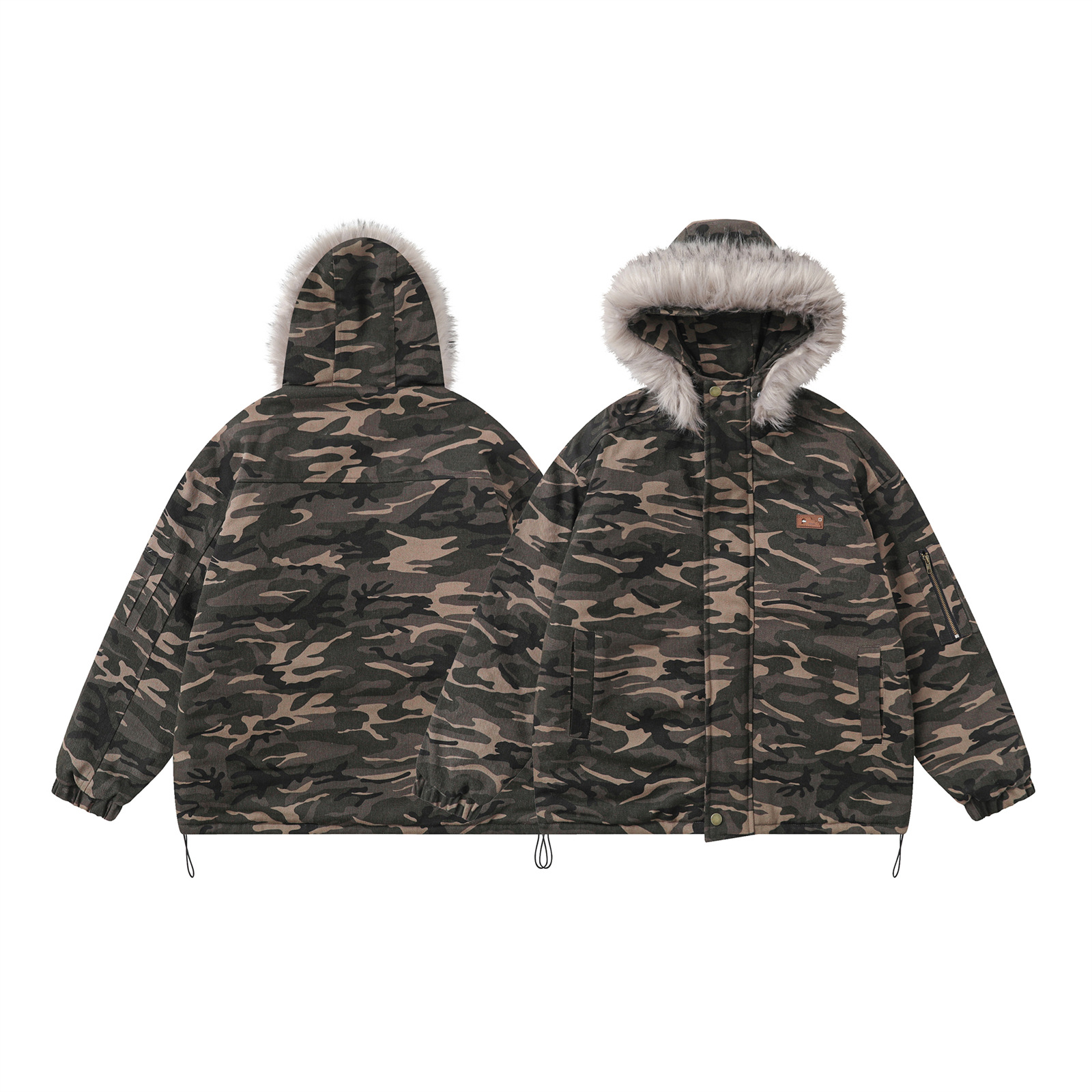 Camouflage Fur Collar Hooded Padded Jacket WN11555