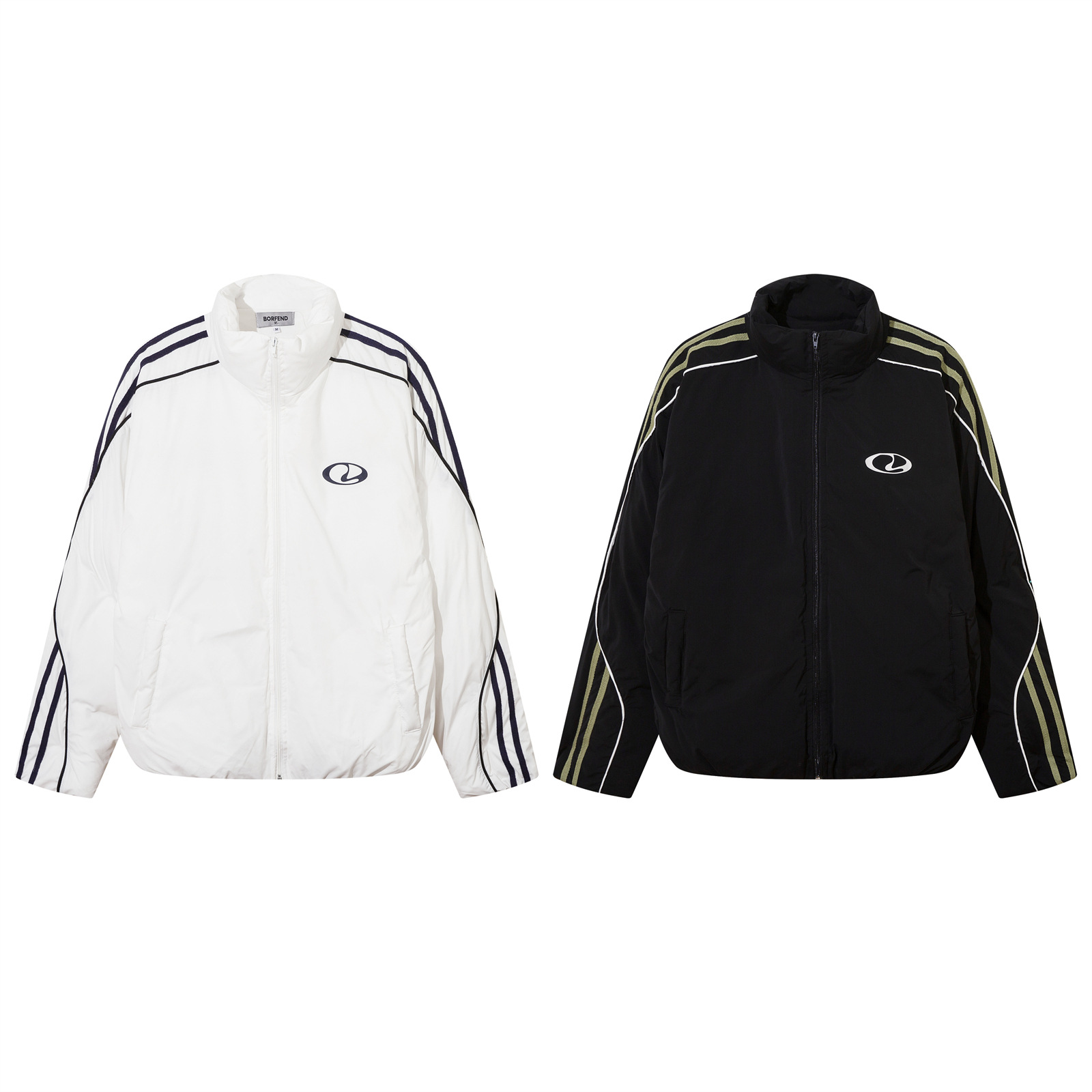 Stripe Webbing Patchwork High-Neck Puffer Jacket WN11559