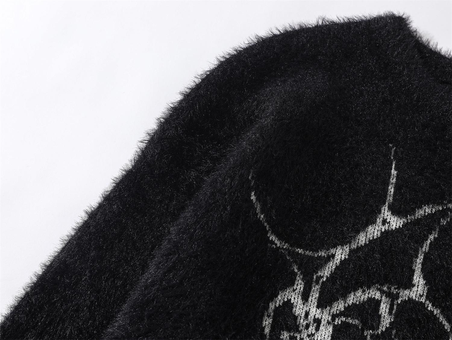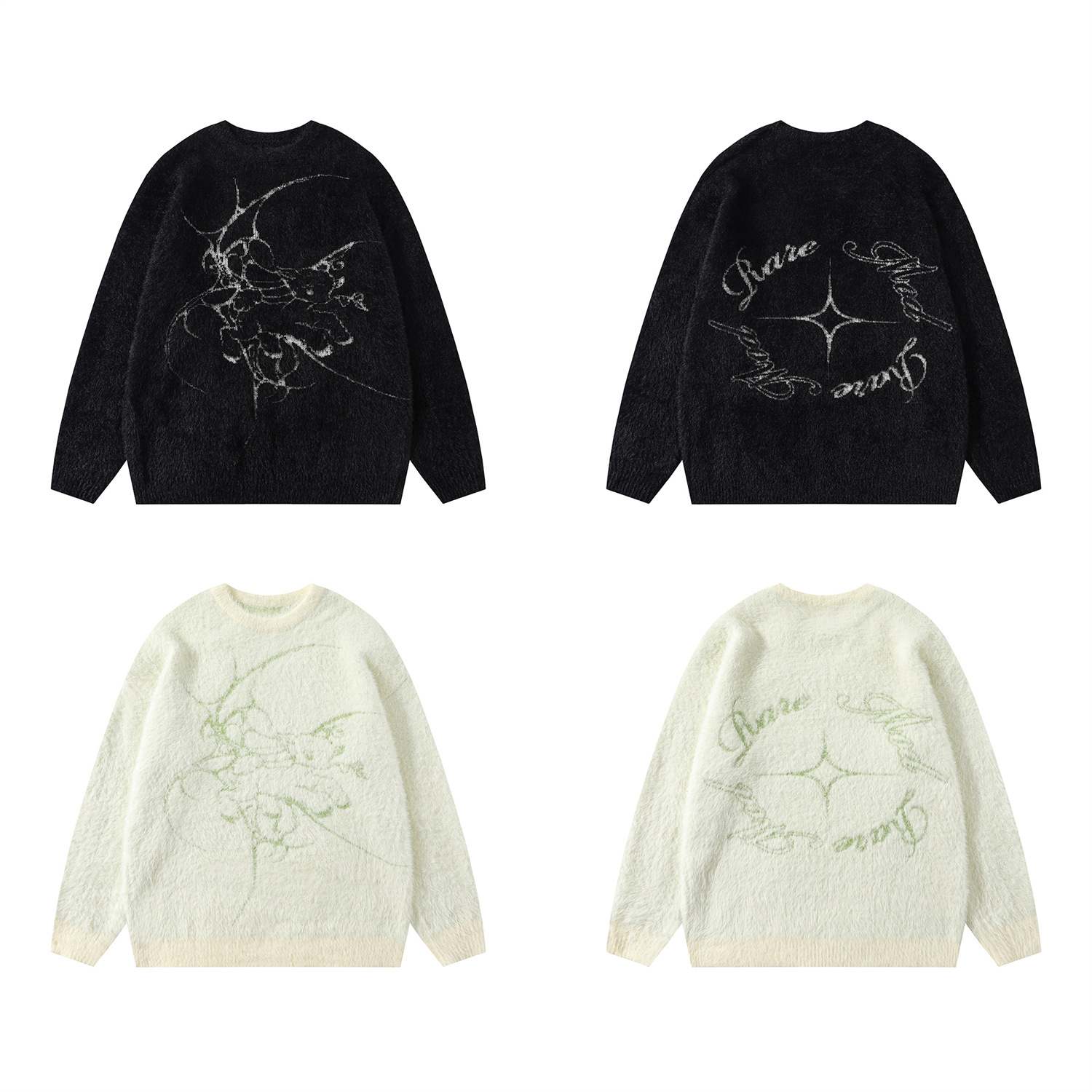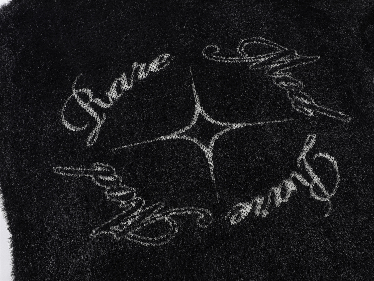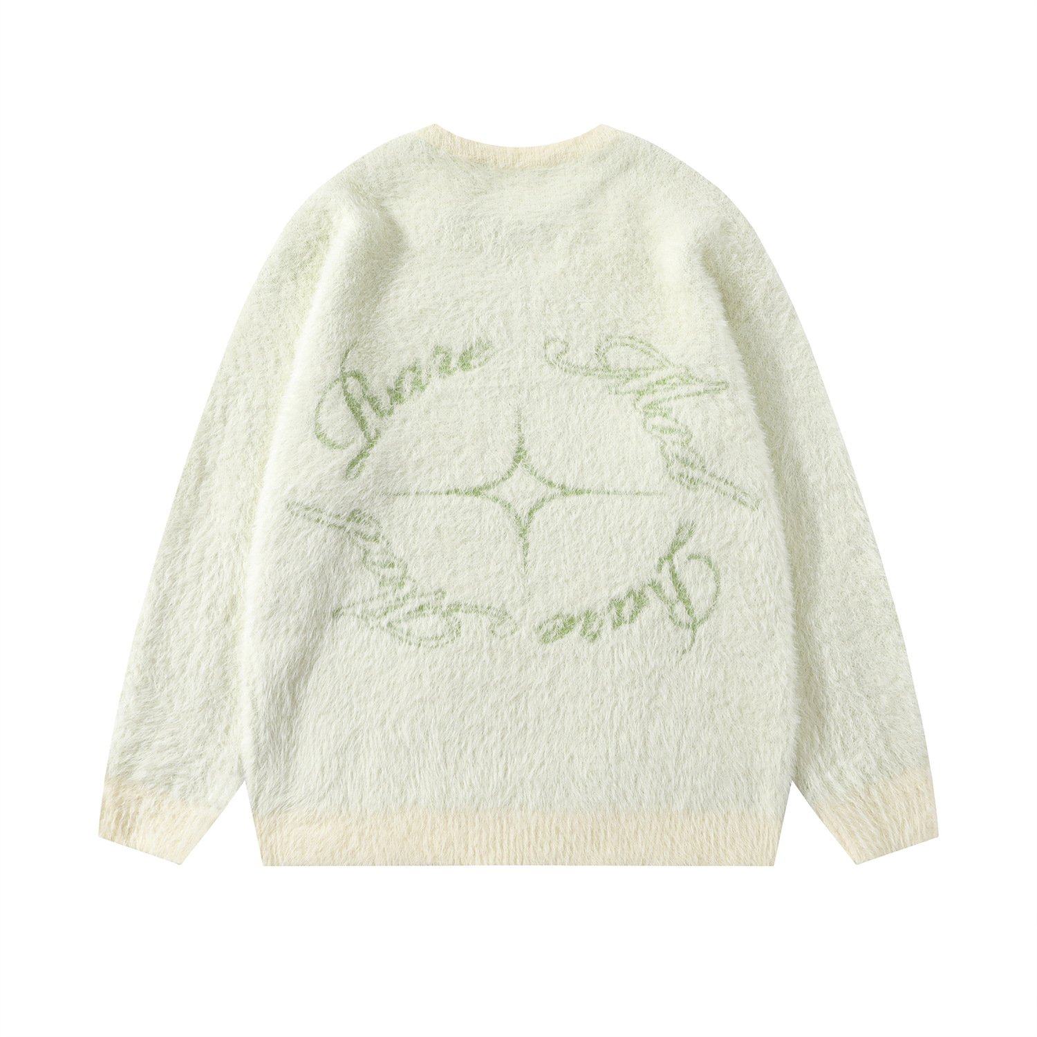 Fake Mink Fleece Letter Embroidery Oversize Knit Sweater WN11580
