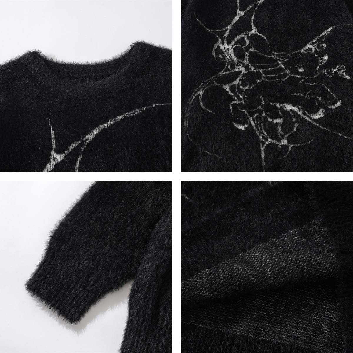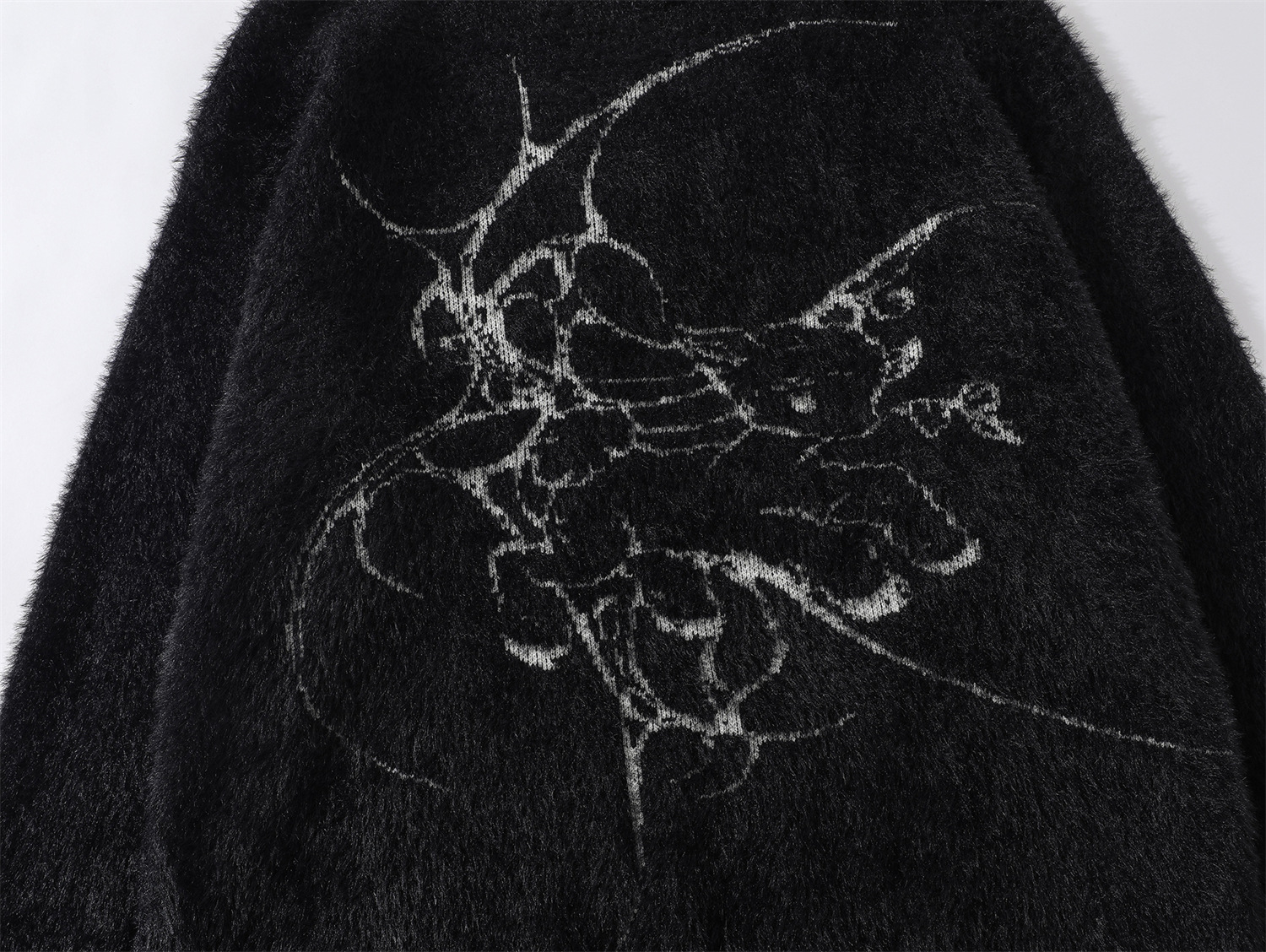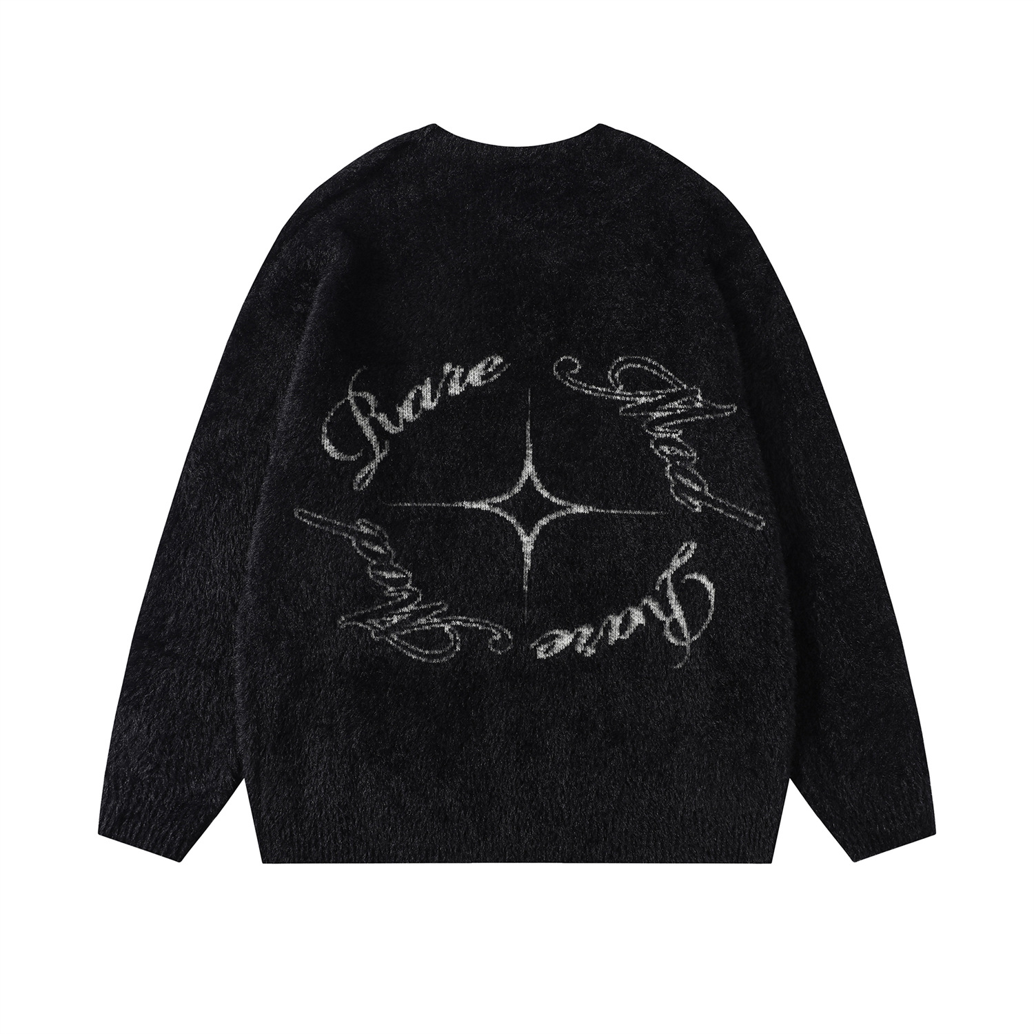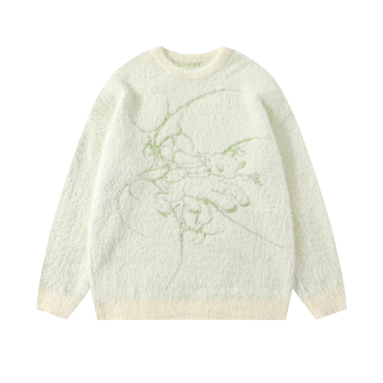 Fake Mink Fleece Letter Embroidery Oversize Knit Sweater WN11580