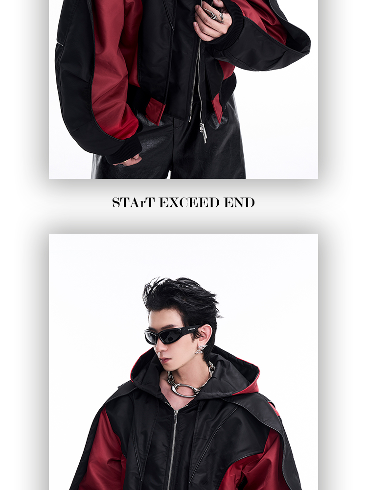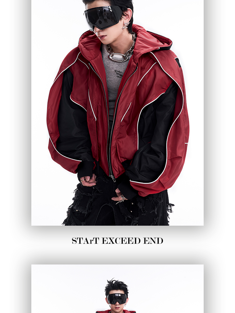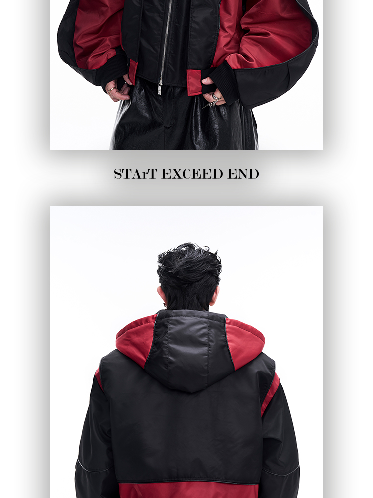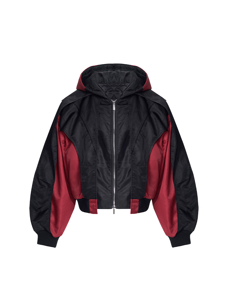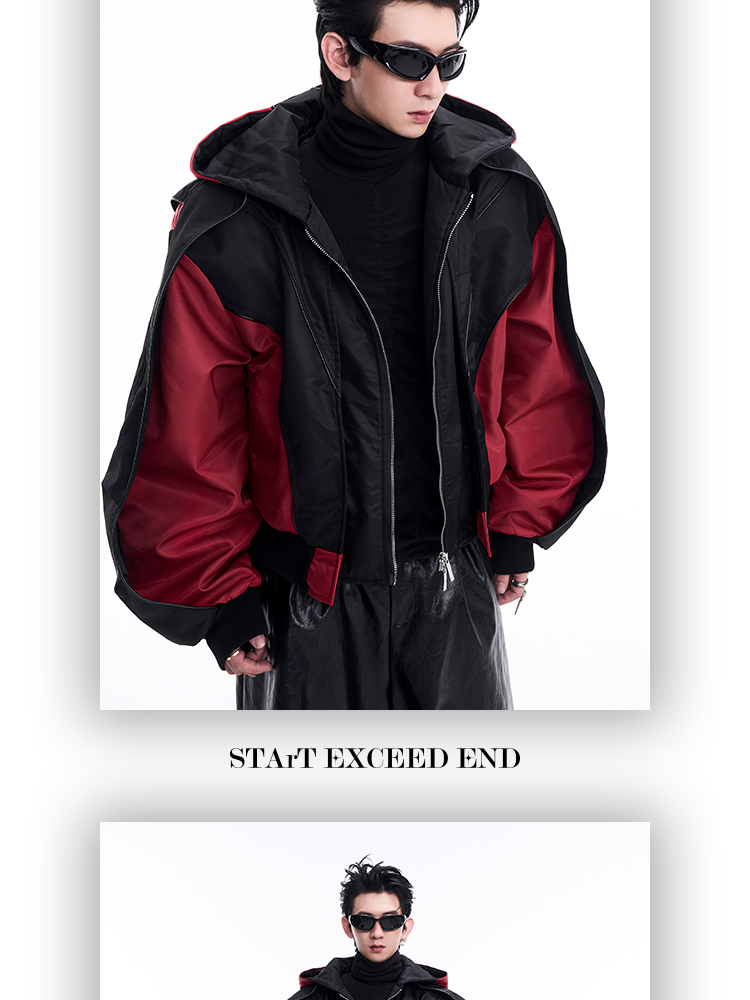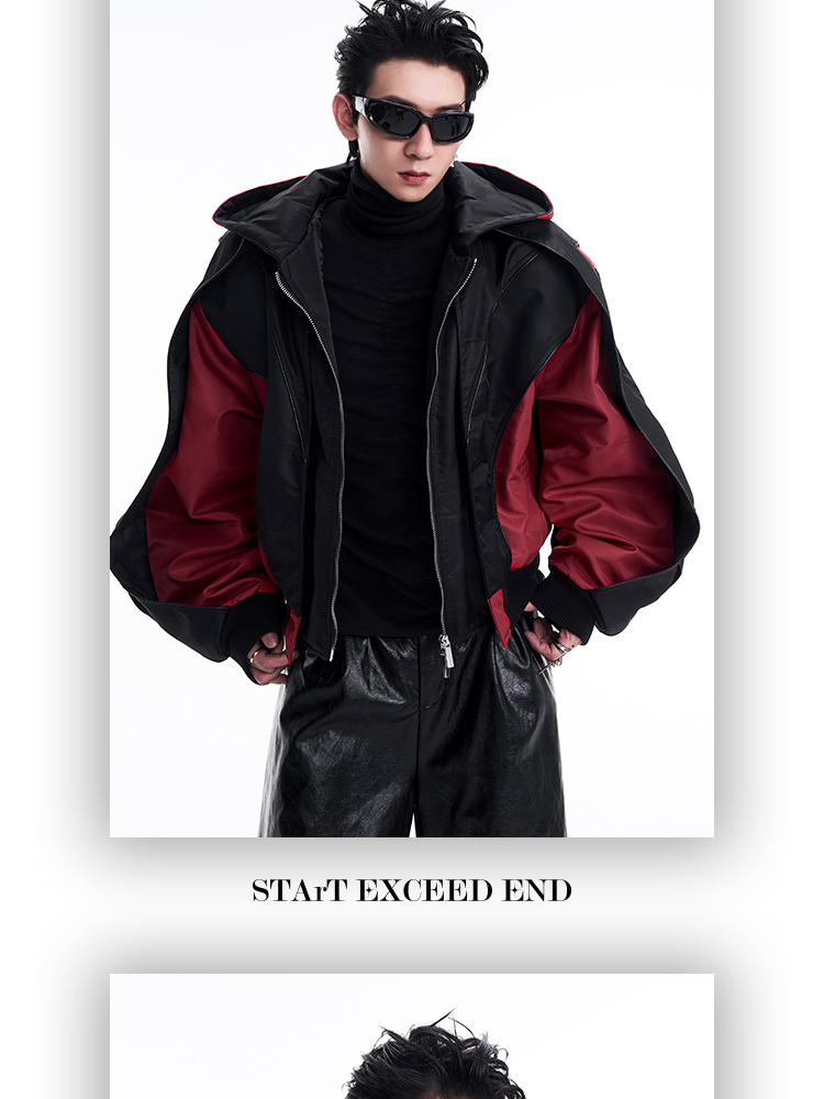 Oversize Structured Patchwork Hooded Short Puffer Jacket WN11706