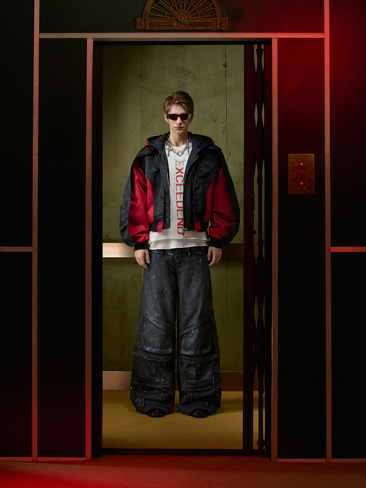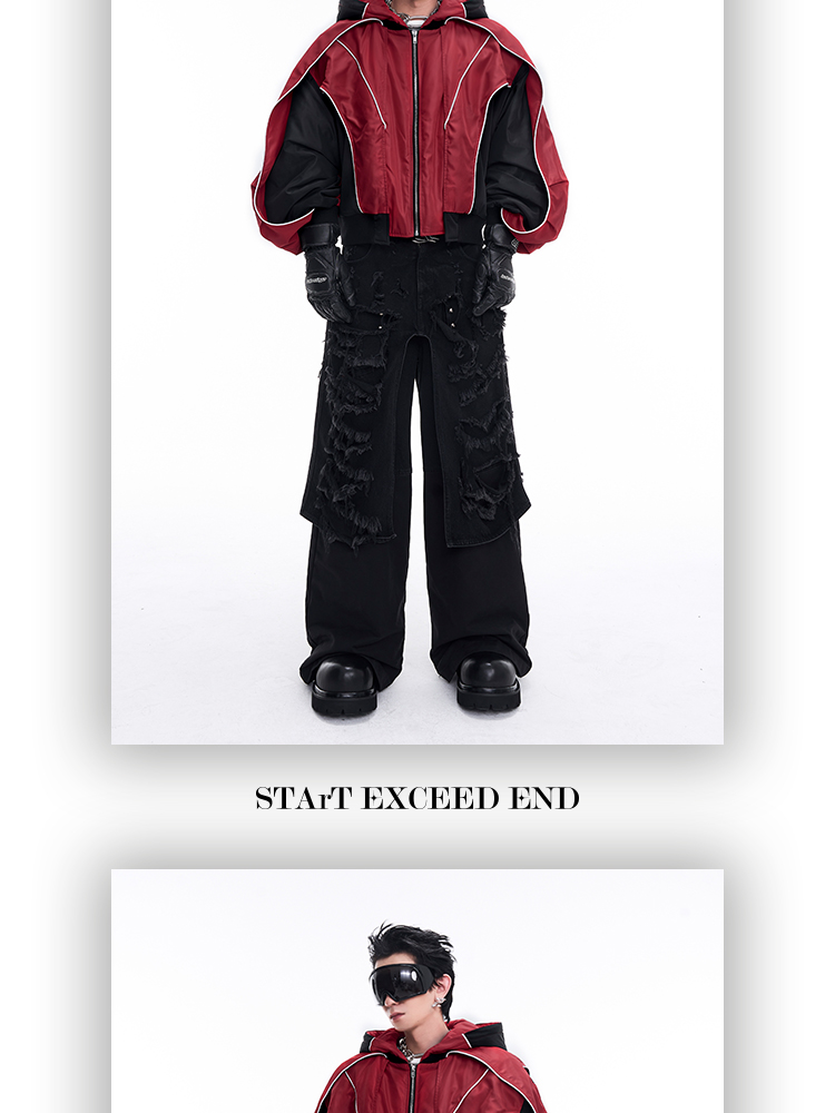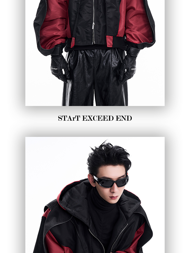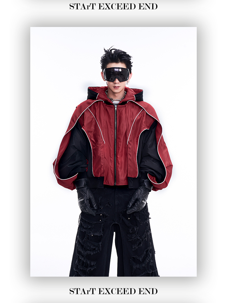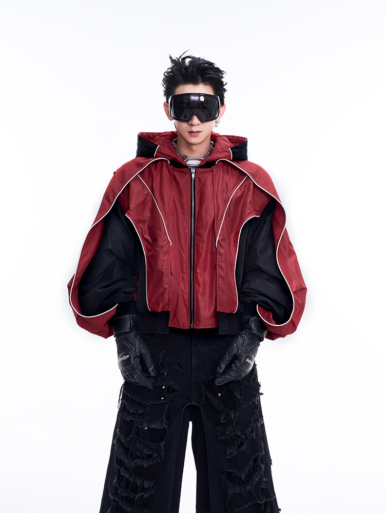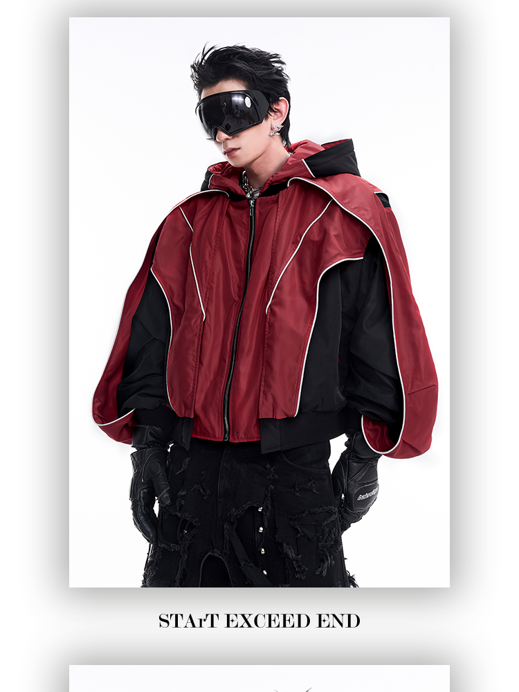 Oversize Structured Patchwork Hooded Short Puffer Jacket WN11706