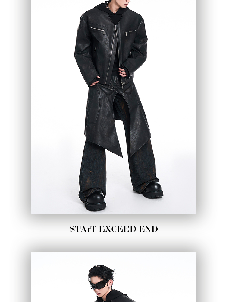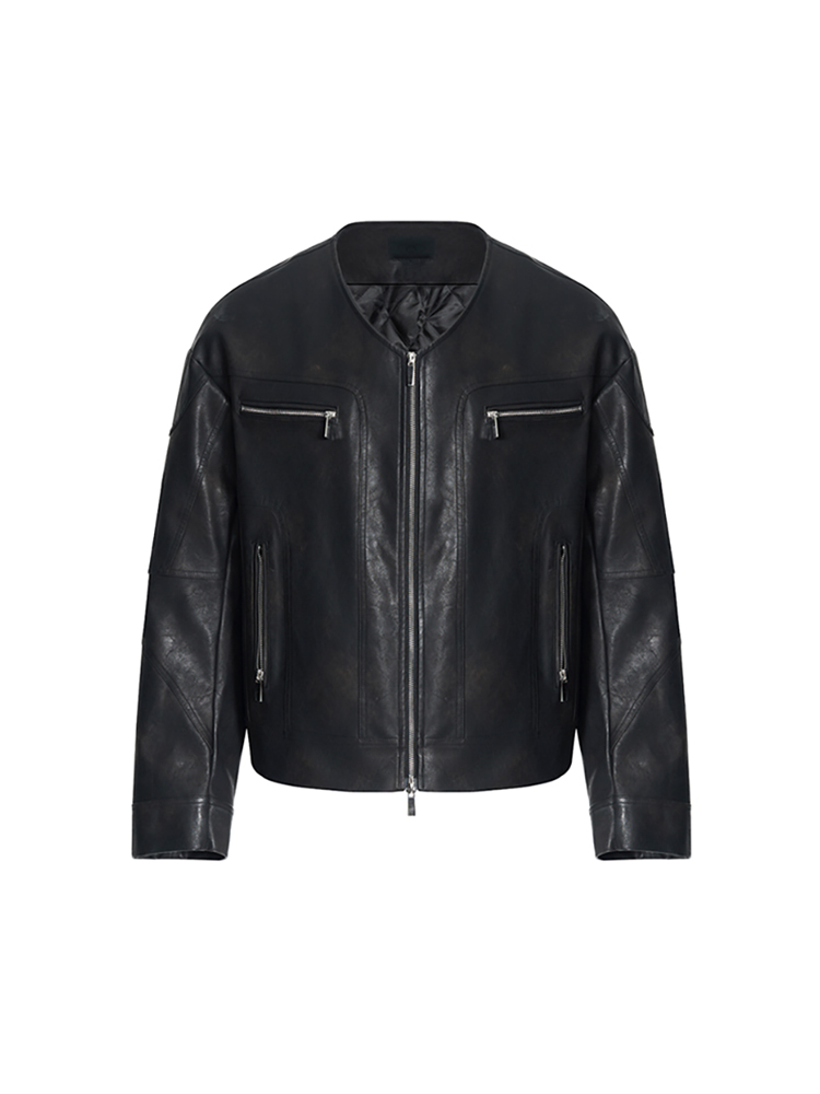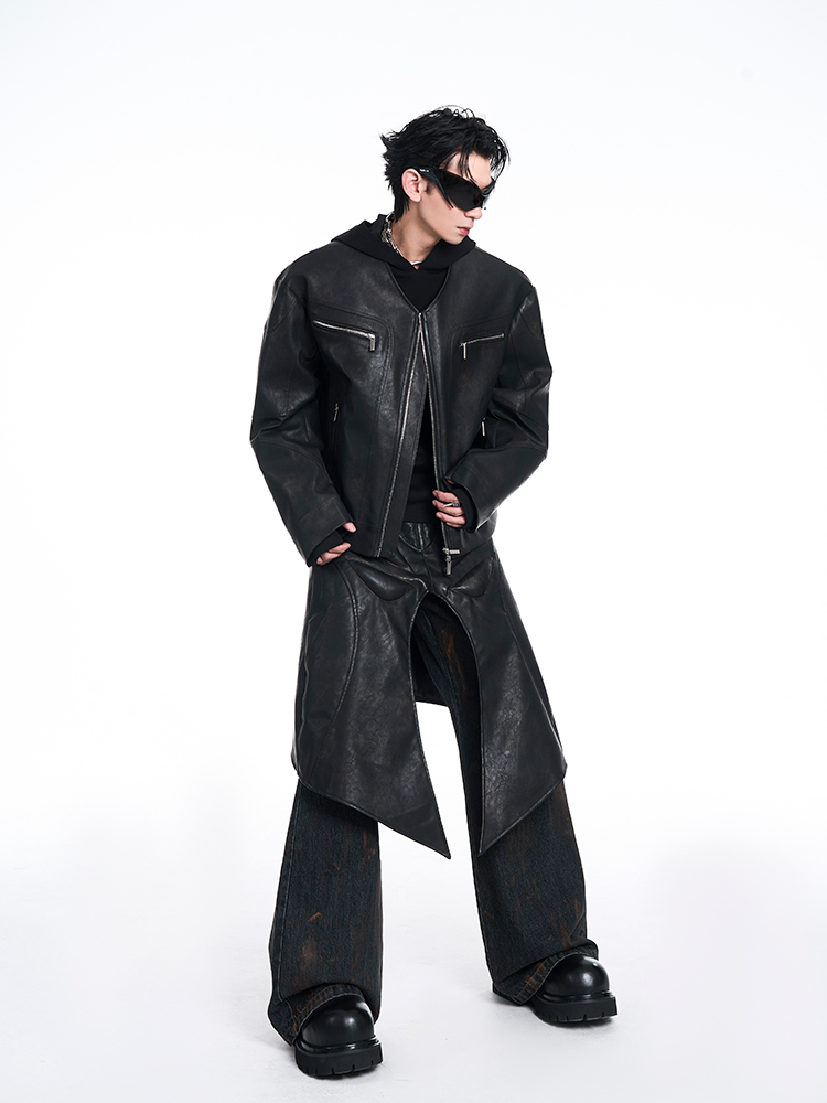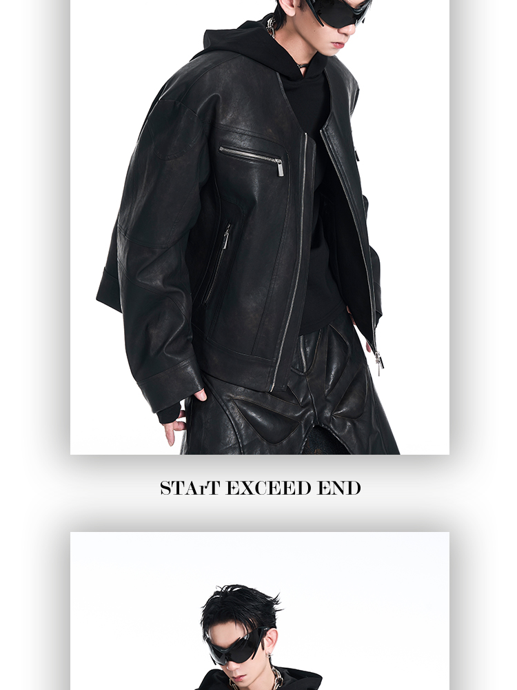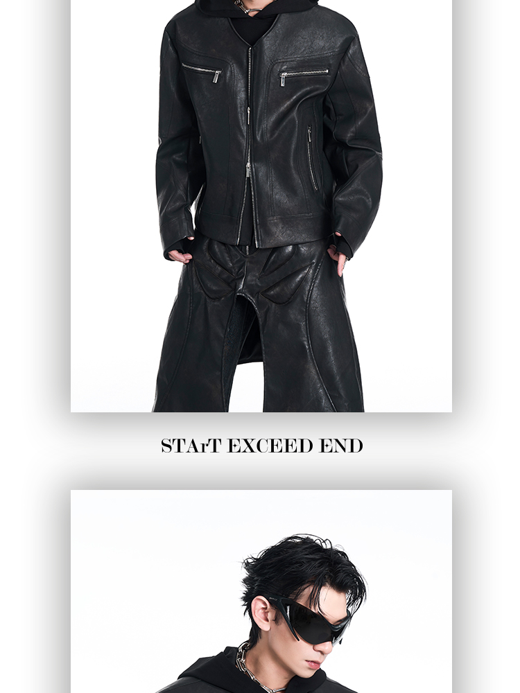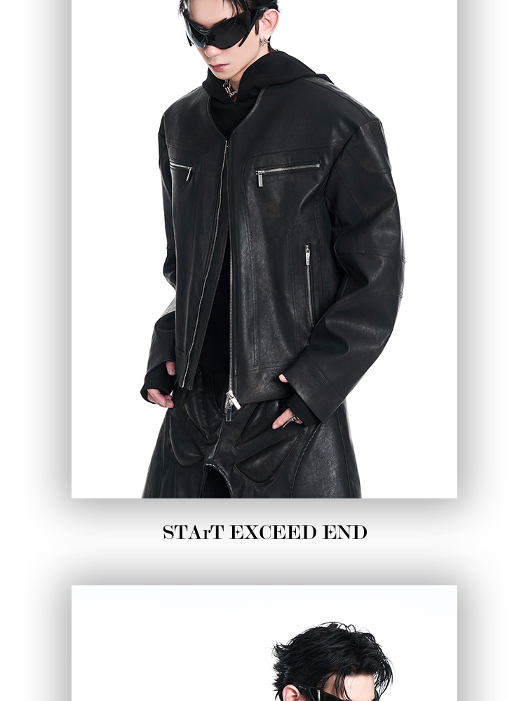 V-Neck Zipper Quilted PU Leather Jacket WN11712