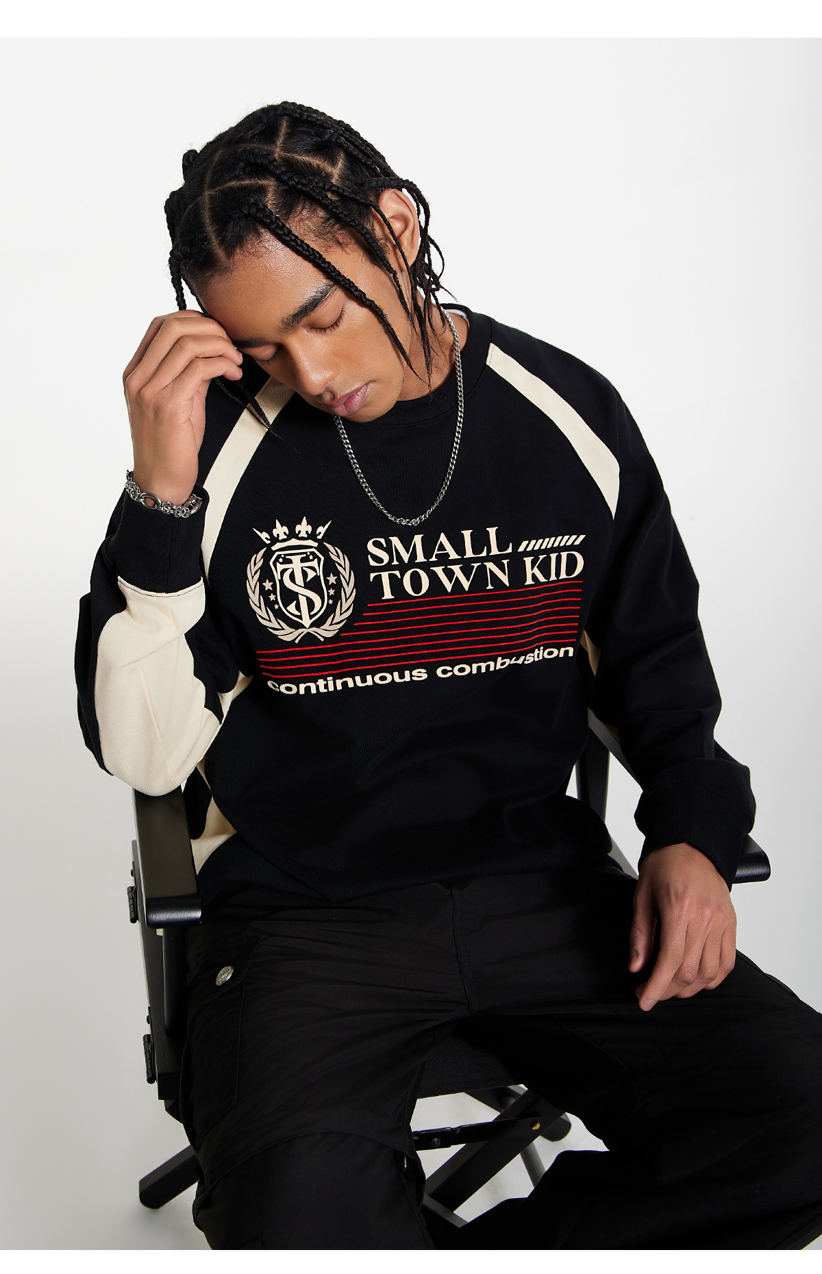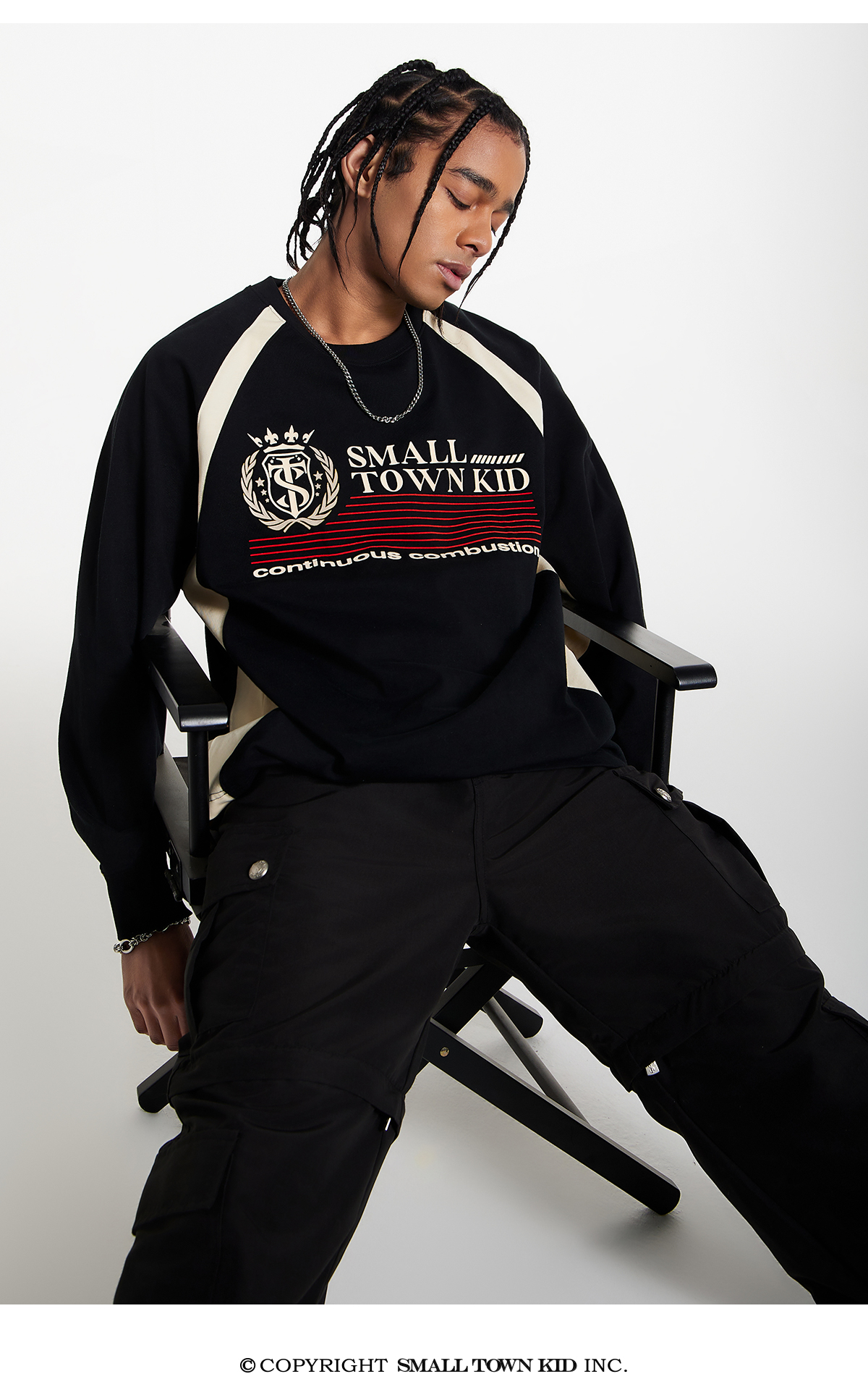 Patchwork Badge Graphic Long Sleeve T-Shirt WN11962