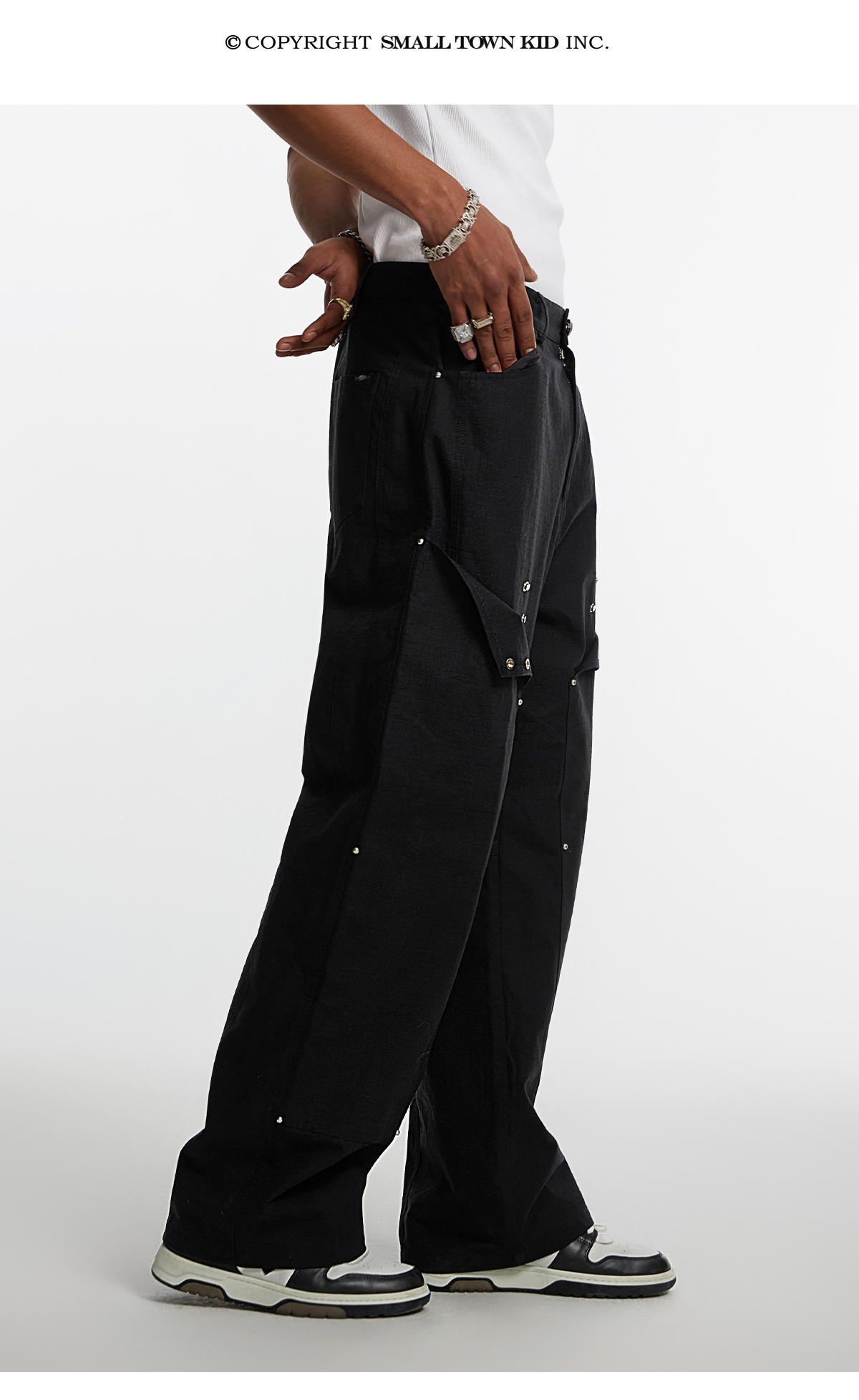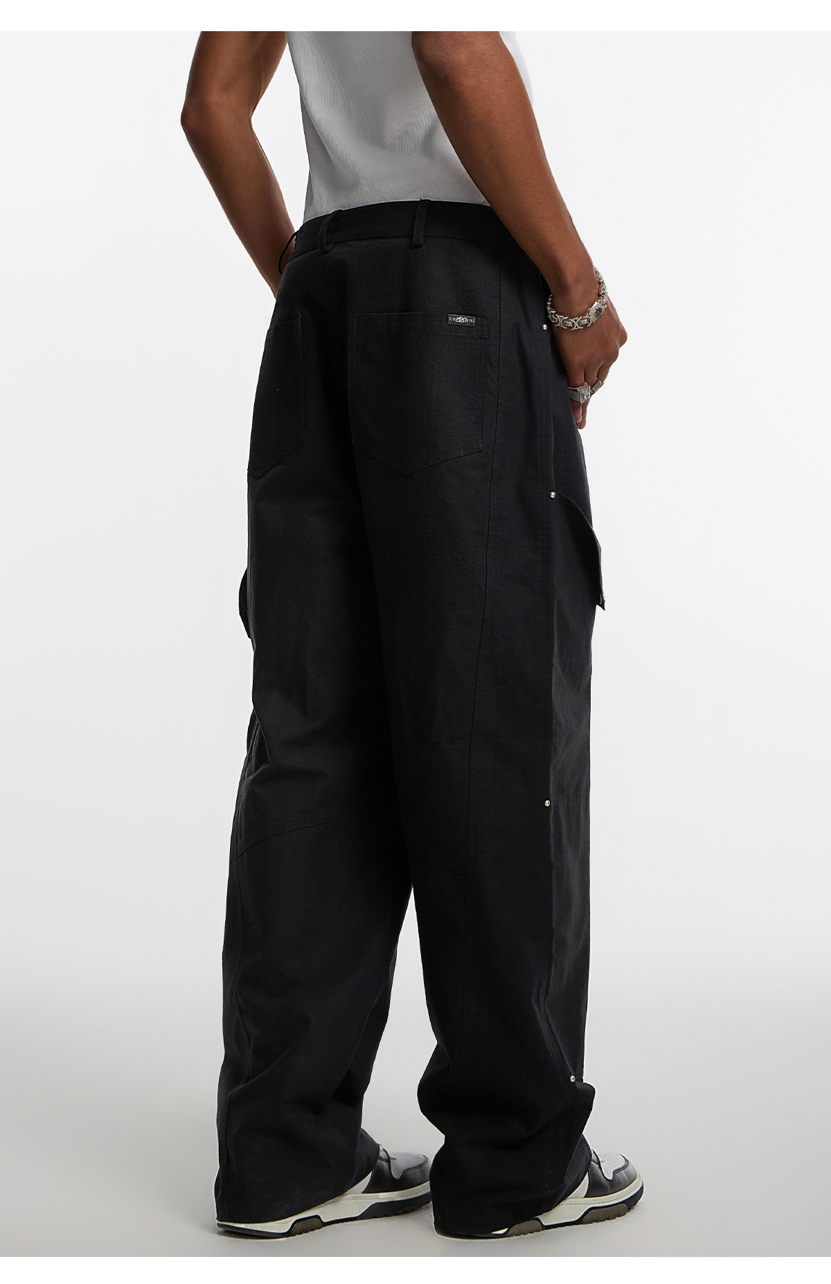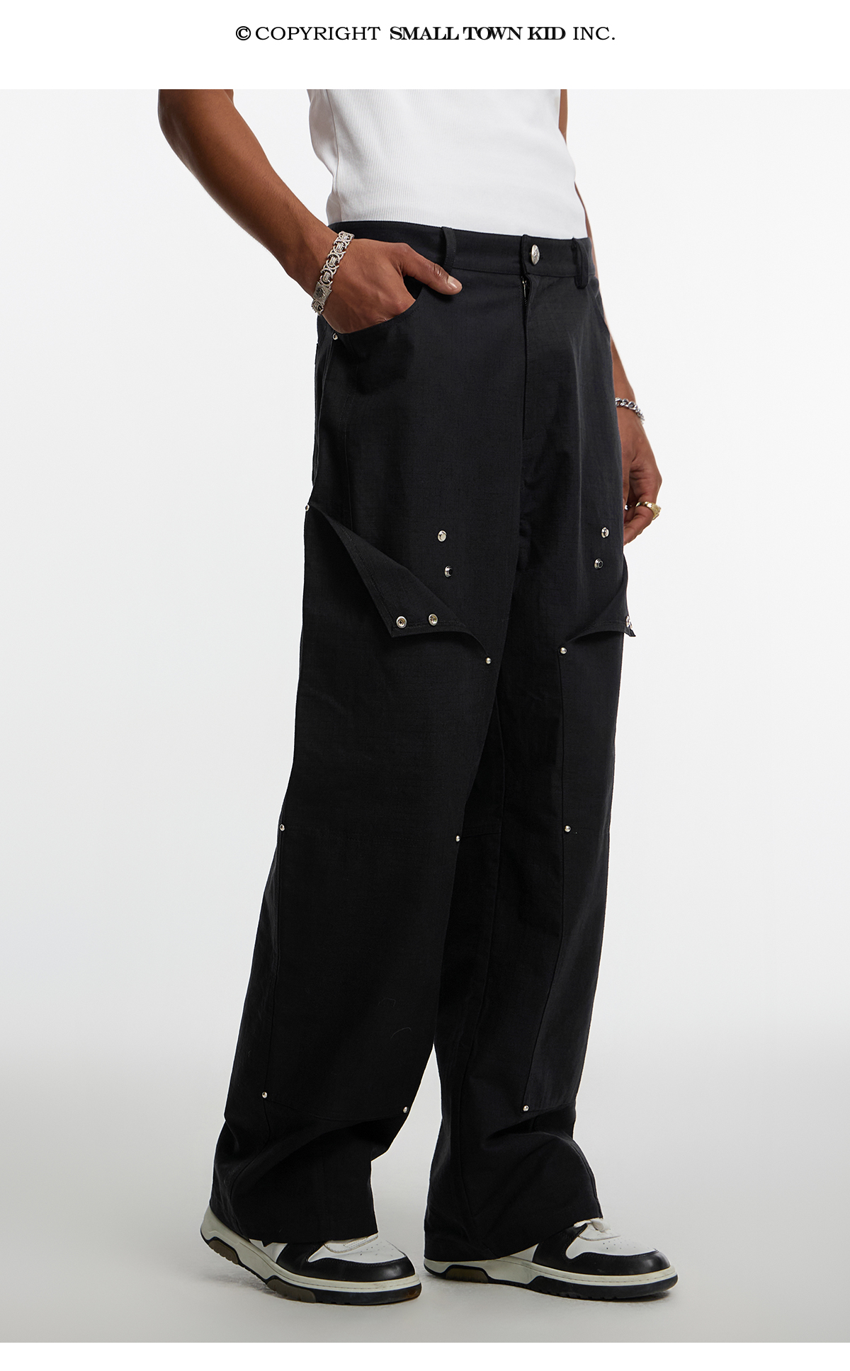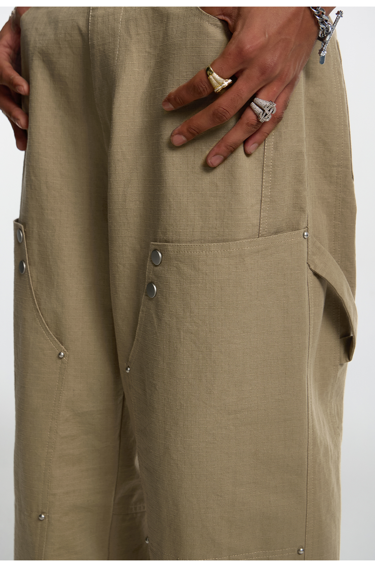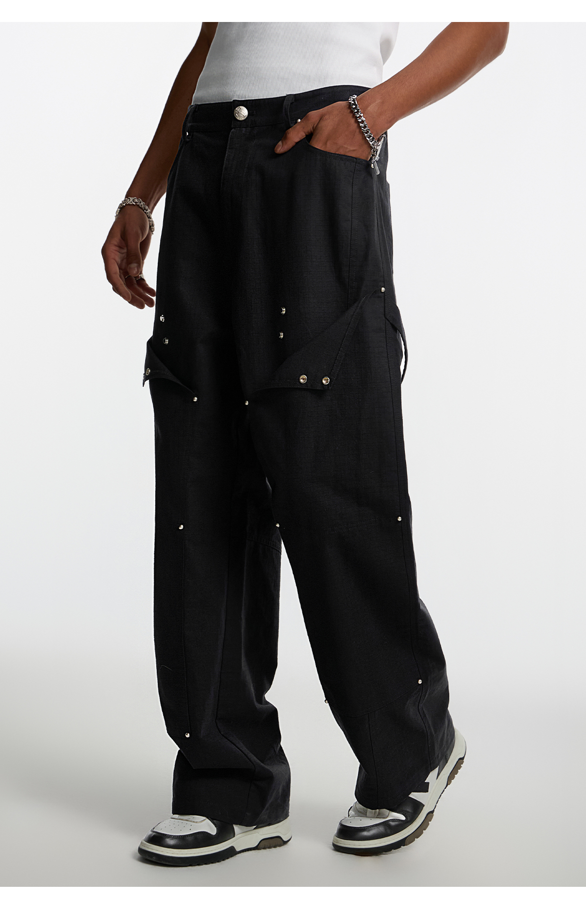 Studded Patchwork Textured Lumber Pants WN11966
