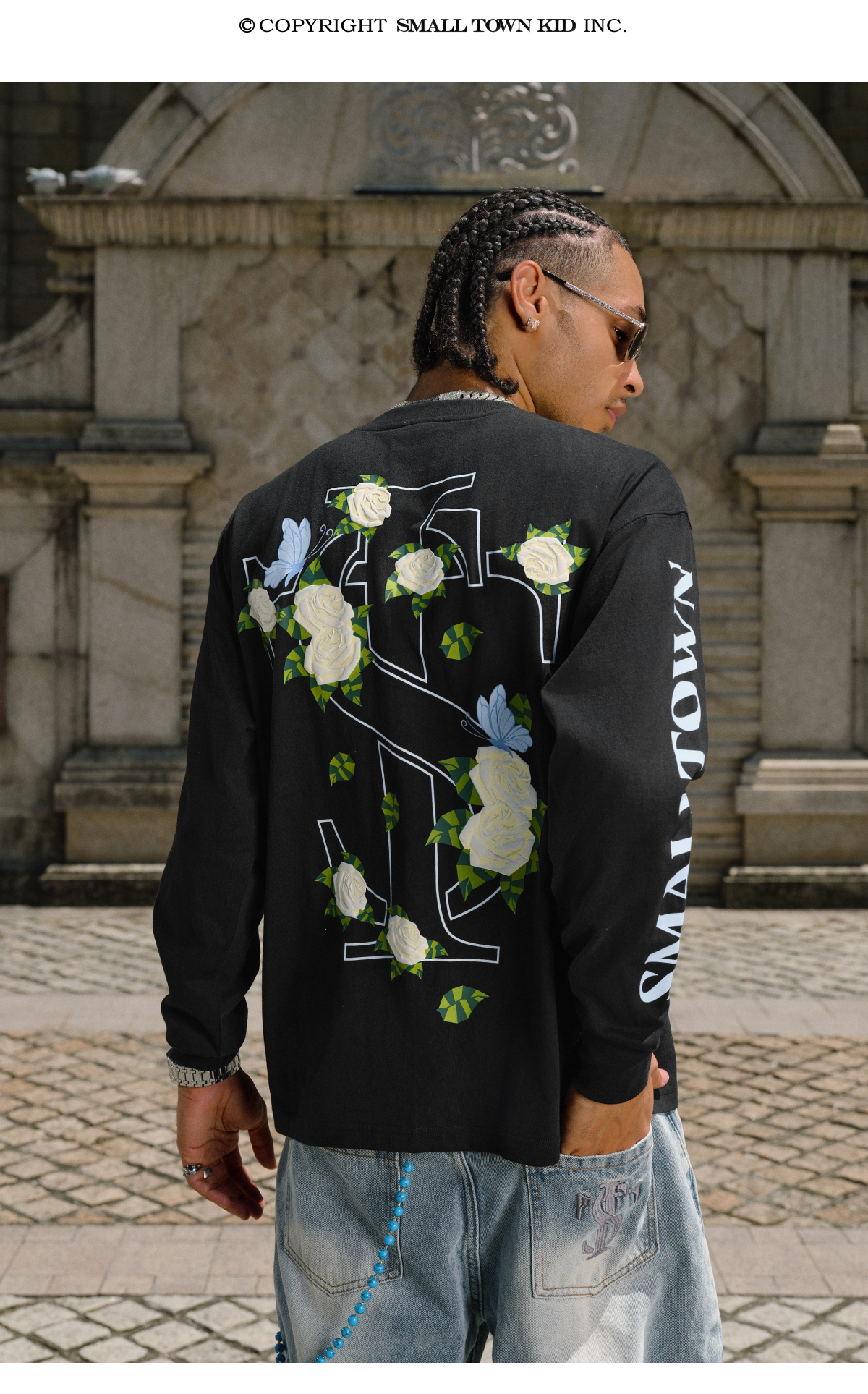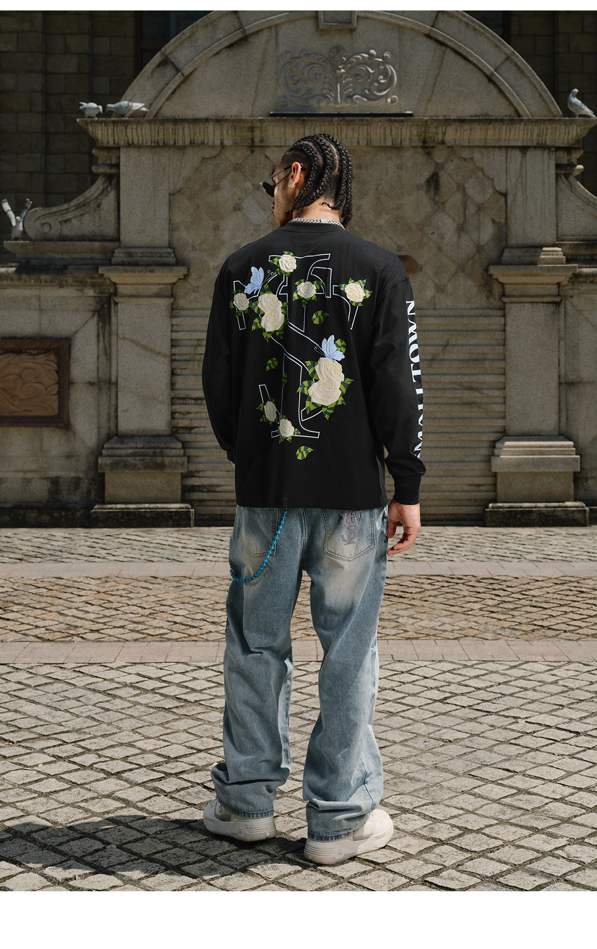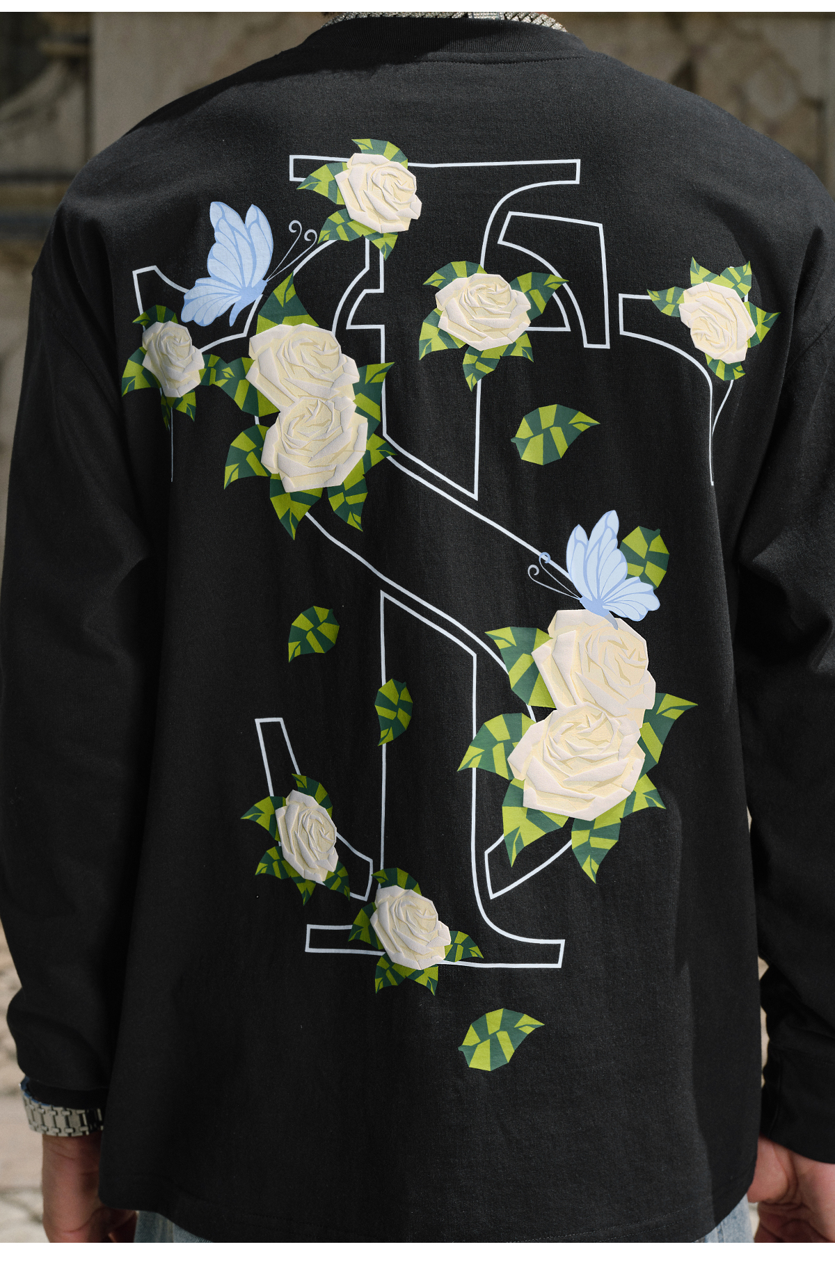 Rose Butterfly Graphic Long Sleeve T-Shirt WN11980