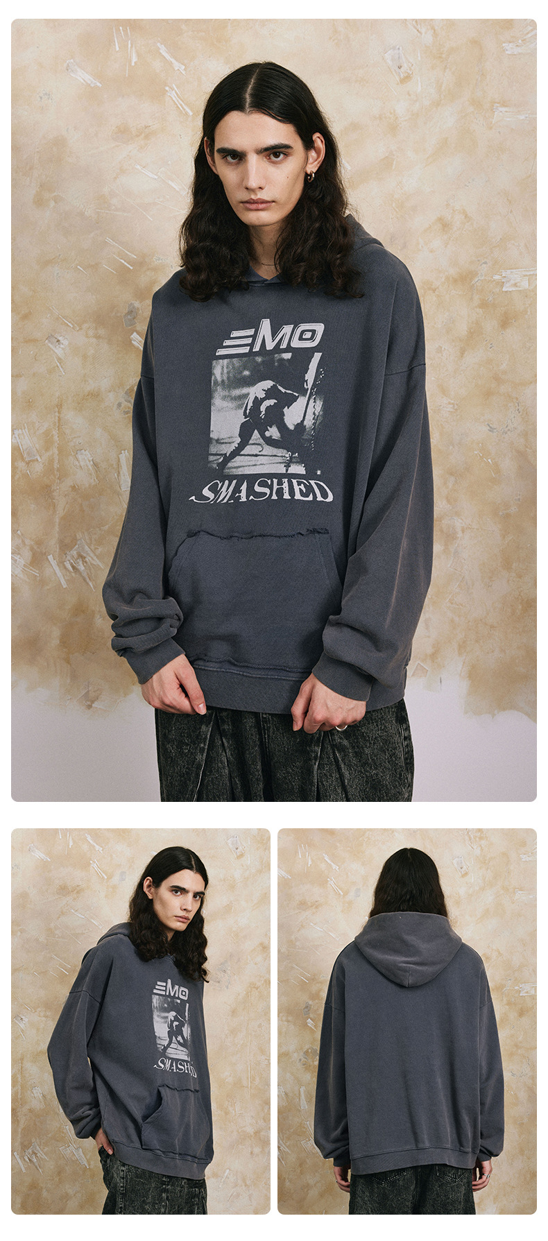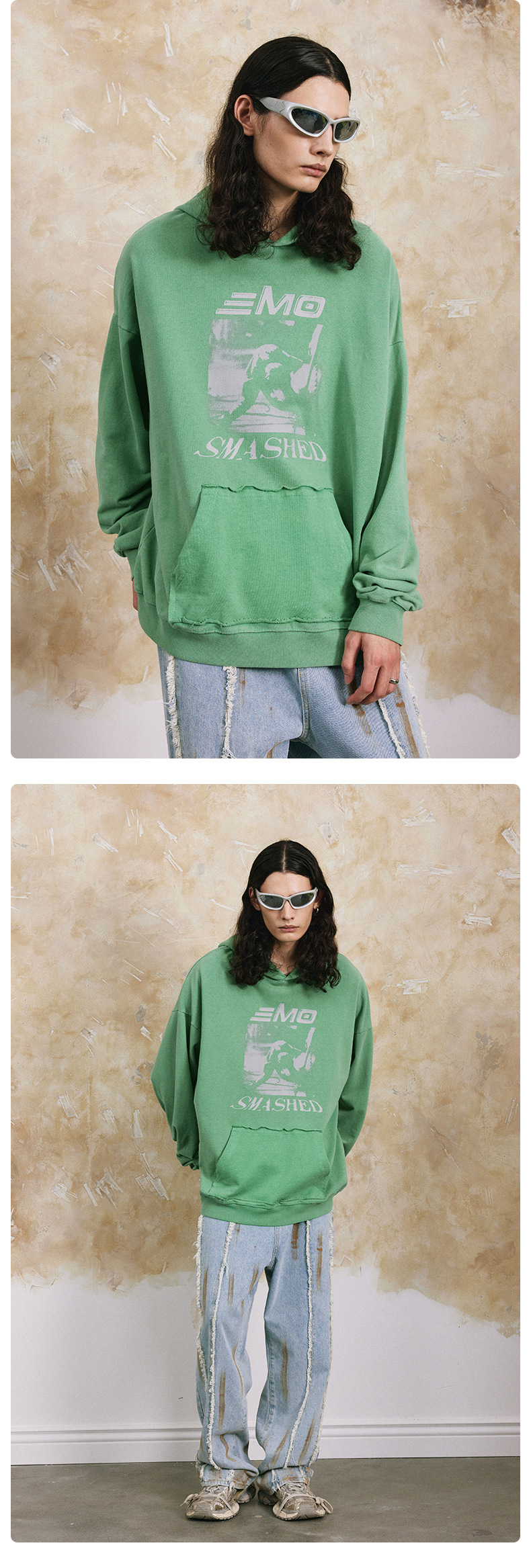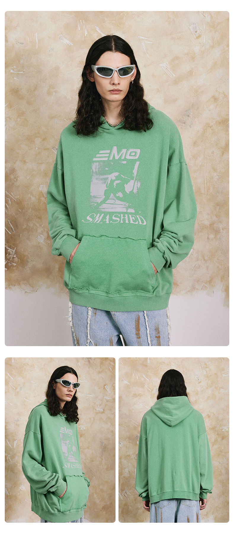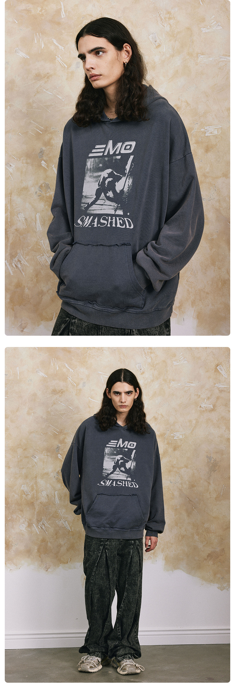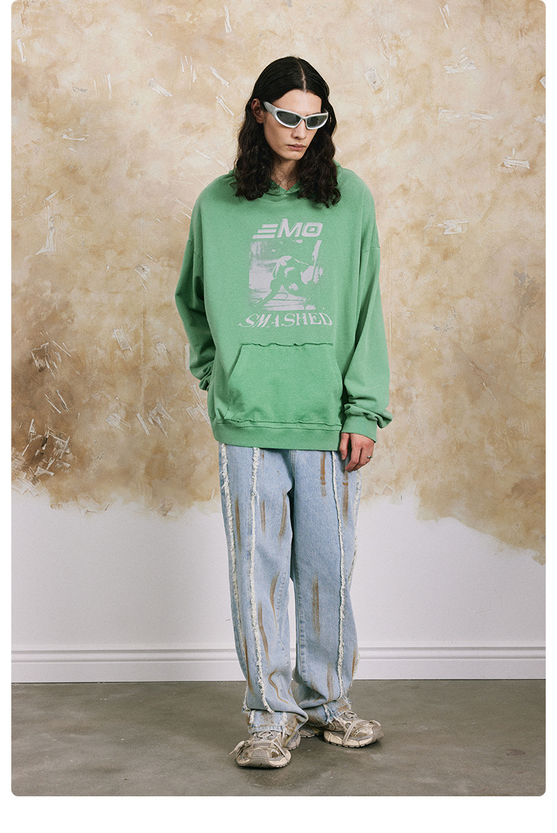Washed Graphic Oversize Pullover Hoodie WN12484