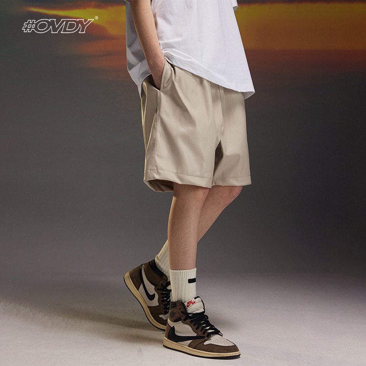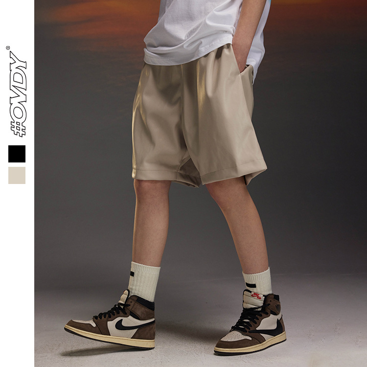 Split-Hem PU Leather Wide-Leg Short Pants WN12495