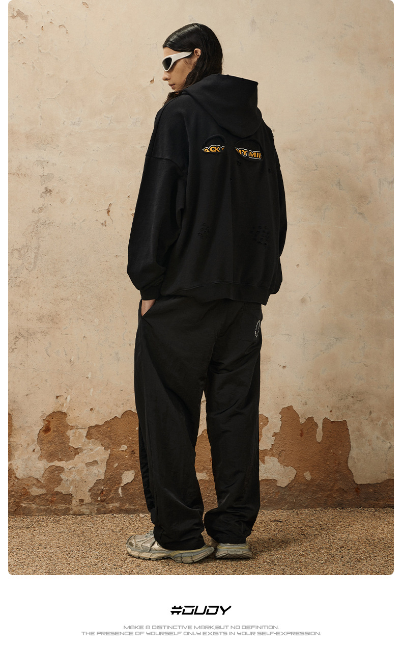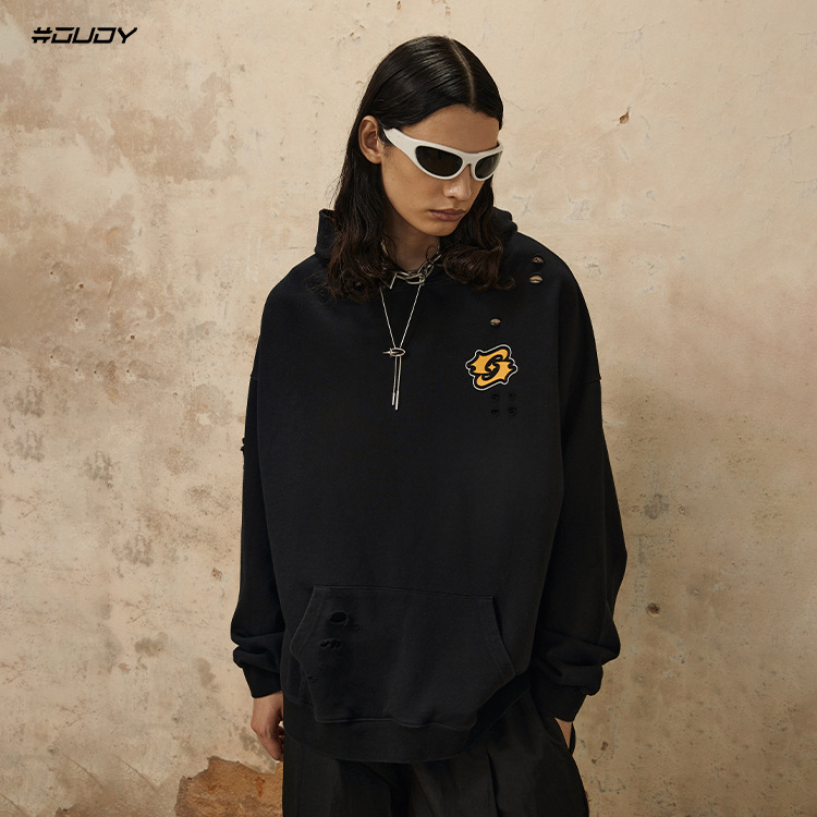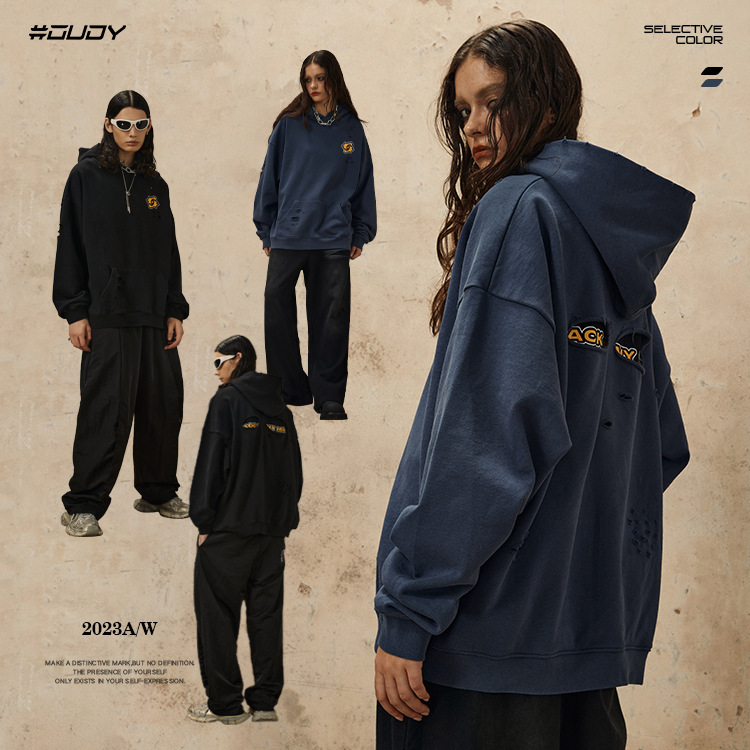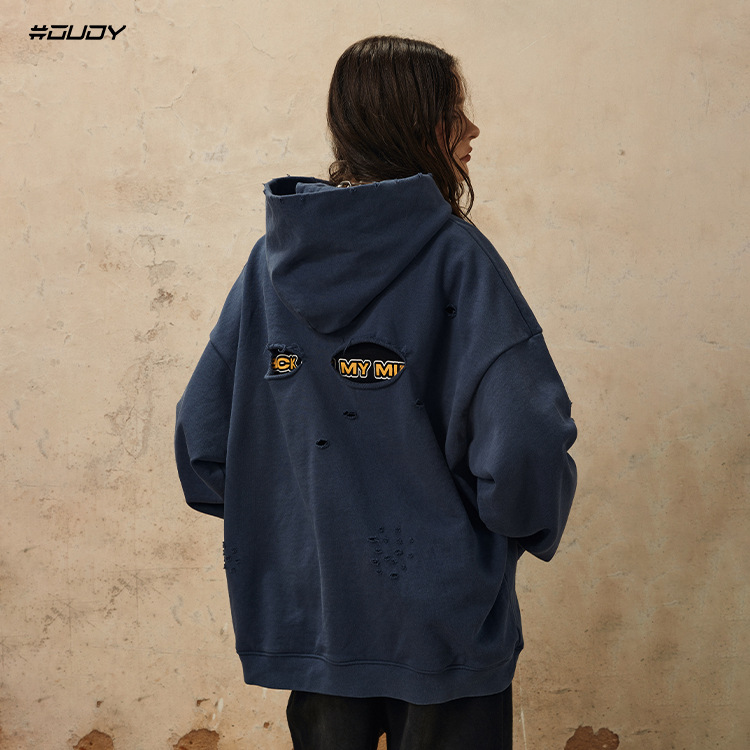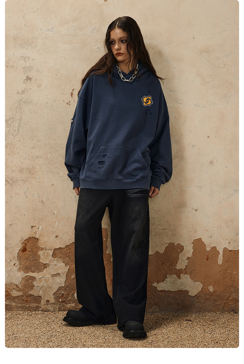 Washed Damage Oversize Pullover Hoodie WN12538