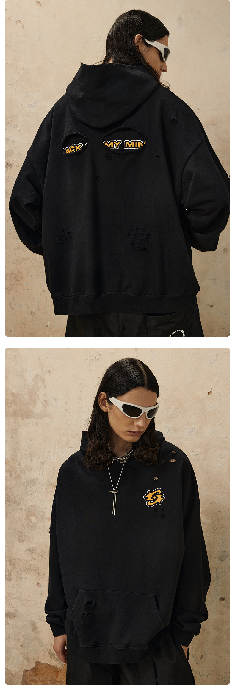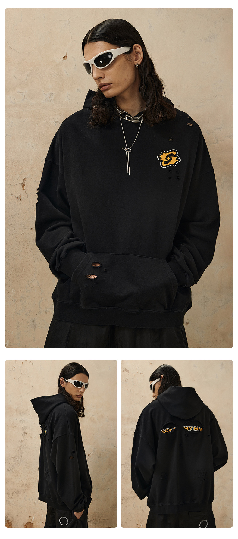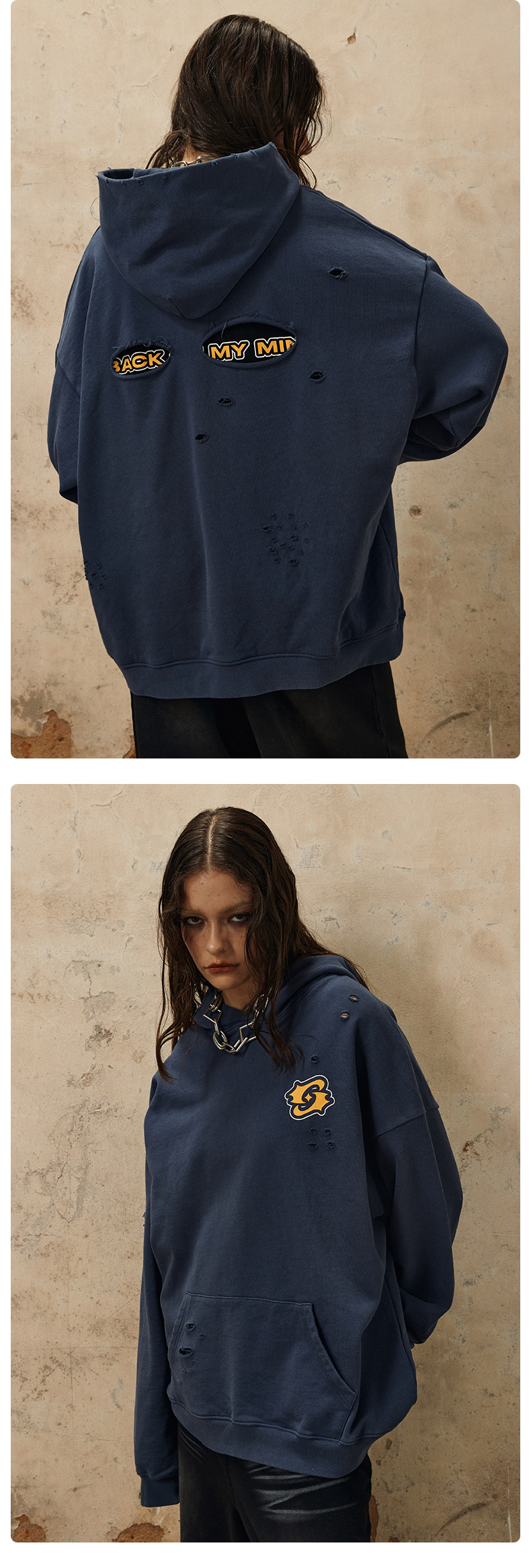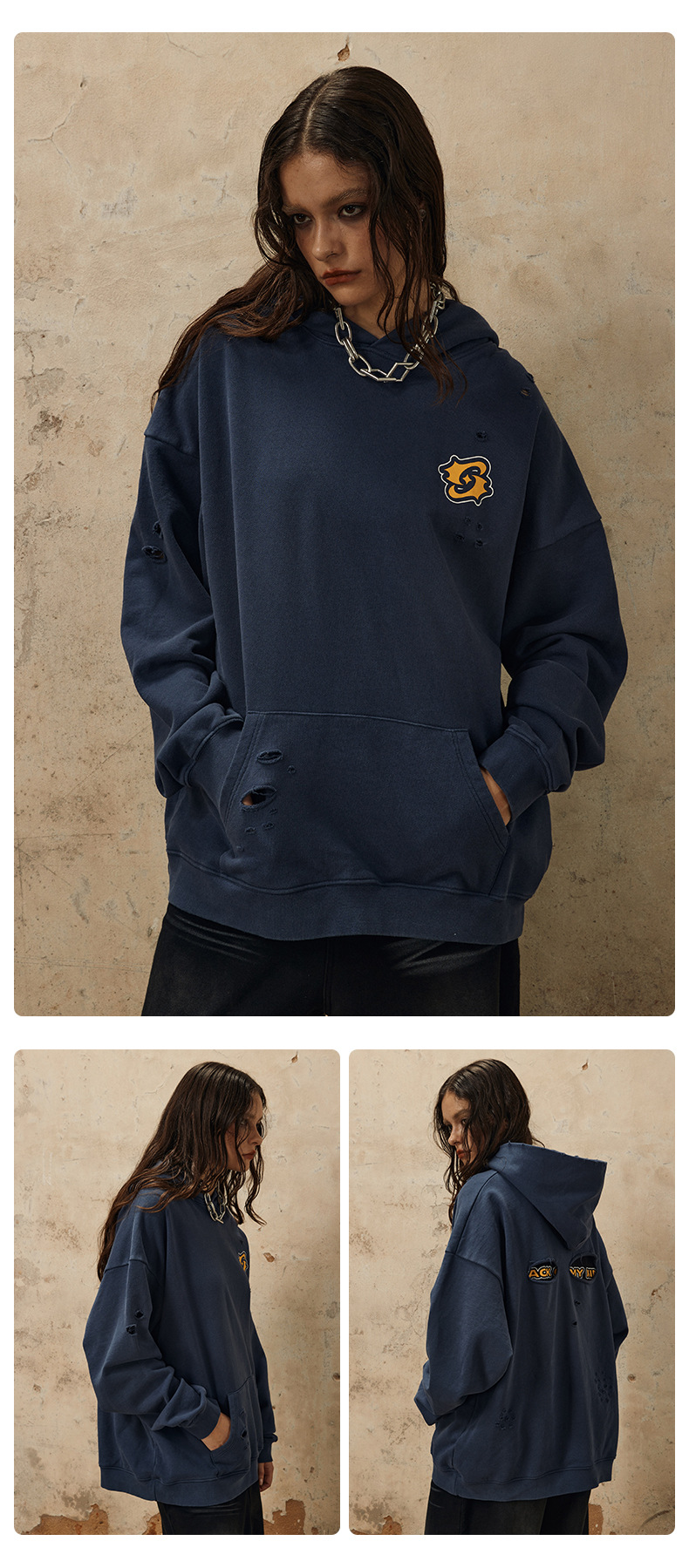 Washed Damage Oversize Pullover Hoodie WN12538