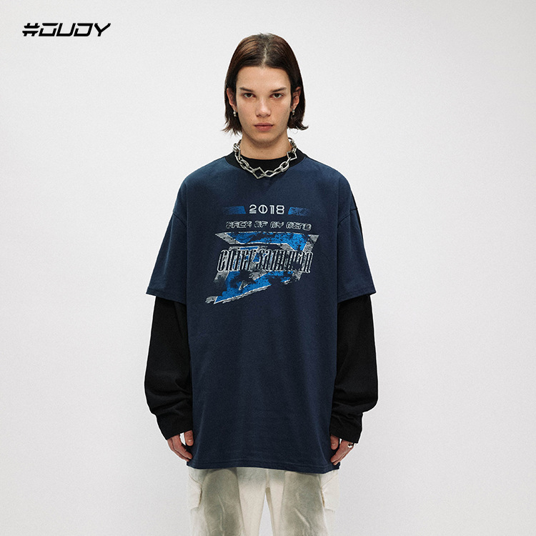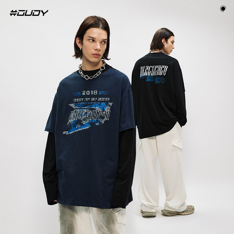 Fake Layered Oversize Cotton Long Sleeve T-Shirt WN12579