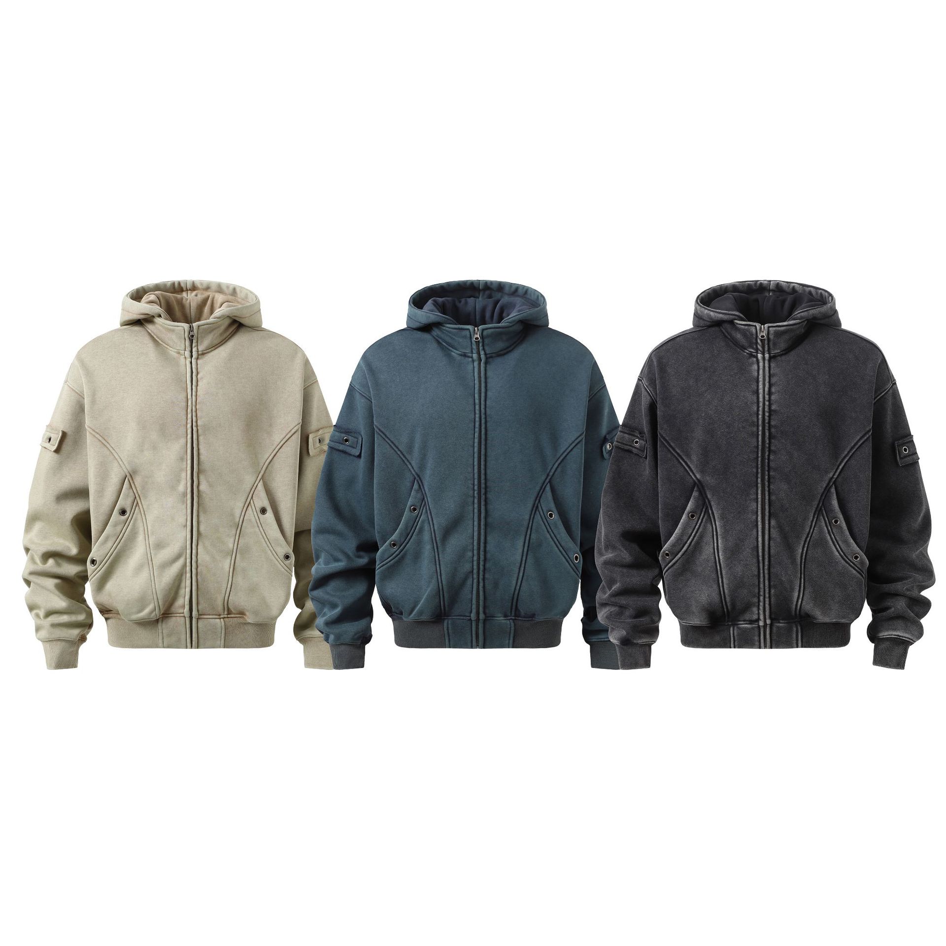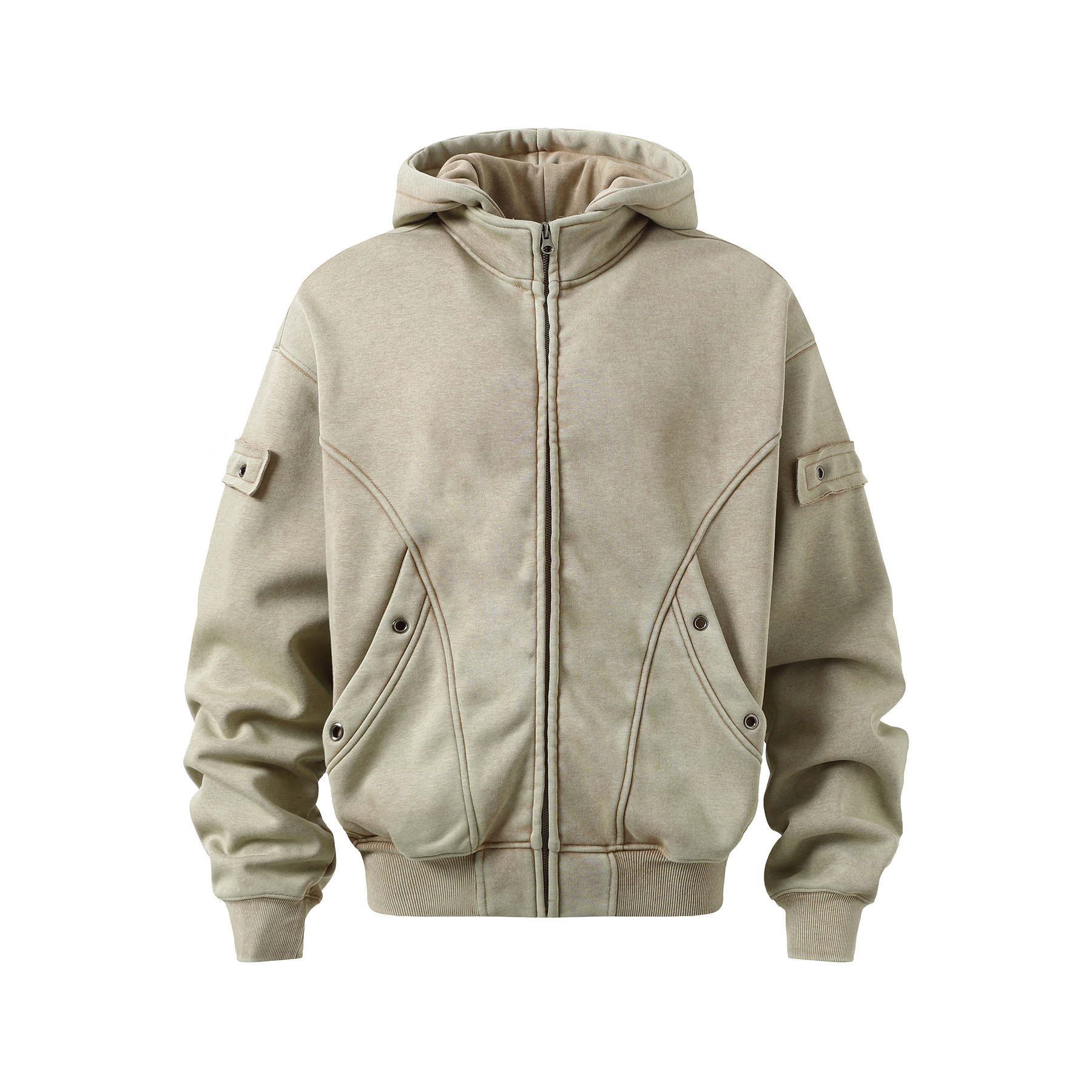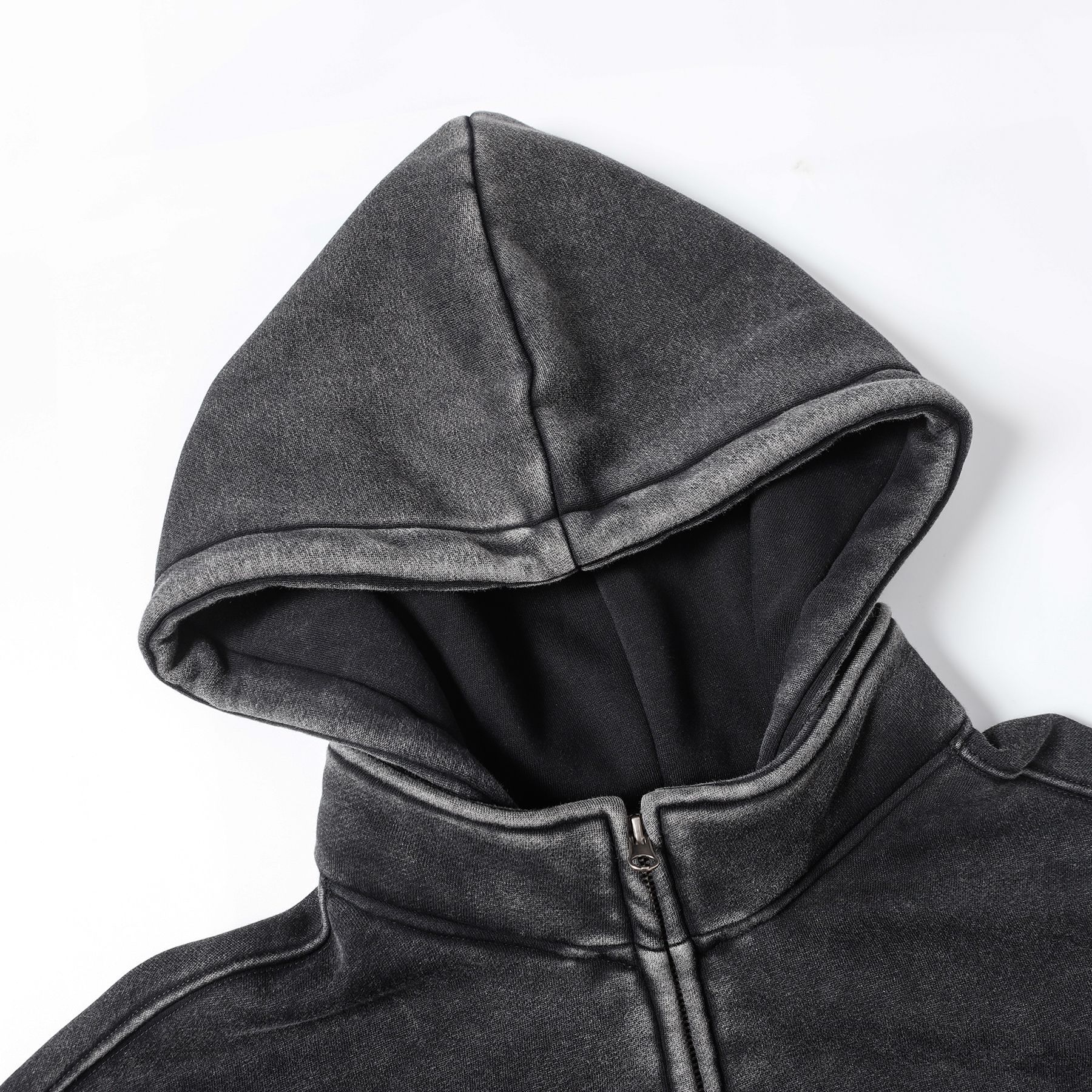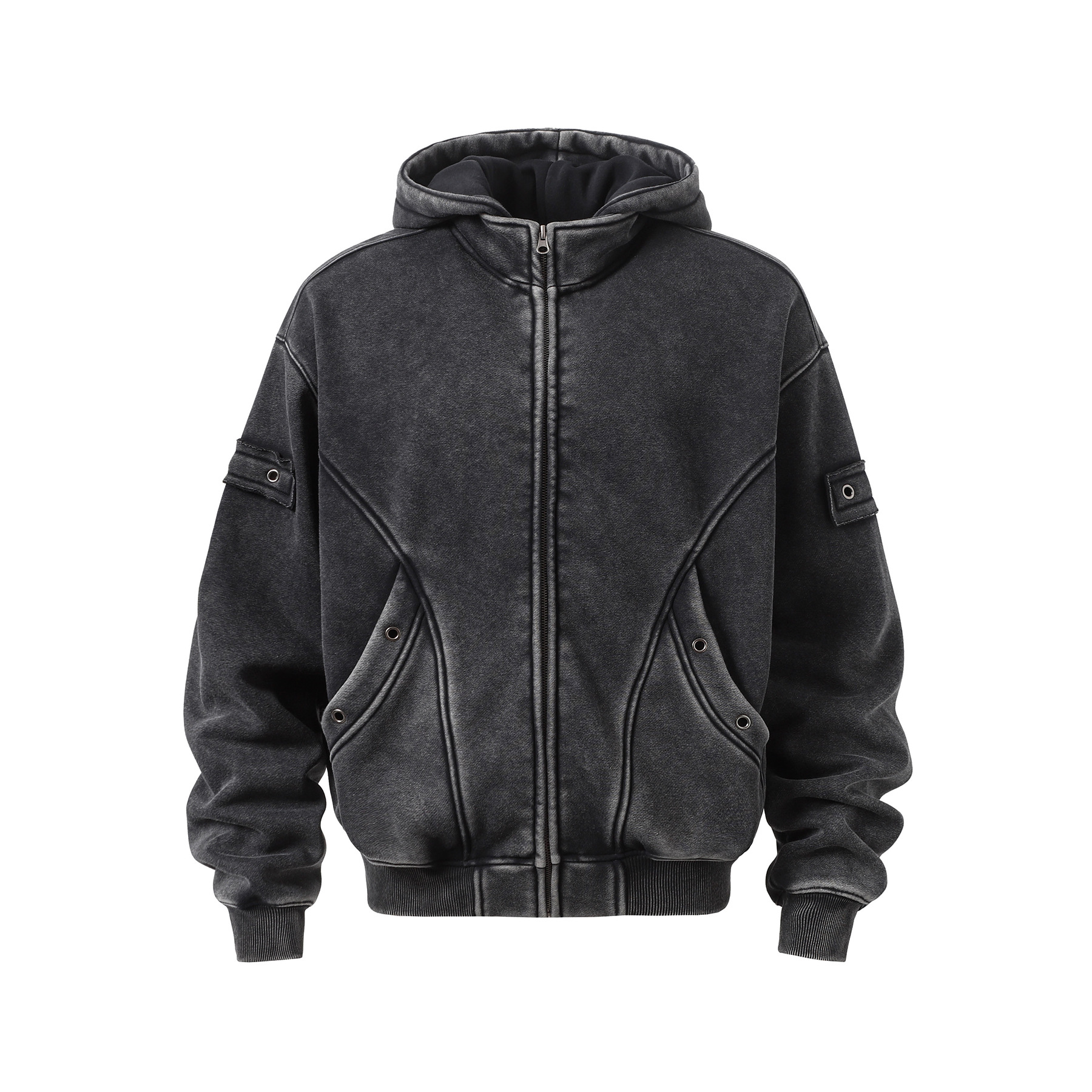 Washed Fleece-Lined Zipper Hoodie WN12652