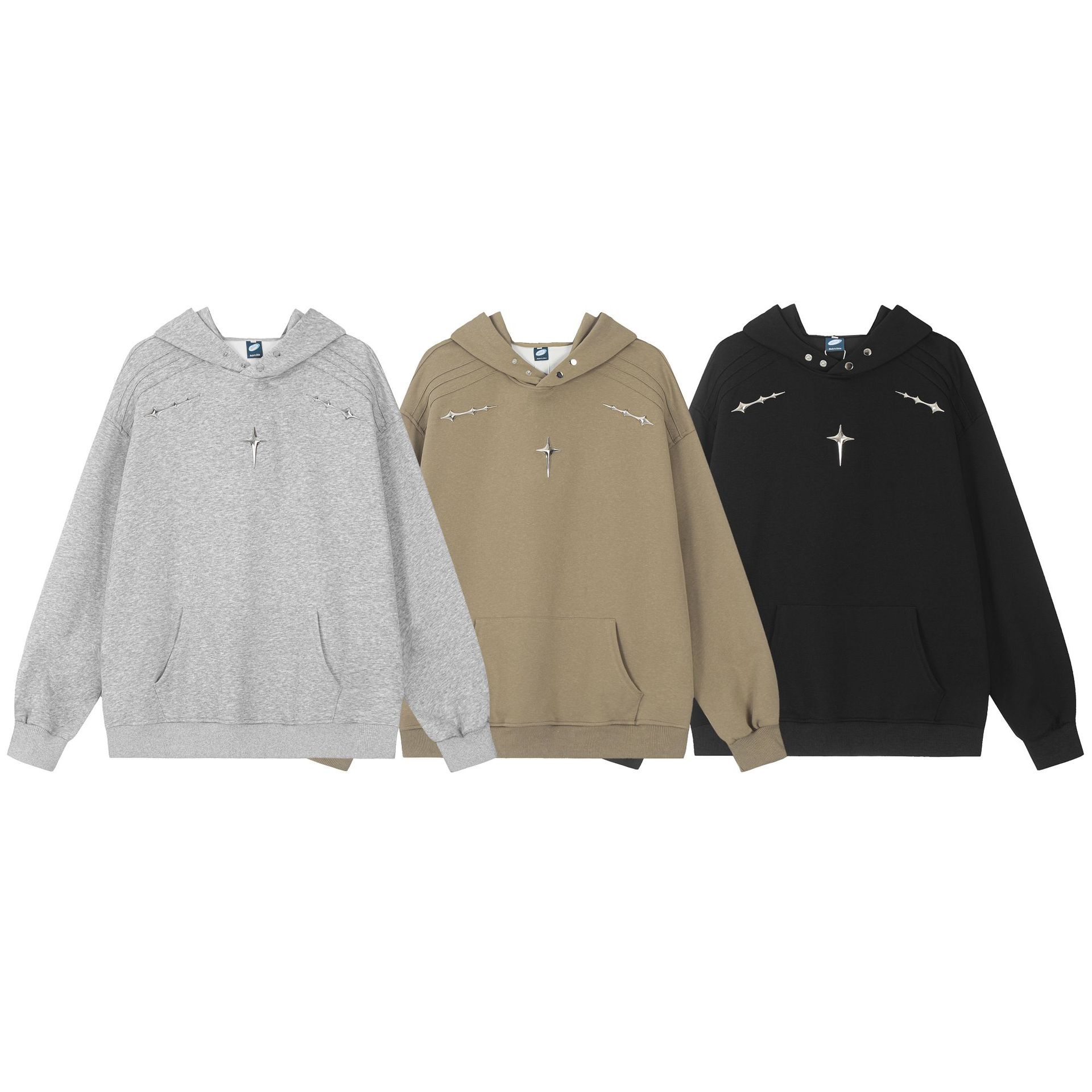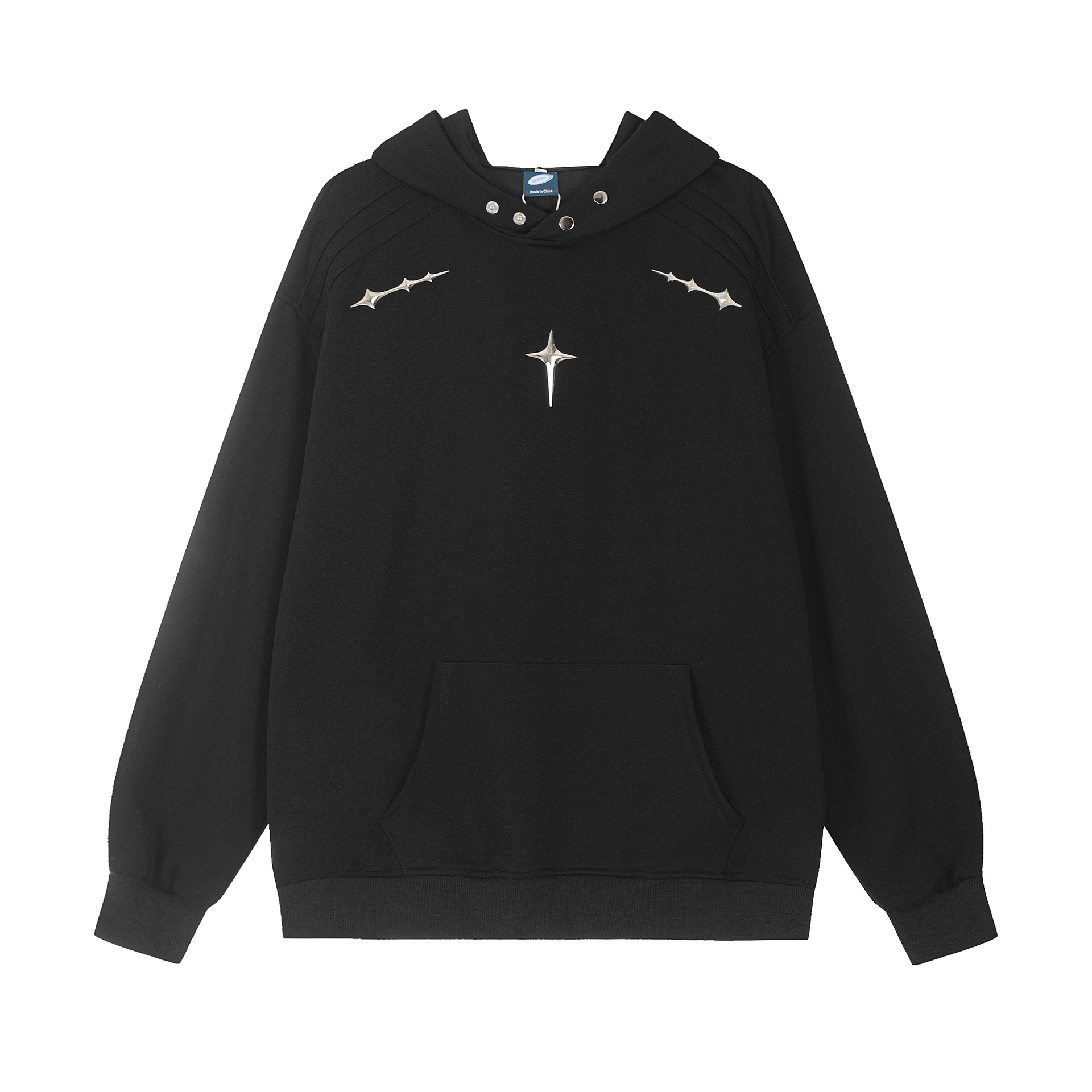 Metallic Cross-Star Pleated Oversize Pullover Hoodie WN12667