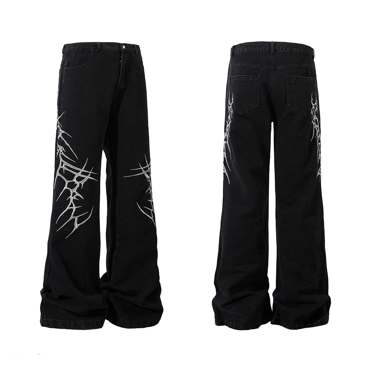 Thorn Embroidery Straight Denim Jeans WN12687