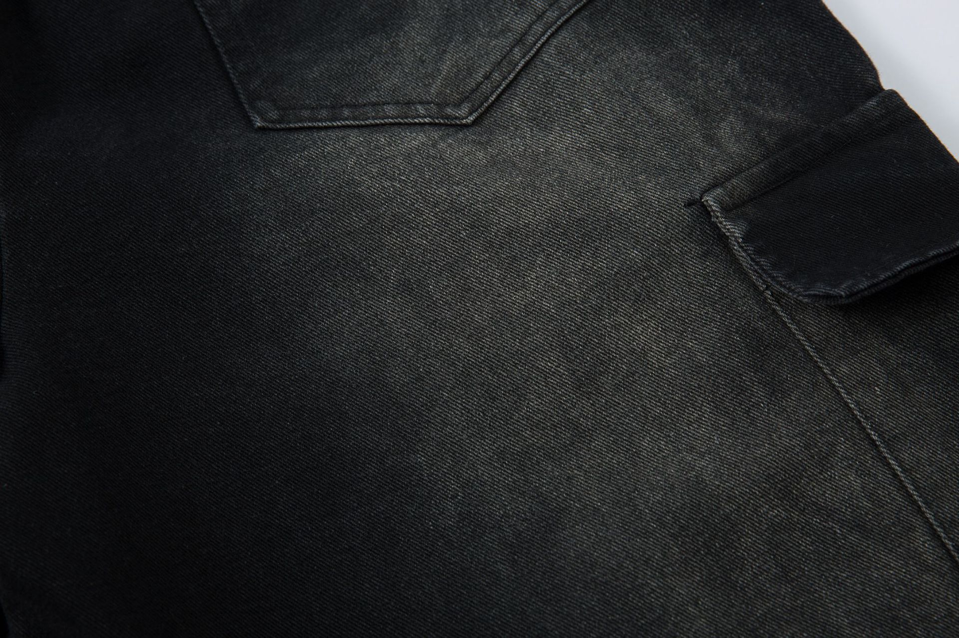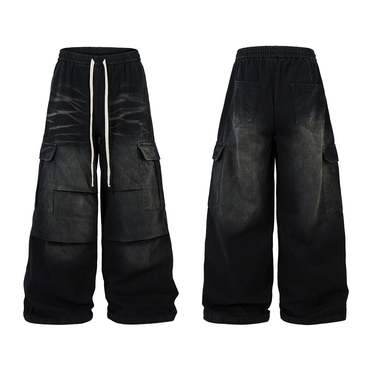 Washed Wide-Leg Cargo Denim Jeans WN12729