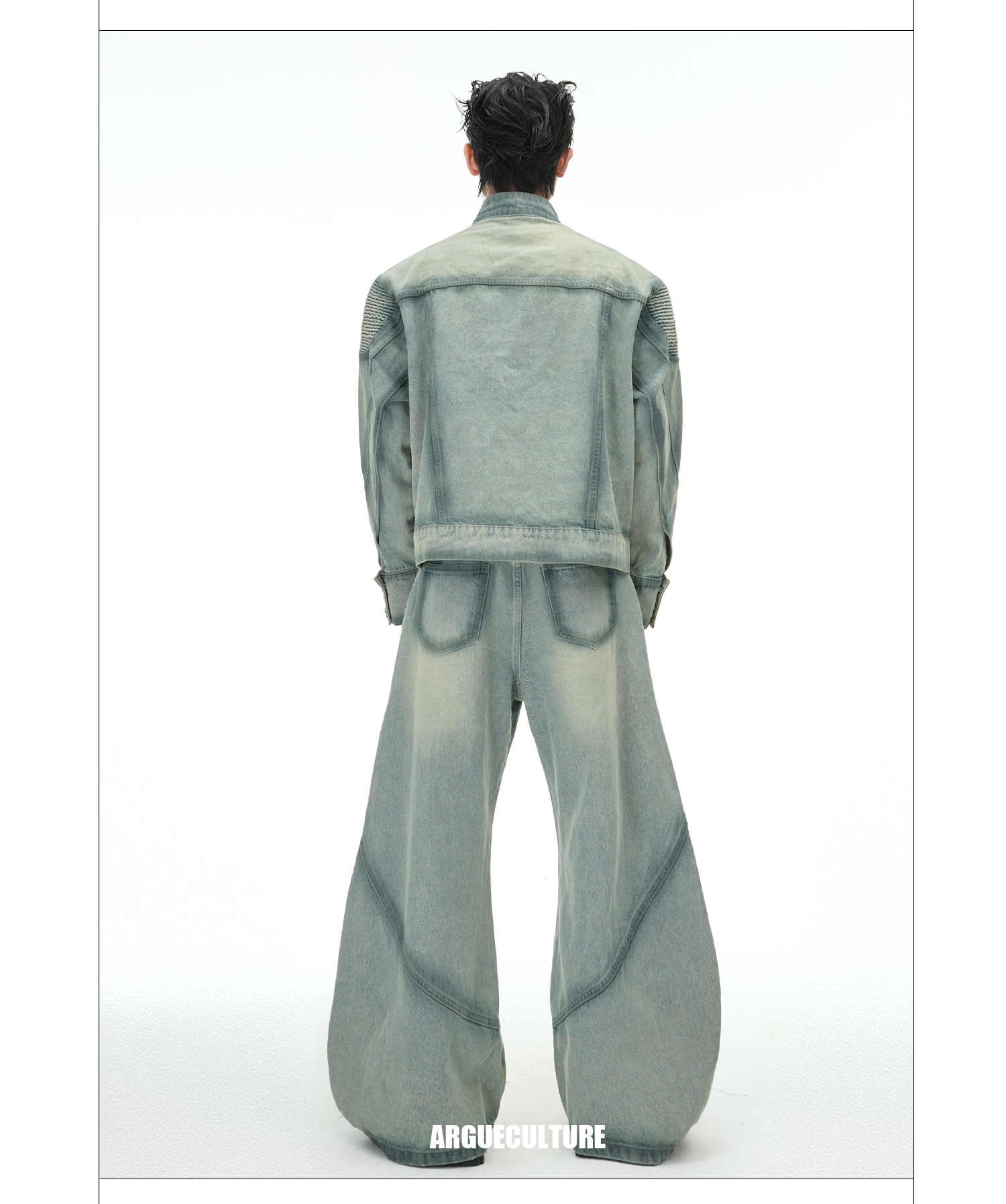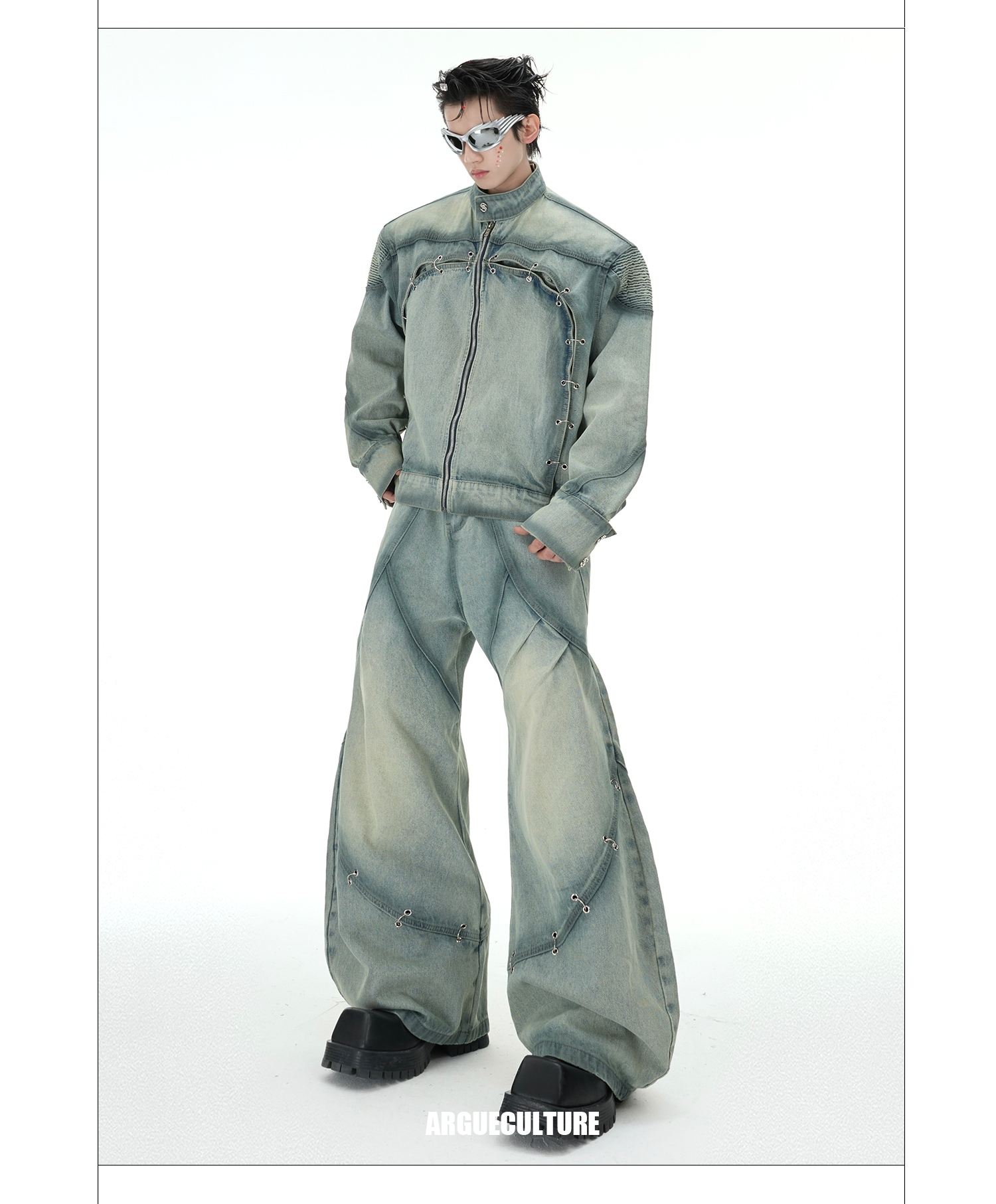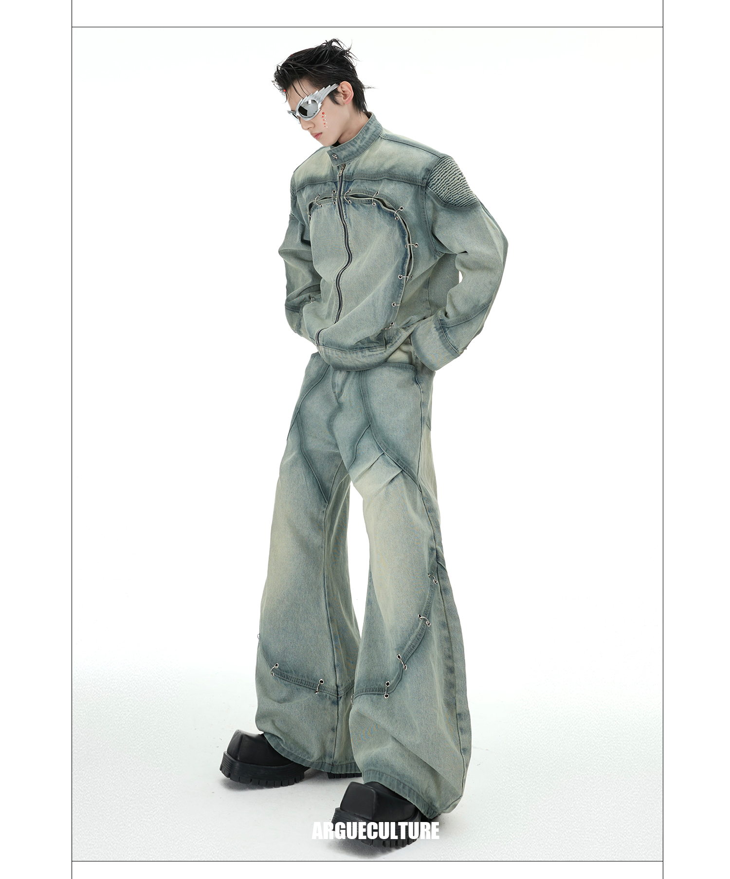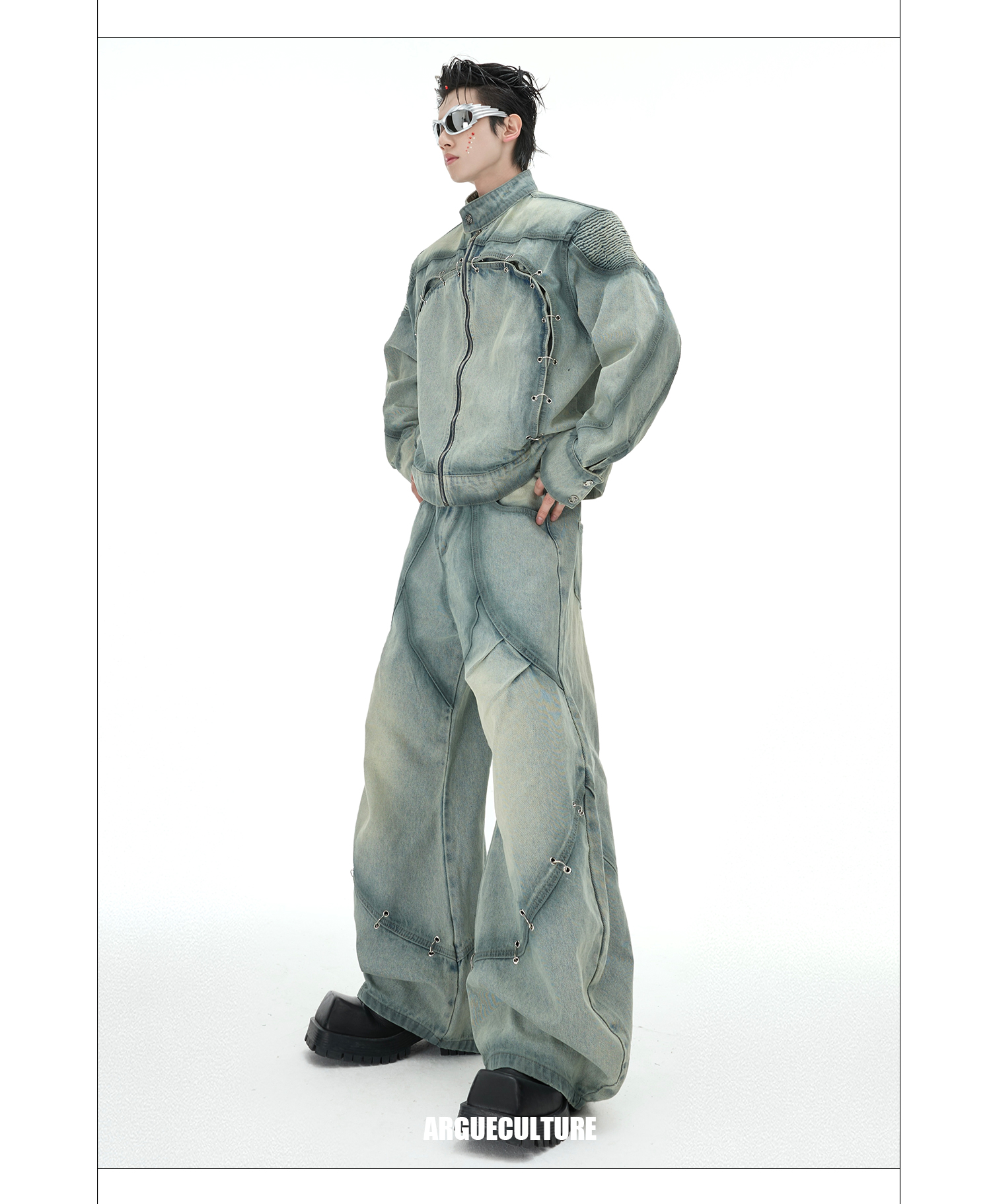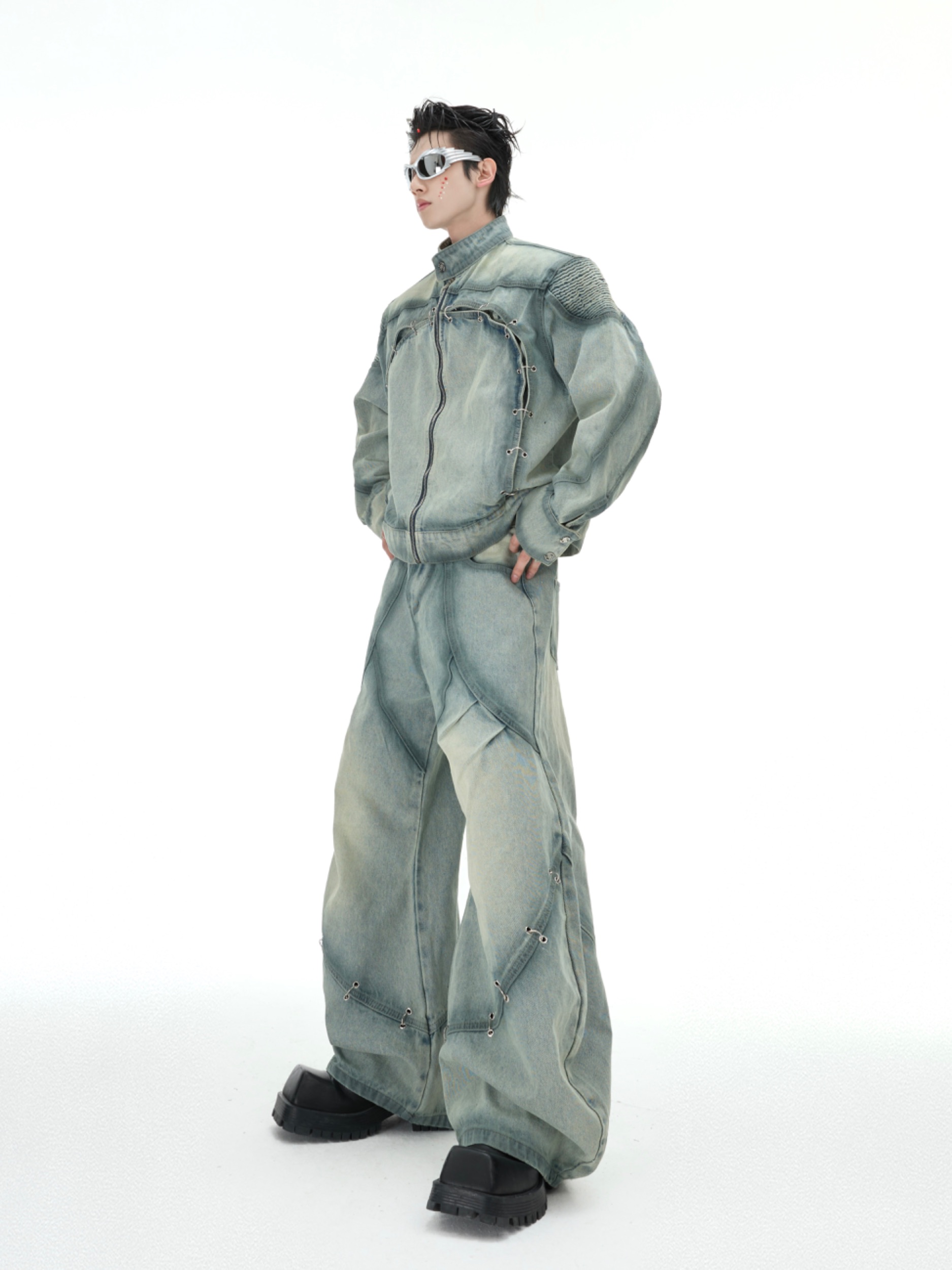 Washed Ring-Buckle Denim Jacket & Denim Jeans Setup WN12904