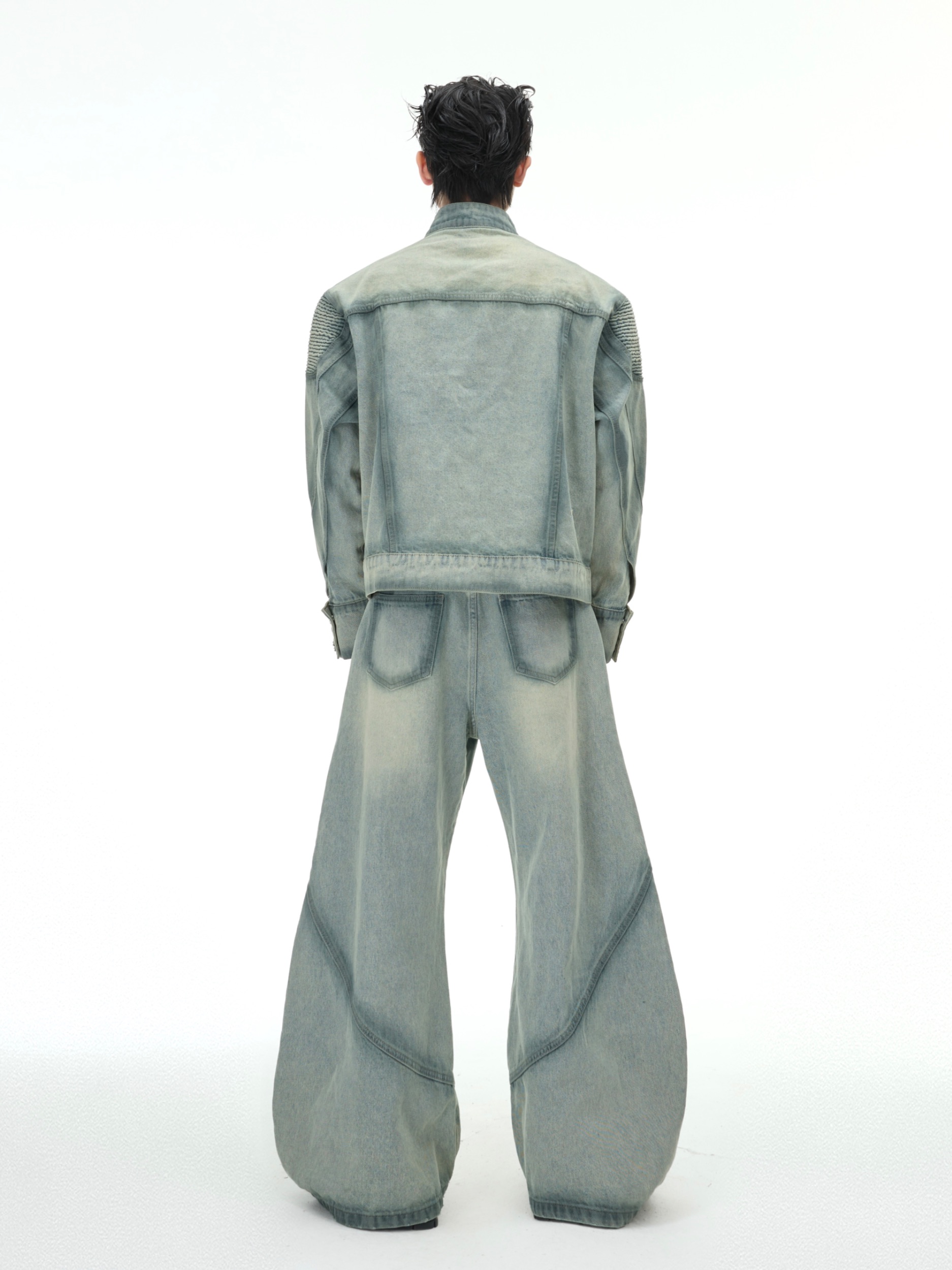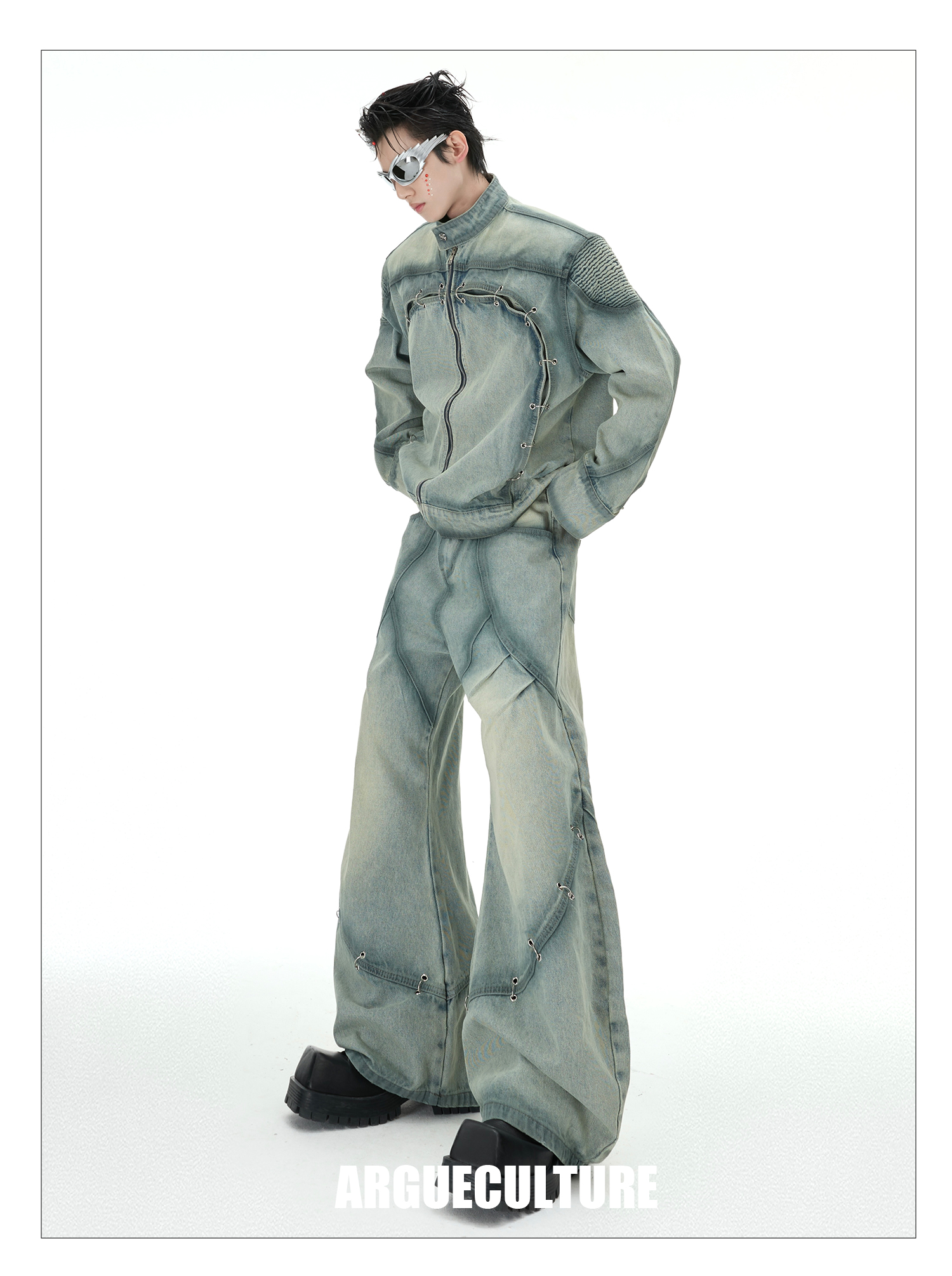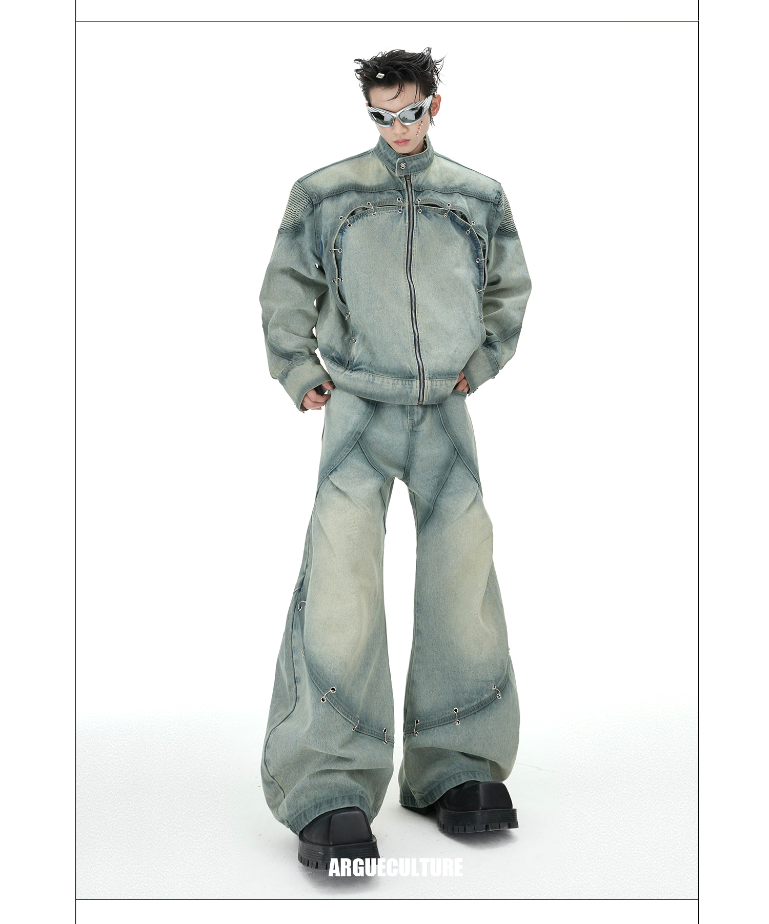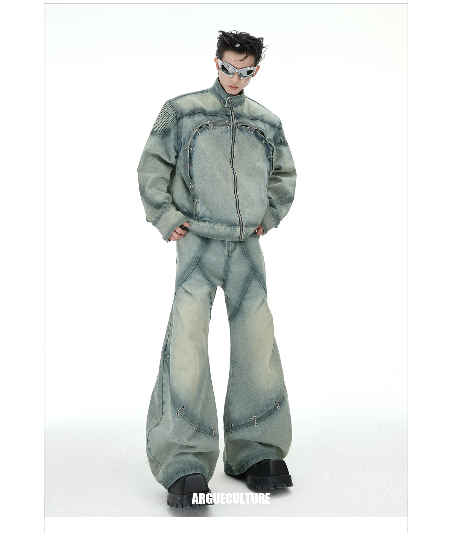 Washed Ring-Buckle Denim Jacket & Denim Jeans Setup WN12904