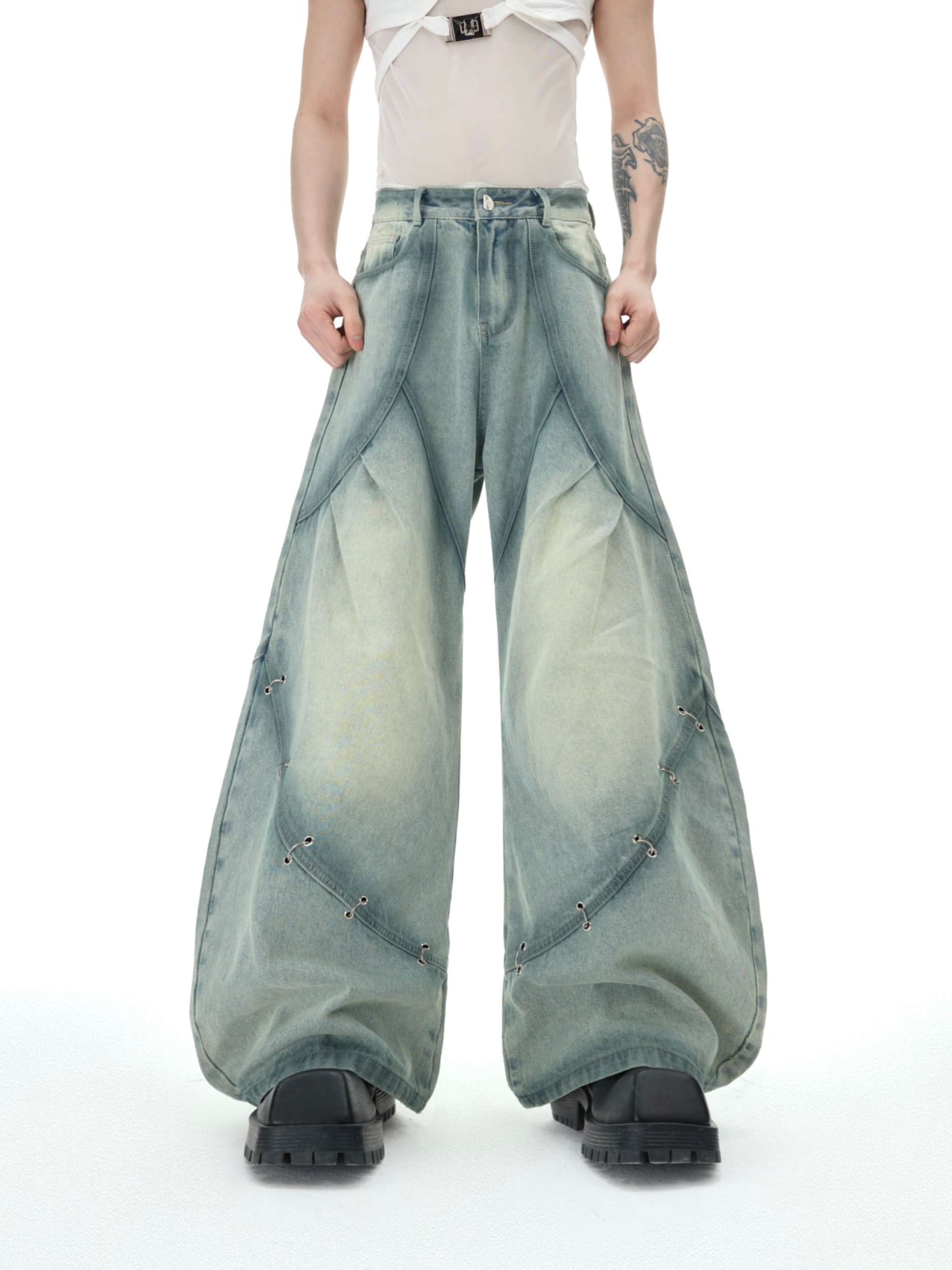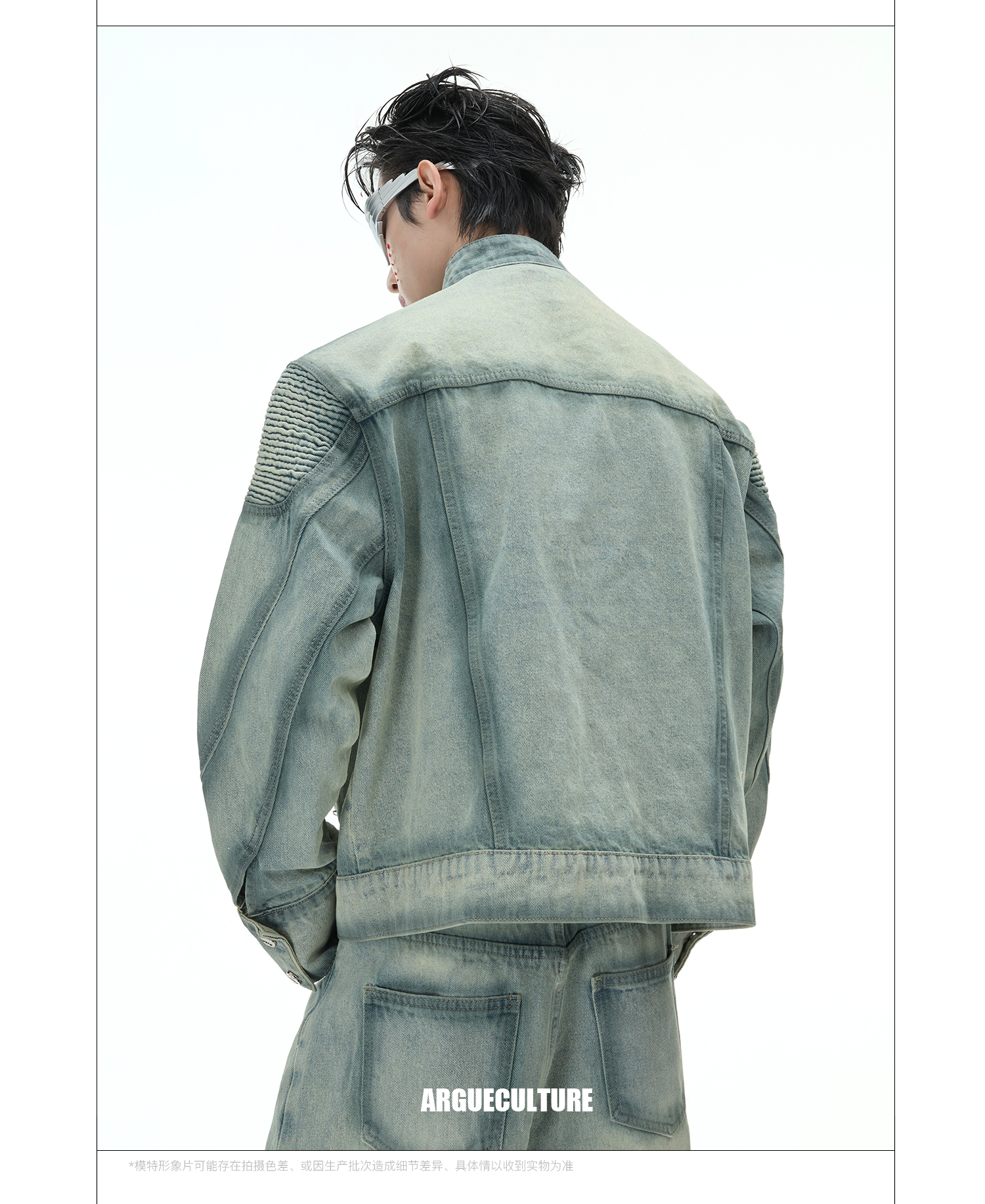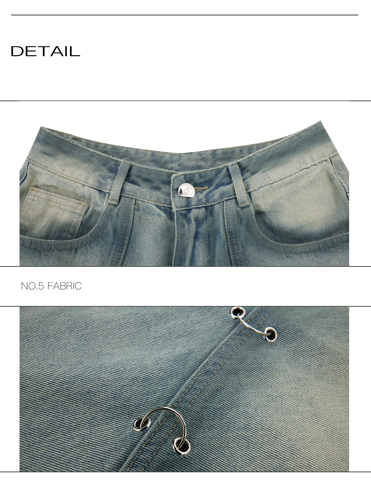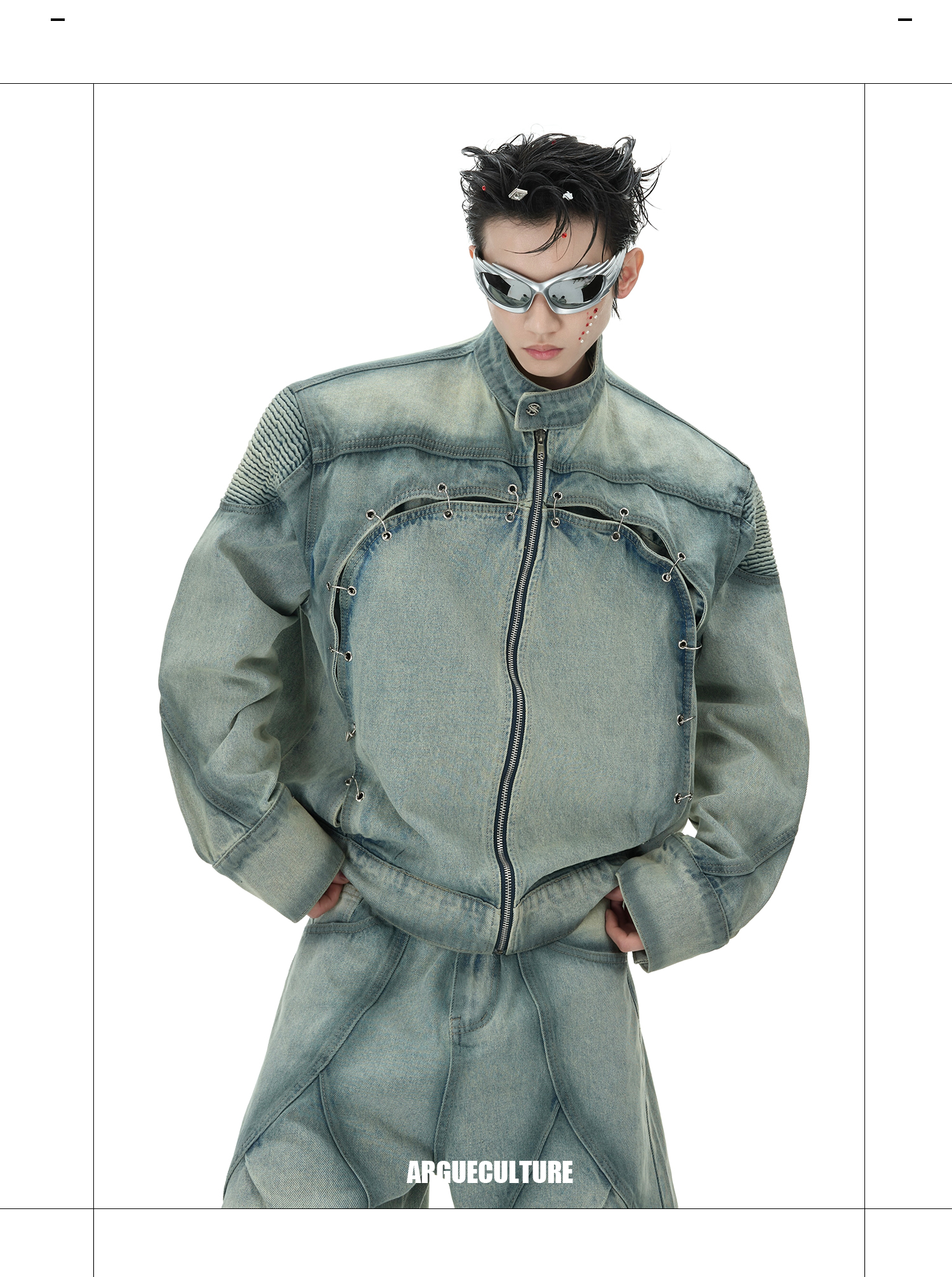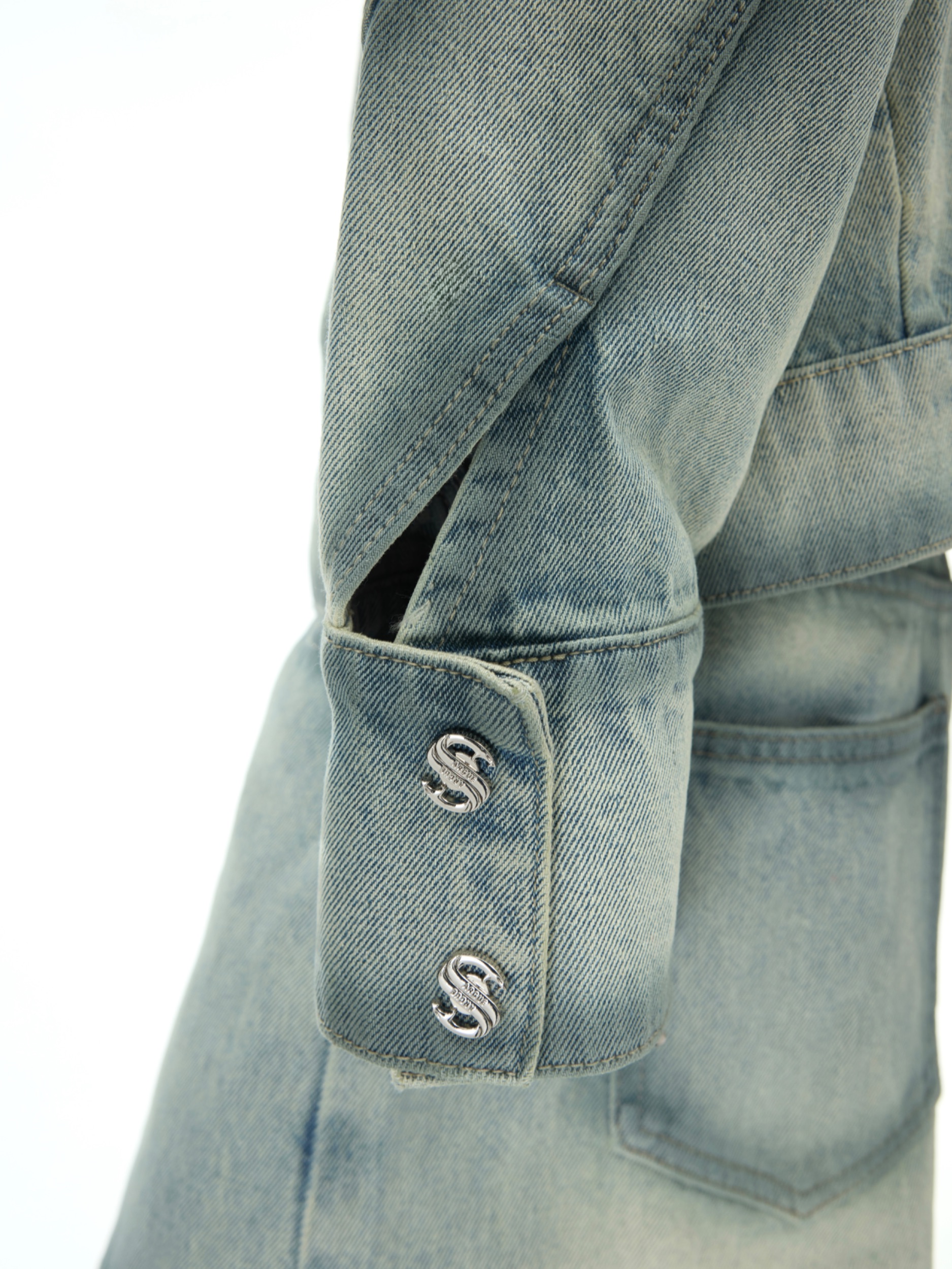 Washed Ring-Buckle Denim Jacket & Denim Jeans Setup WN12904