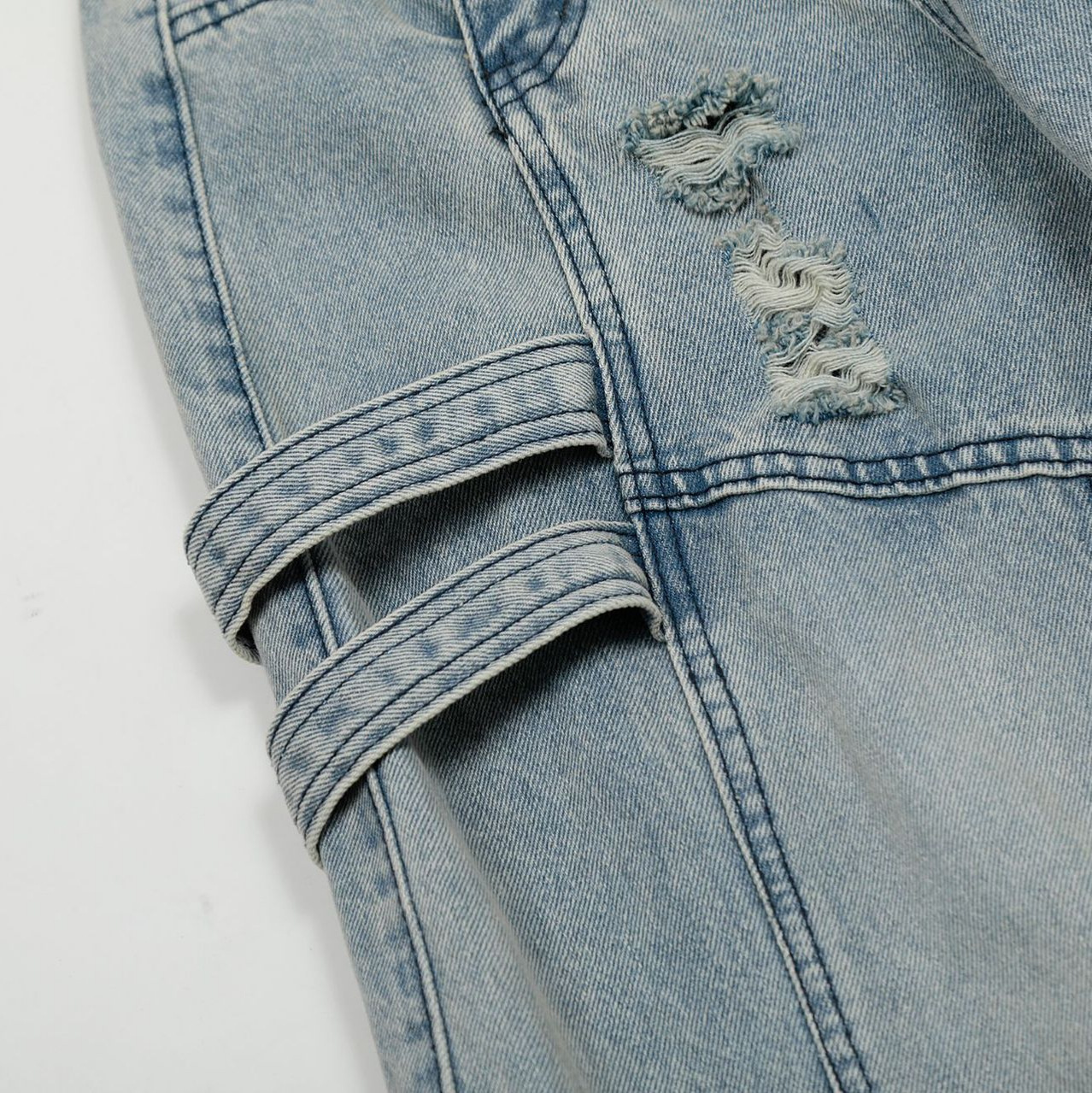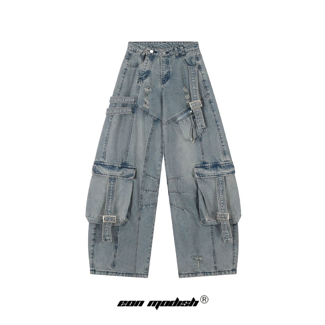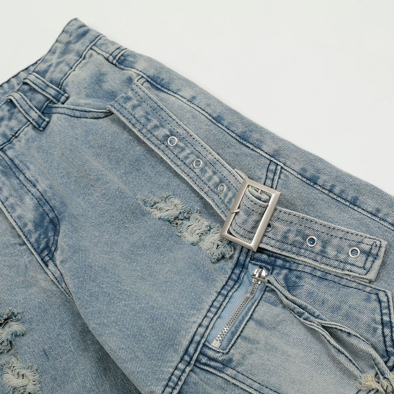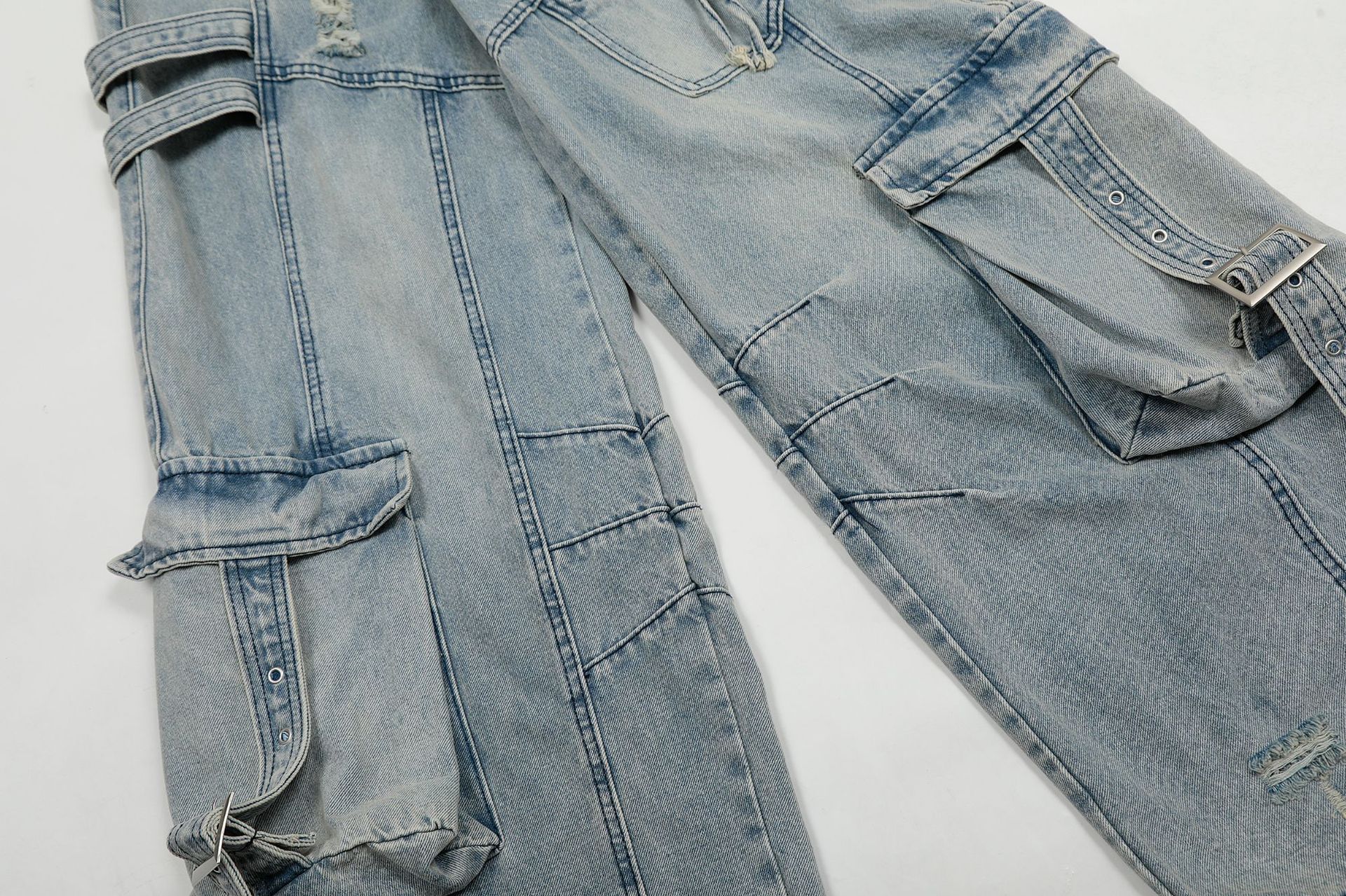 Heavy Wash Damage Pocket Cargo Denim Jeans WN14167