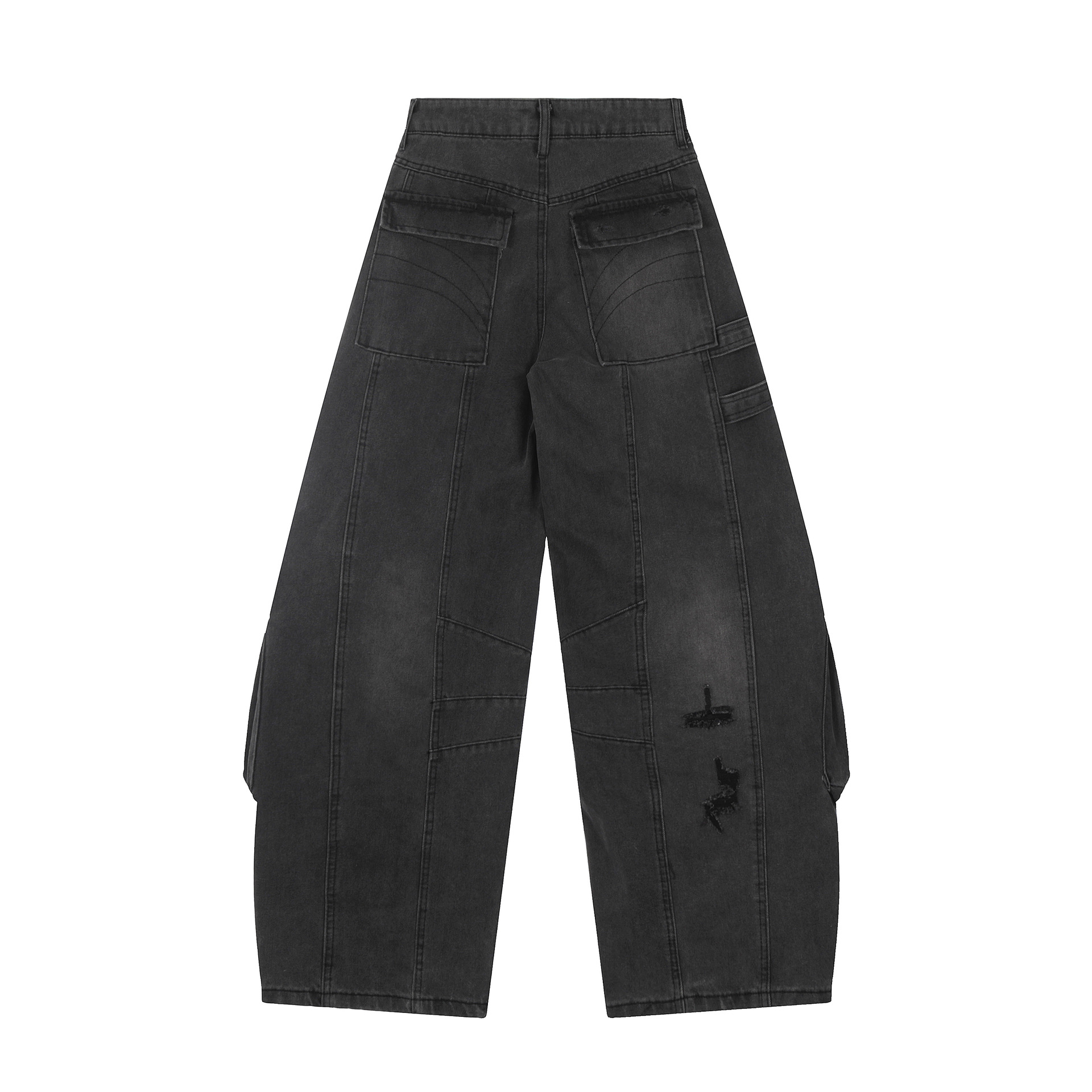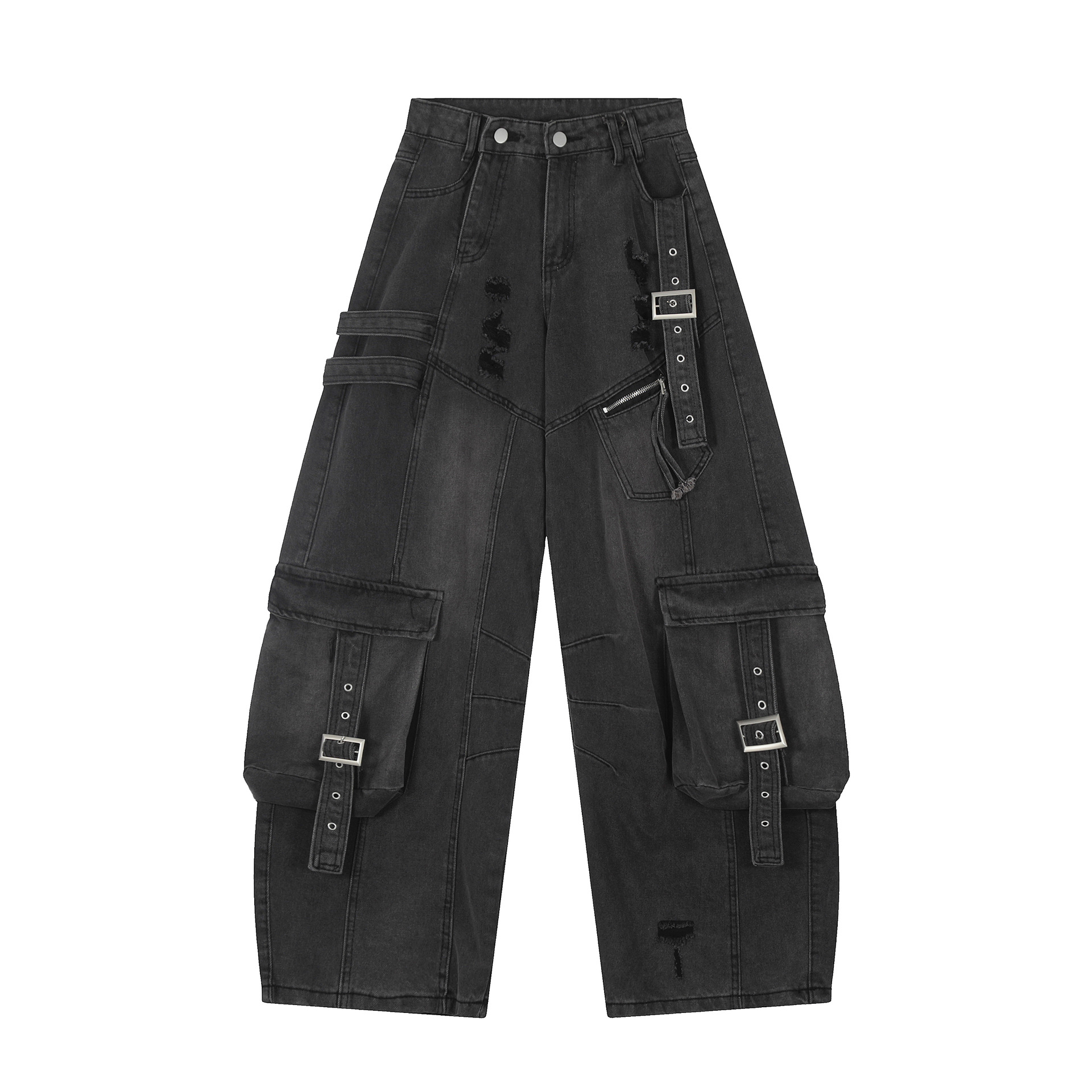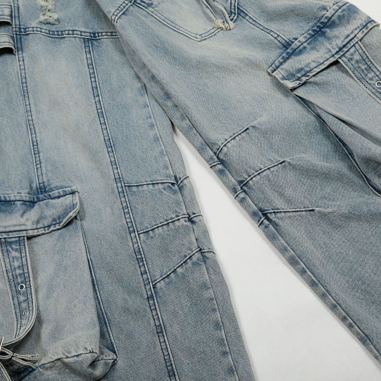 Heavy Wash Damage Pocket Cargo Denim Jeans WN14167